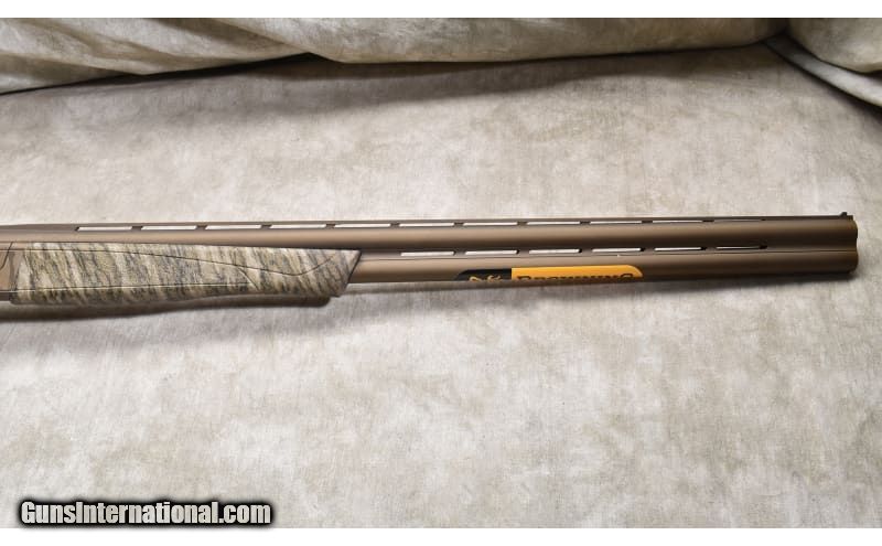 Description: This one is part of a Special Buy of Blems from Browning and shows a scratch on the barrel. All else is ANIB. It features a bronzecoat finish to all the metal, and a complimentary camo pattern on the stock. The chokes provided are Mod and IC. 12 Gauge SOLD Chambers: "2 rounds, 12 gauge, up to 3-1/2 inch. Metal Condition: As new in the box. Wood Condition: As new in the box. Bore Condition: As new in the box. Barrels: 30 inch Triggers: "Factory single selective trigger, gold. Stock Dimensions: 14-1/4 inch LOP. Fore End: Matching camouflage polymer. Butt Pad: Soft rubber pad. Weight: 7 lb - 15 oz Sights: Ventilated rib with white bead Chokes: Interchangeable screw-in chokes. Item Location: Rogers |