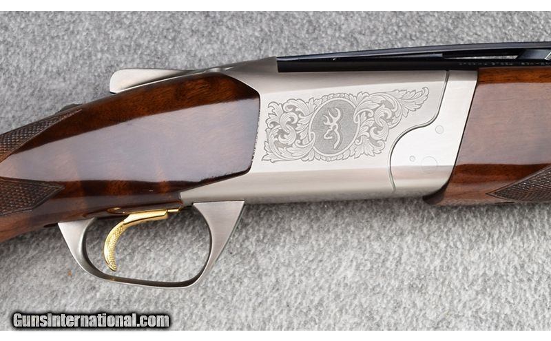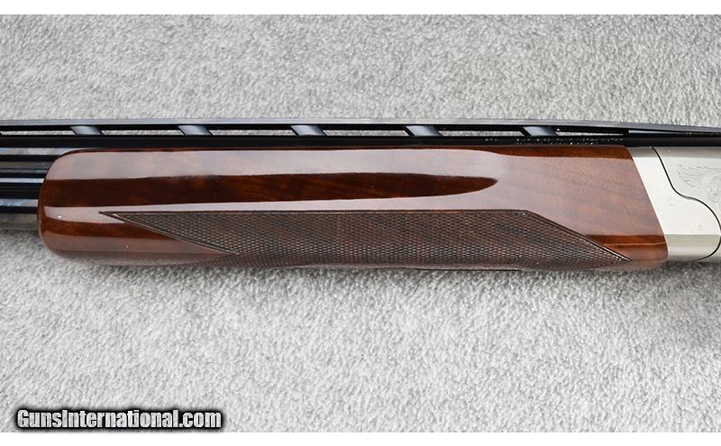 Description: This beautiful Japanese manufactured Browning is in excellent overall condition. Beautifully figured wood. Gun has been well maintained and shows little use. Complete with Browning case and set of six Invector Plus choke tubes. Beautiful gun! 12 Gauge SOLD Chambers: 2 3/4 Metal Condition: Excellent Wood Condition: Excellent Bore Condition: Excellent Barrels: 32" Vent Rib - Factory Ported Triggers: Factory Wide Gold Trigger Stock Dimensions: 14 1/4" LOP Fore End: Checkered Walnut Semi Pistol Grip - Checkered Walnut Forend Butt Pad: Browning Vented Rubber Brown Butt Pad Weight: 8 1/2 lbs Sights: Hi-Viz Yellow Front - White Mid-Bead Chokes: Invector Plus Choke System - Skeet/IC/Imp./Imp./Full/Full Item Location: Wheeling |