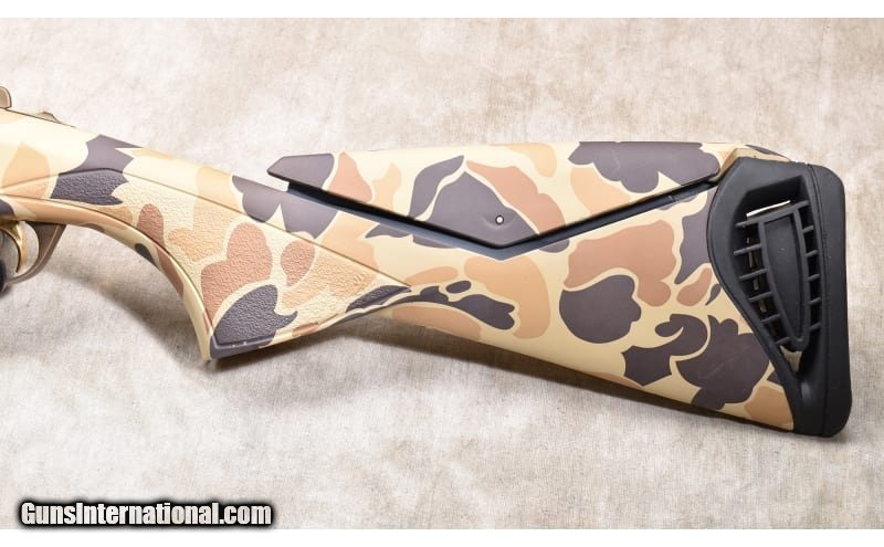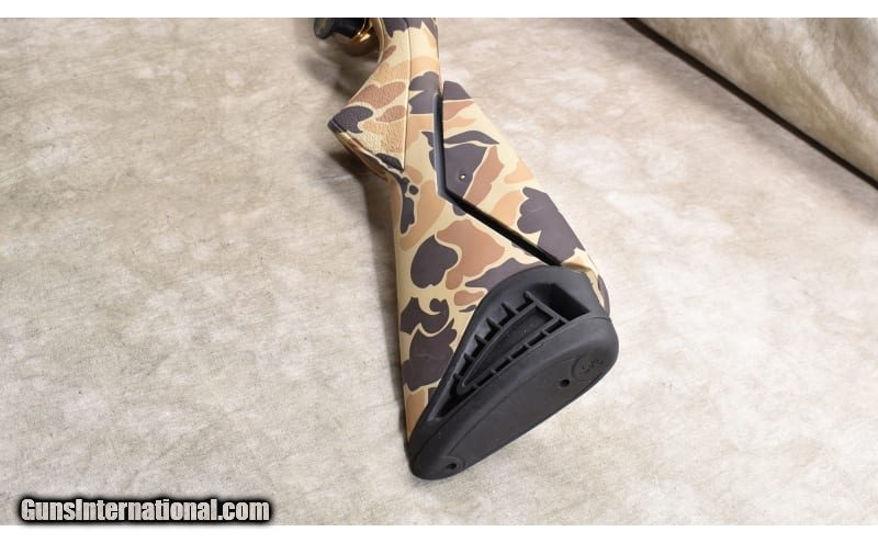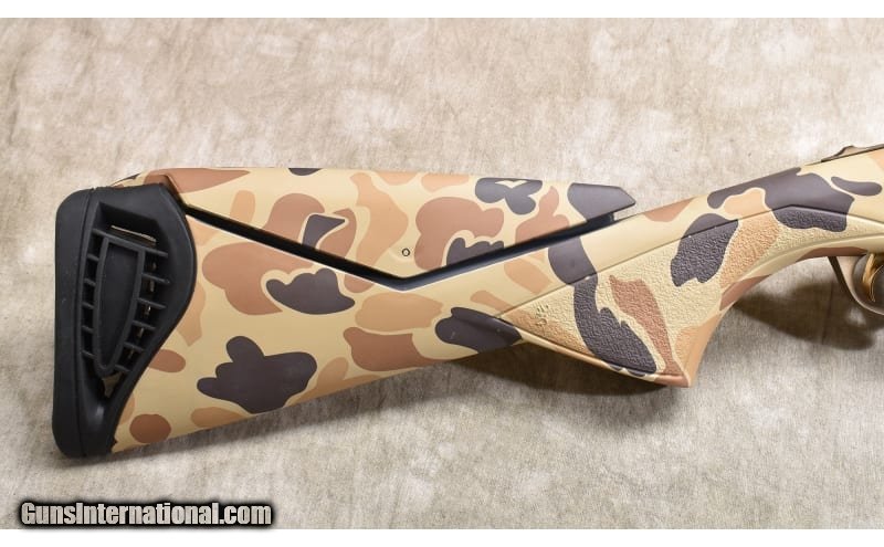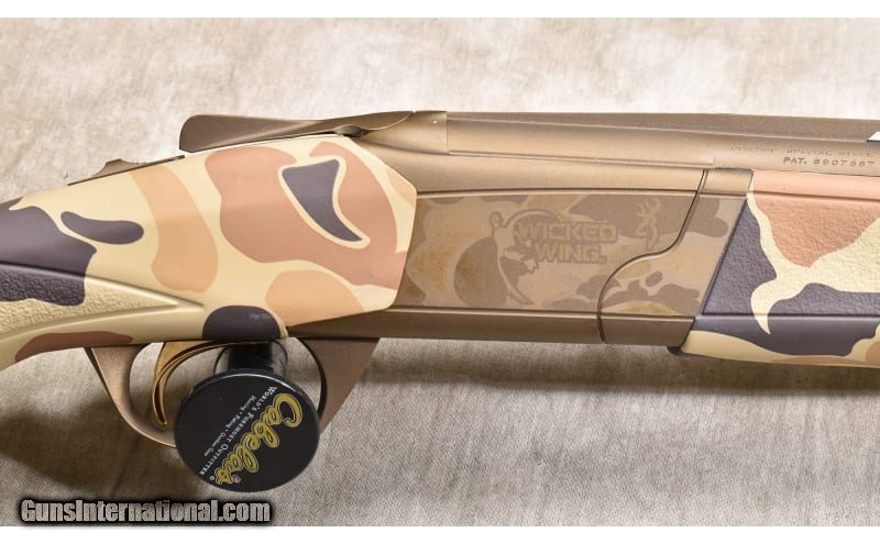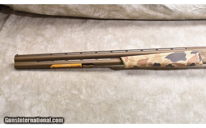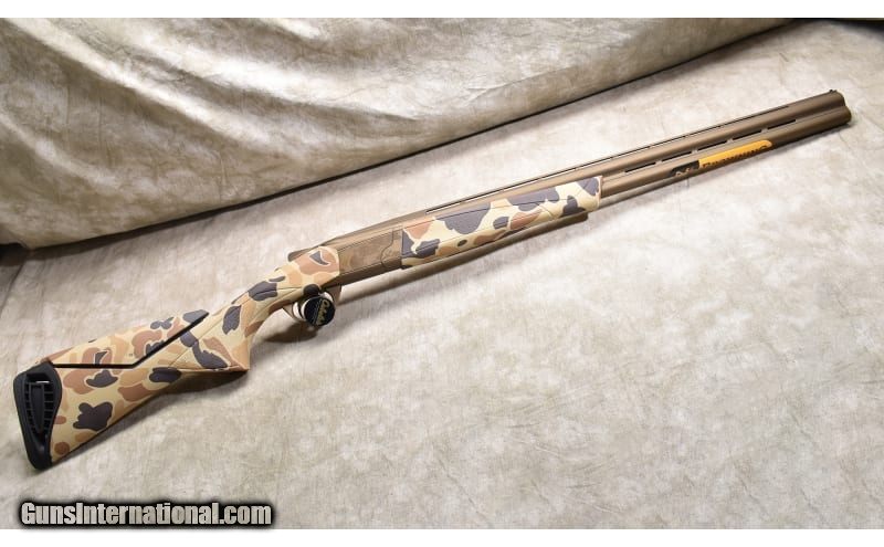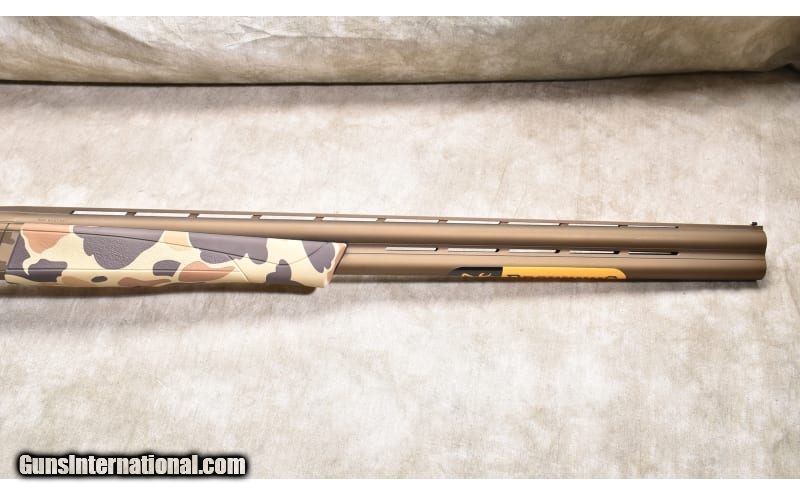 Description: Part of a "Special Buy" from Browning. This one is a blemished factory second with cosmetic spots in the "checkering." The features include bronze coat metal parts, tan woodland camo stock and fore end, Box label says Briley Full and Modified chokes. 12 Gauge SOLD Chambers: "2 rounds, 12 gauge, up to 3-1/2 inch Metal Condition: As new in the box. Wood Condition: As new in the box. Bore Condition: As new in the box. Barrels: 28 inch Triggers: "Factory single selective trigger, gold, wide. Stock Dimensions: 14-3/8 inch LOP. Fore End: Tan woodland camouflage. Butt Pad: Ventilated soft rubber pad. Weight: 7 lb - 12 oz Sights: Ventilated rib with white bead. Chokes: Interchangeable screw-in chokes. Item Location: Rogers |