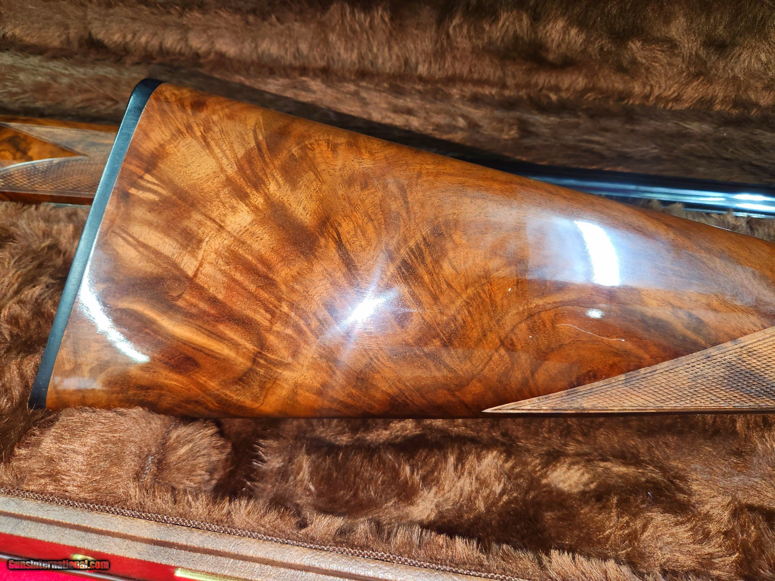 Description: UP FOR YOUR CONSIDERATION IS A MARVELOUS 1993 BROWNING CITORI SUPERLIGHT, CHAMBERED IN 12 GAUGE. SHE IS OUTFITTED WITH 26 INCH LONG BARRELS ( A STAPLE FOR SUPERLIGHTS) FRENCH GRAY, DEEP RELIEF, ORNATELY ENGRAVED RECEIVER, WITH GOLD INLAYS ON BOTH SIDES, AND THE BOTTOM. THE LONG TANG SUPERLIGHT TRIGGER GUARD IS ALSO ELABORATLY ENGRAVED WITH GOLD INLAYS AS WELL. THE STOCK AND FOREND IS SOME OF THE FINEST GRADE VI WALNUT, THAT IS JUST MAJESTIC & BREATHTAKING. FIREARM SHOWS NO SIGNS OF EVER BEING SHOT! SHE WILL COME IN THE FITTED MAKERS CASE. DO NOT MISS OUT ON THIS BEAUTY! SUPER HARD TO FIND IN A SUPERLIGHT! $6950.00 TRADES WELCOME PLEASE FEEL FREE TO ASK ANY QUESTIONS PRIOR TO SALE. BUYER PAYS $75.00 SHIPPING. WE ACCEPT ALL FORMS OF PAYMENT, HOWEVER CARD PAYMENT WILL ADD 4% TO THE TOTAL CHARGED. THANK YOU FOR LOOKING. TRADES & LAYAWAYS ALWAYS WELCOME. Shotgun Gauge: 12 Gauge Manufacturer: BROWNING Model: CITORI GRADE VI SUPERLIGHT Barrel Length: 26 Ejectors: YES Condition: EXCELLENT Triggers: SST Butt Pad: FACTORY PLATE LOP: 14.250 Rib: VENTED Finish: GLOSS Manufacture Date: 1993 Chokes: INVECTOR PLUS Engraving: GRADE VI Case: MAKERS CASE Price: $6,950.00 Shipping: $75.00 Contact Seller |