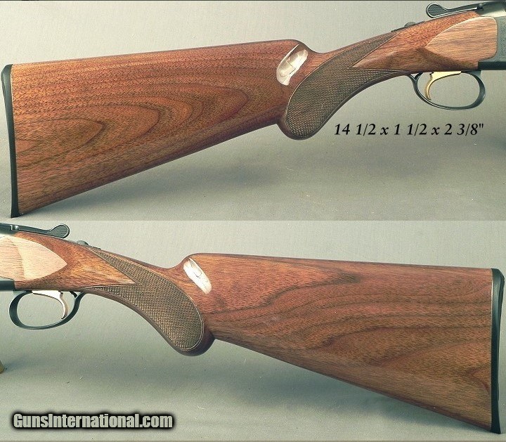 Description: #28264ZV131, Browning 20 Bore Citori Lightning Grade I That Remains Unfired in the Factory Box, Made in 2015, 26" Vent Rib Invector Plus Barrels with Invector Plus chokes, It has 3 flush Browning chokes, .628 .007 - .011 & .026" (Imp. Cyl. - Mod. & Full), 3" factory chambers, Single selective trigger, Game forend that has a slight bit of meat to it, Round knob Pistol grip stock at 14 1/2 x 1 1/2 x 2 3/8" over the factory buttplate, It will go 15 1/8" with a 1" pad installed, 6 lbs. 7 oz., The forend matches almost perfectly, 35% coverage of engraving, The original factory barrel blue is 99%, The receiver blue remains at 99%, The wood is at 99% with gun cabinet marks only, The checkering is 100%, The bores are new. This is buying it new as it is absolutely unfired and is a one owner gun that was gifted to him and it never left the house. All it has is a few gun cabinet marks. It comes with the factory box and all the Browning paperwork. SOLD Shotgun Gauge: 20 Gauge |