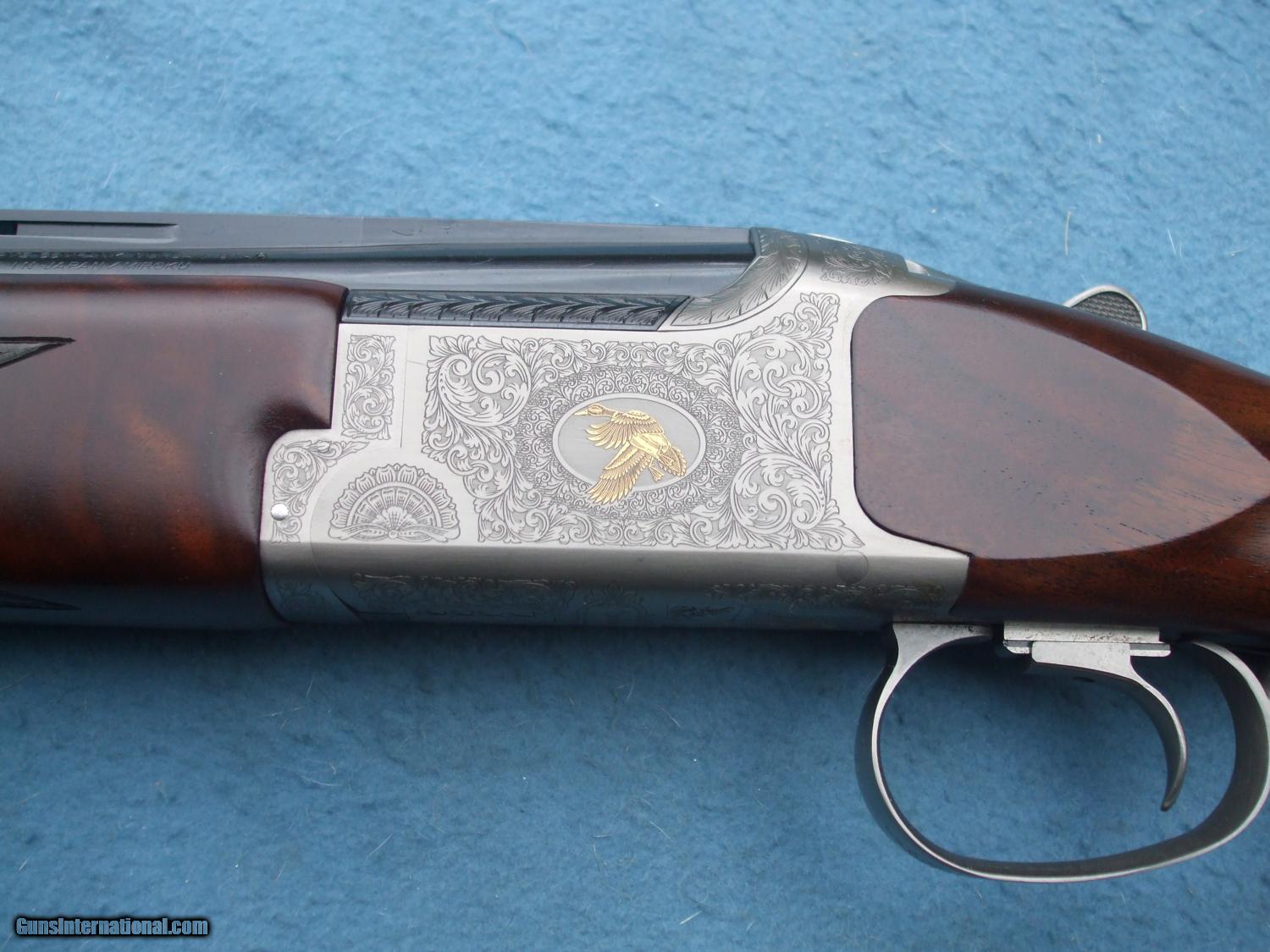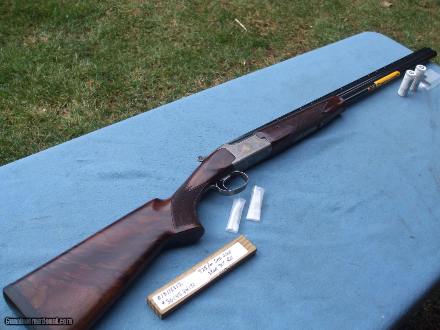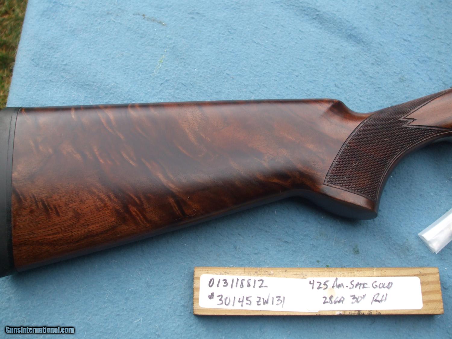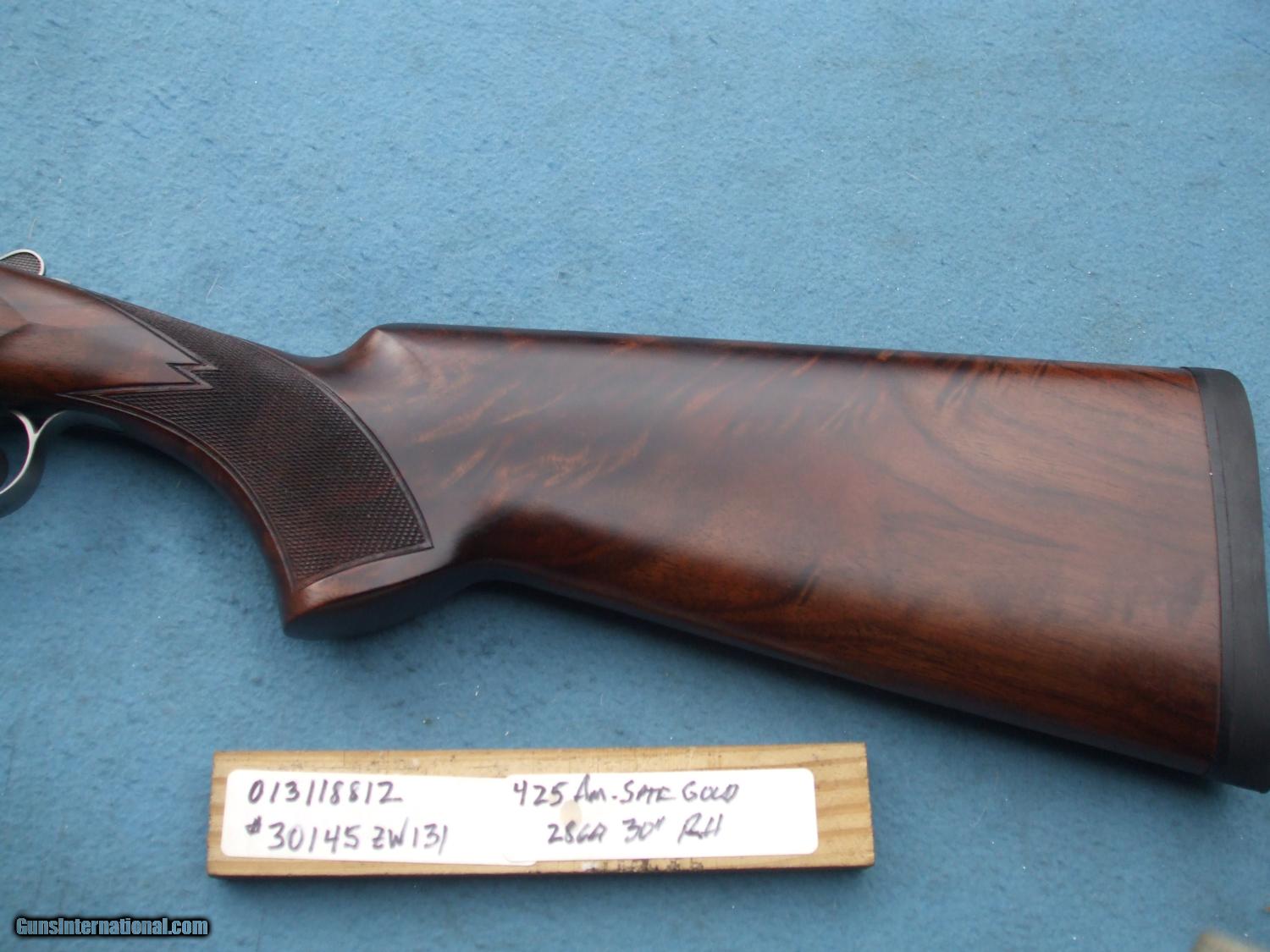 Description: Browning 425 Custom American Sporter Gold 28ga 30" right hand stock. The American Sporter engraving pattern is a unique pattern with full scroll coverage featuring in the center of the side a pheasant in gold one one side, a duck in gold on the other and a quail in gold on the underside. Tasteful scroll coverage on the top of the receiver and forend iron. Barrels have 10mm flat rib with invector choke system including 4 chokes 1-skeet 2-ic 1-mod. Wood is upgraded american walnut with hand ribbed oil finsih. The oil finish allows for quick repair of any minor scratches or dings ensuring the firearm looks like new for years to come. SOLD Manufacturer: Browning Model: 425 American Sporter Gold Serial Number: 30145zw131 Bore: .550 Chambers: 2 3/4 Ejectors: yes Condition: new Metal Condition: new Wood Condition: new Bore Condition: new Barrels: 30 Barrel Type: o/u Action: citori Triggers: 3 point adj Gauge Info: 28ga Stock: upgrade walnut Stock Comb: 1 1/2 Stock Heel: 2 3/8 Stock Cast: right hand Fore End: schnabel Butt Pad: recoil pad LOP: 14 3/4 Rib: 10mm flat Finish: oil Weight: 7-7lbs 2oz Sights: double white Manufacture Date: 2015 Chokes: invector-4 Engraving: American sporter Case: none |