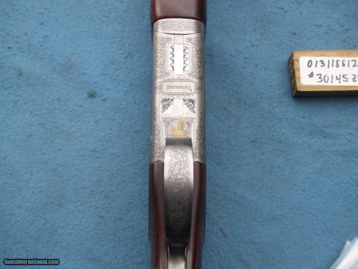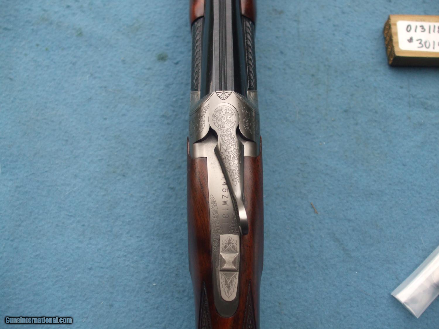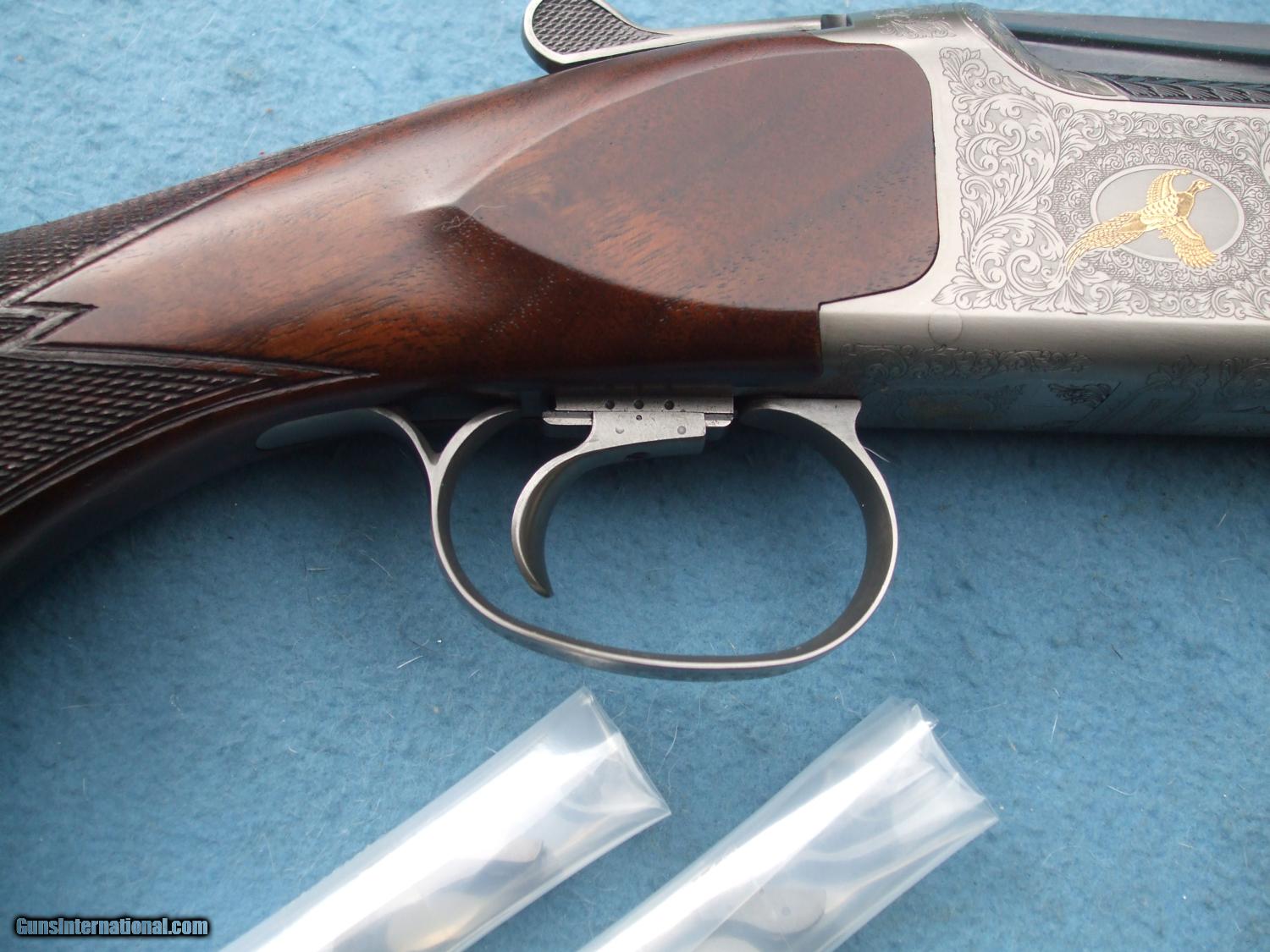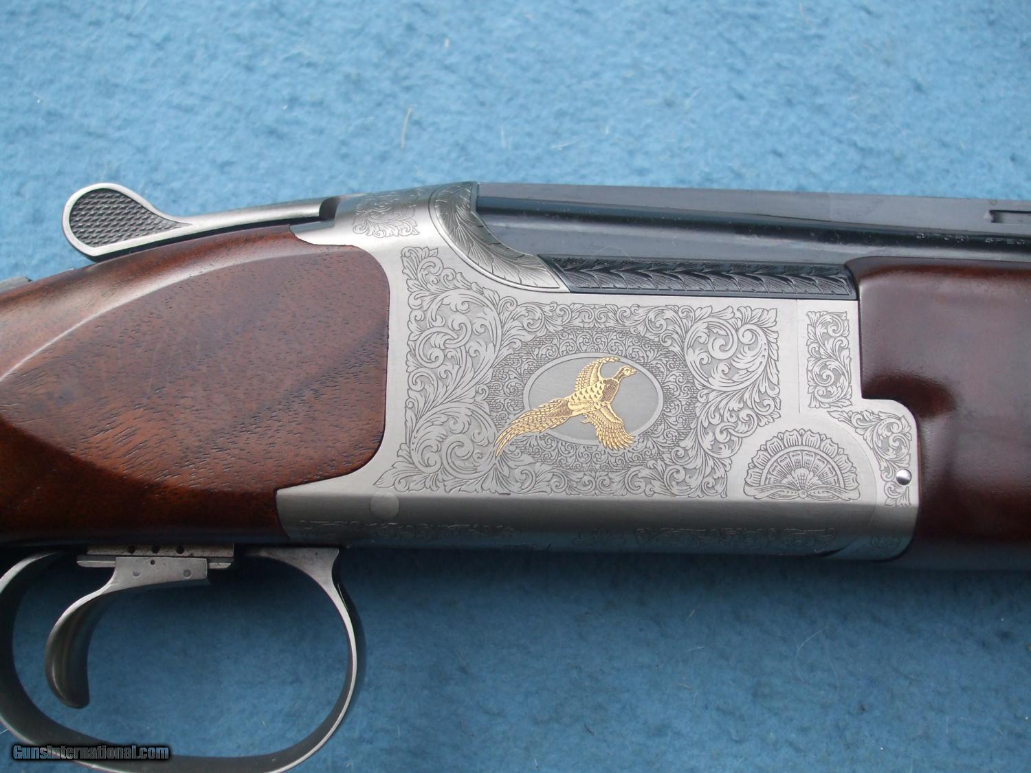 Description: Browning 425 Custom American Sporter Gold 28ga 30" right hand stock. The American Sporter engraving pattern is a unique pattern with full scroll coverage featuring in the center of the side a pheasant in gold one one side, a duck in gold on the other and a quail in gold on the underside. Tasteful scroll coverage on the top of the receiver and forend iron. Barrels have 10mm flat rib with invector choke system including 4 chokes 1-skeet 2-ic 1-mod. Wood is upgraded american walnut with hand ribbed oil finsih. The oil finish allows for quick repair of any minor scratches or dings ensuring the firearm looks like new for years to come. SOLD Manufacturer: Browning Model: 425 American Sporter Gold Serial Number: 30145zw131 Bore: .550 Chambers: 2 3/4 Ejectors: yes Condition: new Metal Condition: new Wood Condition: new Bore Condition: new Barrels: 30 Barrel Type: o/u Action: citori Triggers: 3 point adj Gauge Info: 28ga Stock: upgrade walnut Stock Comb: 1 1/2 Stock Heel: 2 3/8 Stock Cast: right hand Fore End: schnabel Butt Pad: recoil pad LOP: 14 3/4 Rib: 10mm flat Finish: oil Weight: 7-7lbs 2oz Sights: double white Manufacture Date: 2015 Chokes: invector-4 Engraving: American sporter Case: none |
