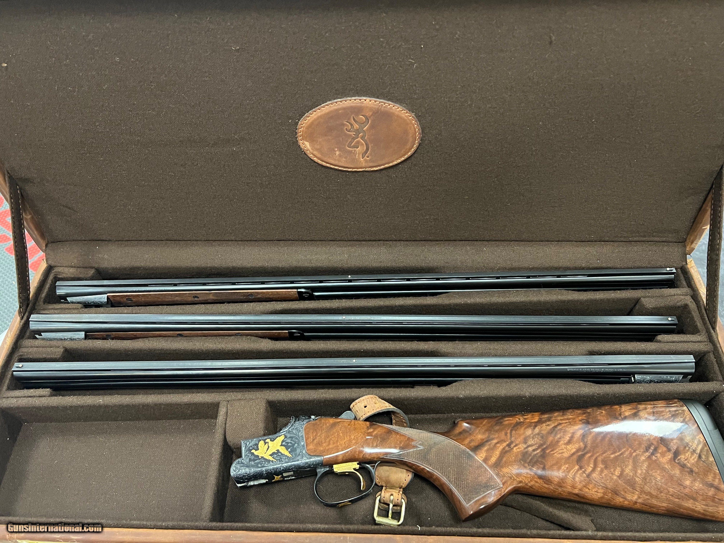 Description: This is a new Browning 425 Grade 6 Blue 3 barrel set. This is one of 7 original blued grade 6 Miller's exclusive shotguns. This is a 20/28/410 sub gauge set in original brown leather case. The buyer pays shipping and insurance. SOLD Manufacturer: Browning Model: 425 Serial Number: 23146ZW131 Barrel Length: 30” Condition: New |
