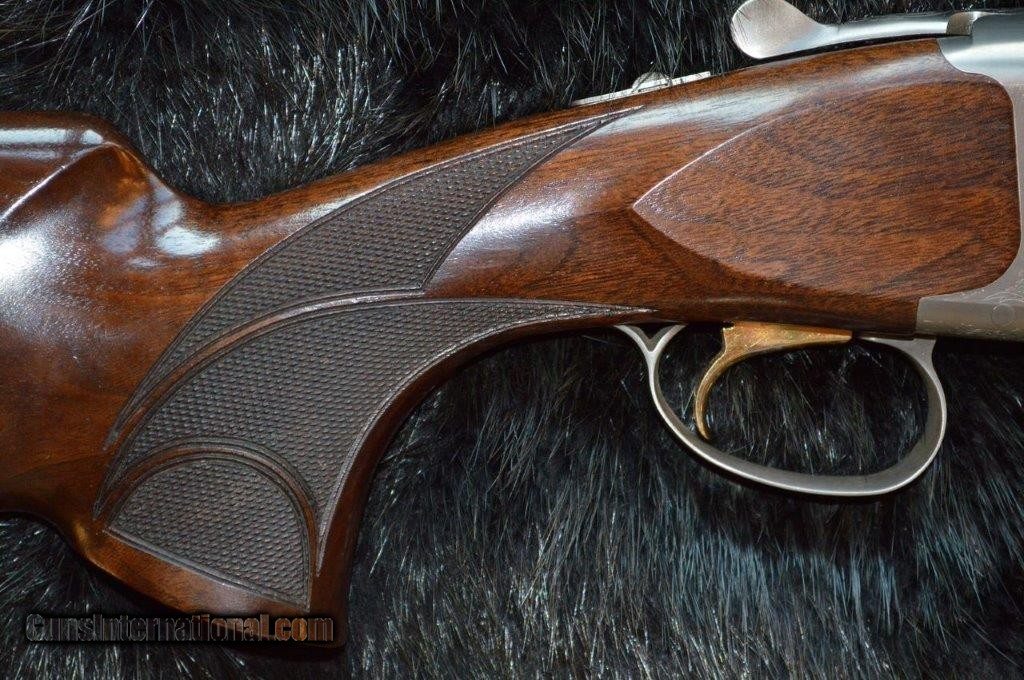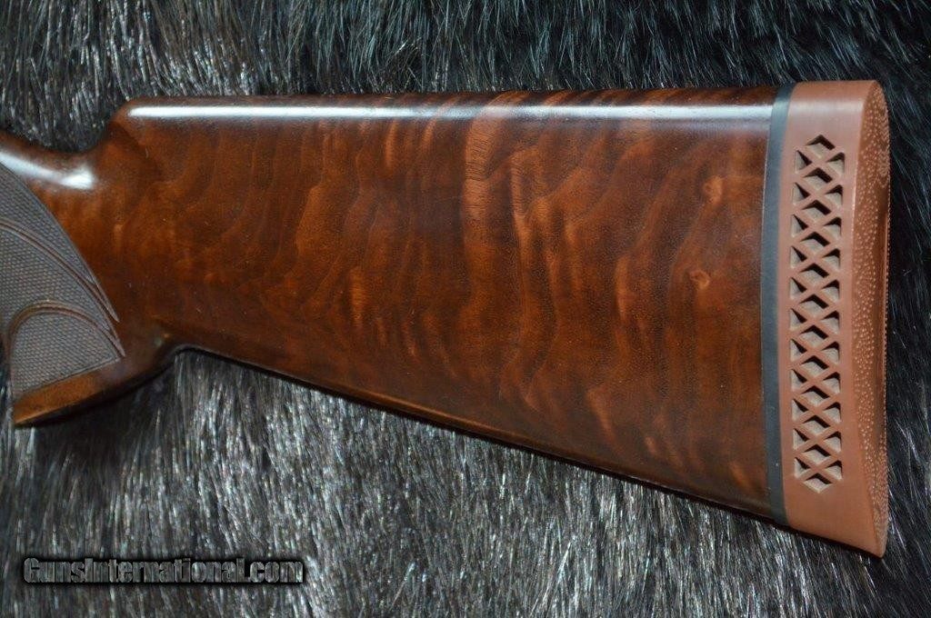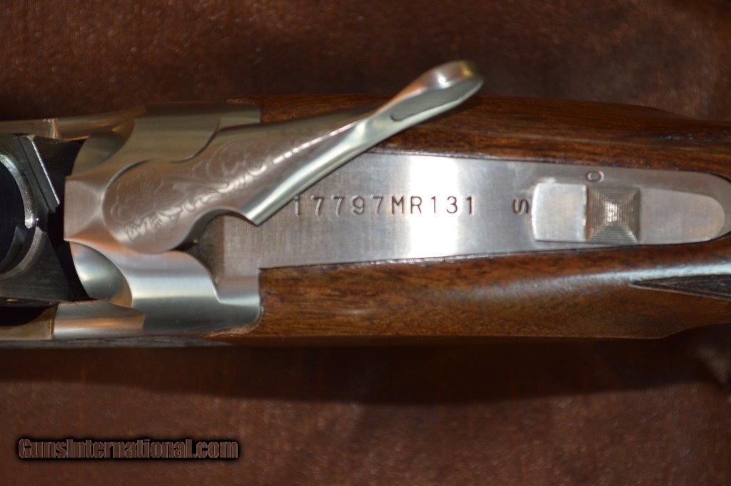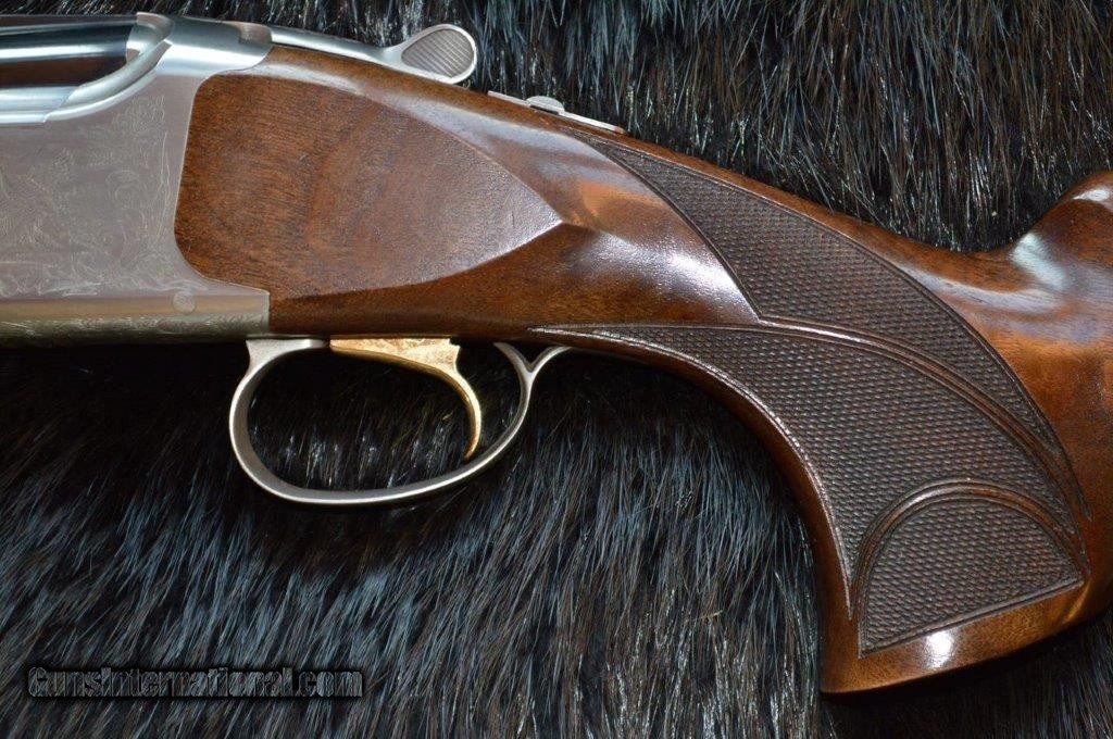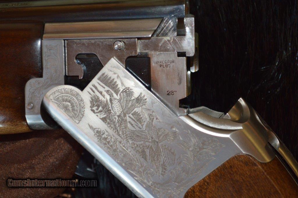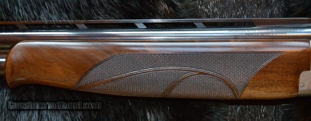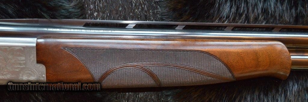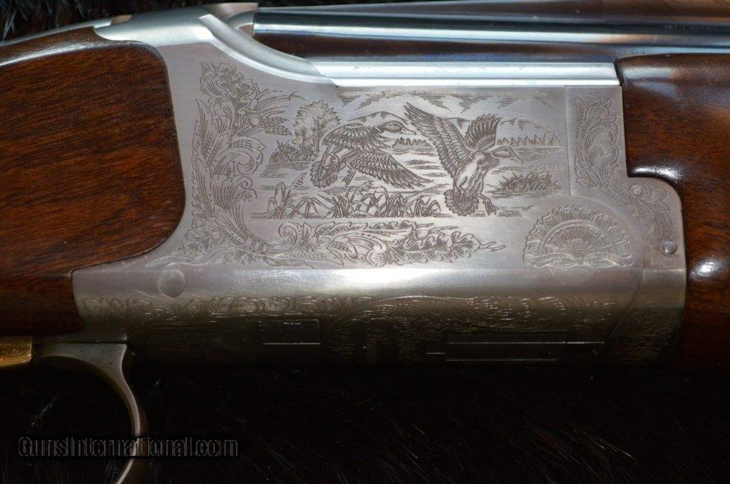 Description: SOLD PF *** This is a seldom seen Browning 625 Grade III 12 gauge with Invector Plus chokes and 28 inch barrels. The Grade III has very tasteful engraving that features two rooster pheasants on the left side and two mallard drakes on the right side. It is in very high condition with the deep luster bluing and wood finishes near 100%. The wood, according to Browning, is group III/IV walnut with very attractive figure with a length of pull of 14-1/4" to a Browning factory labeled recoil pad. The gun has its factory shipping carton complete with the owners manual; the choke tube box, containing one additional full choke; the chamber plugs and other Browning literature and safety brochures. The unique checkering pattern allows for a sure and controlled grip. The bores are clean and bright and can accommodate 2-3/4" or 3" shells in steel or lead. The gun comes up smoothly and the 28" barrels allow for a quick target acquisition. SOLD |