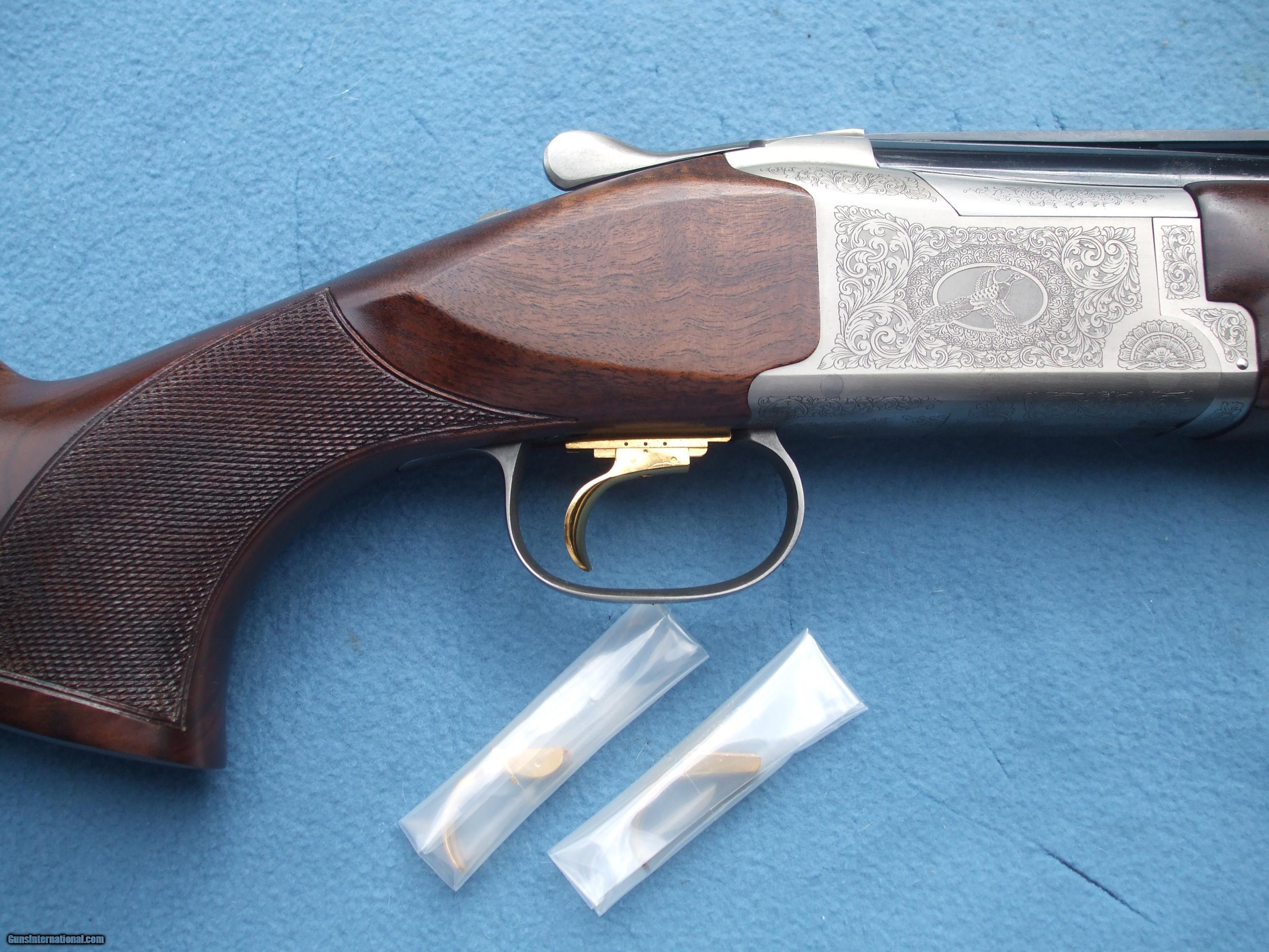 Description: Browning 725 American Sporter custom 12ga 30" right hand adjustable comb. If you like the standard 725 spitional orting model you will love this custom order model. The American Sporter is a unique engraving pattern featuring full scroll coverage with a pheasant on one side of the receiver, a duck on the other and a quail on the bottom all in flight. The receiver is white nitride finish with a slightly darker shade than stamdard to highlight the engraving pattern. Barrels are ported included with 5 extended DS invector plus chokes 1-sk 1-ic 1-mod 1-imod 1-full and have the HiViz sight system including many extra pipes. Upgraded american walnut with satin finish on the wood and inflex recoil absorbing pad. Additional features are Browning 3 point adjustable trigger system and fire-lite mechanical trigger. This gun is beautiful and a great value for the money. SOLD Manufacturer: Browning Serial Number: 17751zr131 Bore: .740 Chambers: 3 Ejectors: Yes Condition: New Metal Condition: New Wood Condition: New Bore Condition: New Barrel Type: o/u Action: Citori Triggers: fire-lite Gauge Info: 12 Stock: upgraded Stock Comb: 1 3/4 Stock Heel: 2 1/2 Stock Cast: RH Fore End: Schnabel Butt Pad: Inflex LOP: 14 3/4 Rib: 10mm-6mm Finish: satin Weight: 7lbs 10oz Sights: HiViz Manufacture Date: 2017 Chokes: DS-5 Engraving: amrcn sport Case: no |