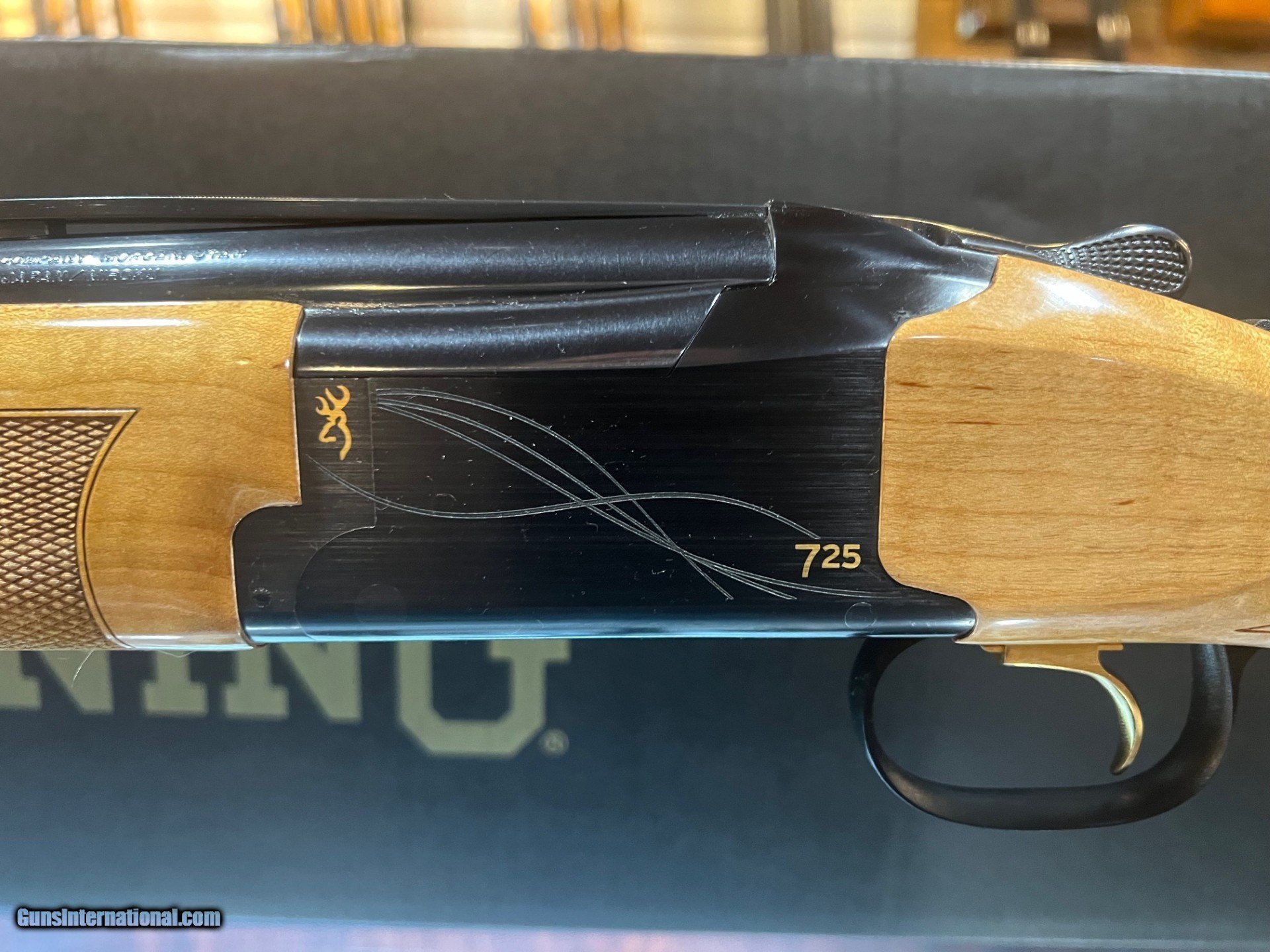 Description: New In Box Shot Show Special Limited Production Gauge12 Chamber Length 3" Barrel Length 32" Overall Length 50" Length of Pull 14 3/4 "Drop at Comb 1 9/16" Drop at Heel 2 3/8" Weight 7 lbs 8 oz Rib Width 5/16 - 7/16" Barrel Finish Polished Blued Stock Finish Gloss Oil Wood Grade AAAA Chokes Included Full, Improved Modified, Modified, Improved Cylinder, Skeet Receiver Finish Brushed Polish Chamber Finish Chrome Plated Chamber Front Sight HiViz Pro-Comp Choke System Invector-DS Extended Barrel Material Steel Stock Material Maple Recoil Pad Inflex 2, Large Checkering Cut 20 LPI NoneReceiver Material Steel Trigger Finish Gold Plated Trigger Guard Finish Silver Nitride Trigger Material Alloy Trigger Guard Material Steel Trigger Guard Engraving Buck Mark in Gold Choke Wrench IncludedT-Wrench SOLD Shotgun Gauge: 12 Gauge Manufacturer: Browning Model: 725 Sporting Maplewood Serial Number: 16047YW131 Condition: NEW |