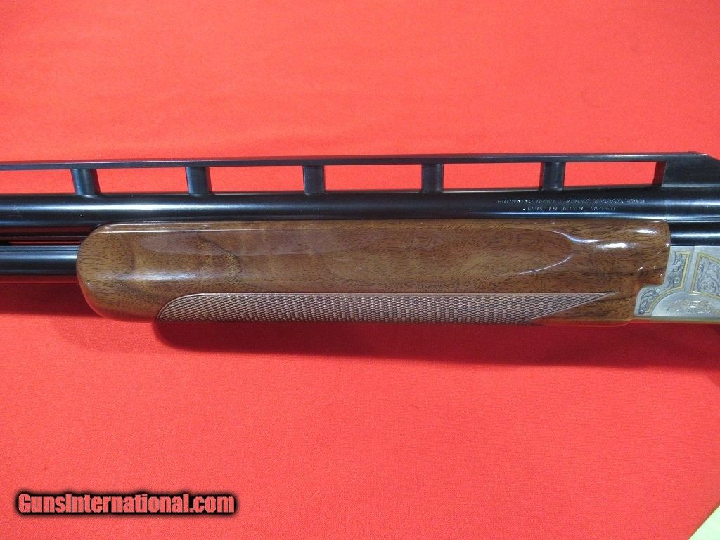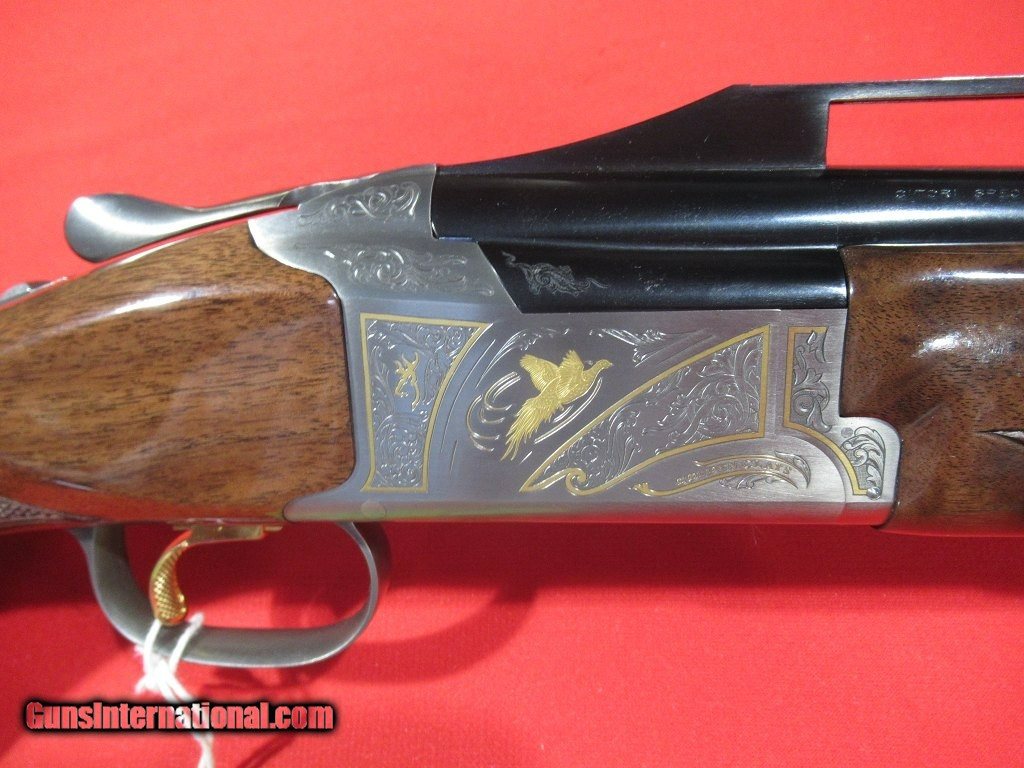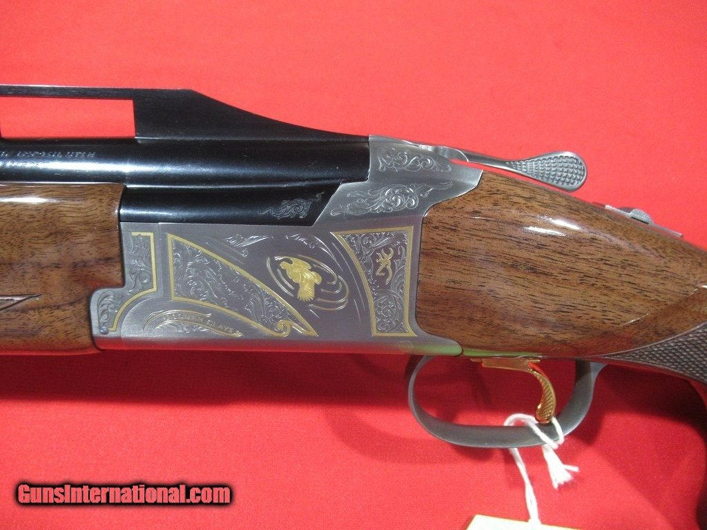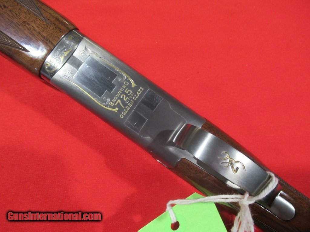Description: Browning 725 Trap Golden Clays 12ga/32" Inv Plus -- This is the new high grade 725 Trap gun. It includes a gold appointed receiver with a highly figured stock and forend. This gun includes a factory ported barrel, Hi-Viz type sight, extended choke tubes, factory adjustable four way comb, and a fully adjustable Gracoil unit. These guns look very nice. THIS IS IN UNFIRED CONDITION BY THE ORIGINAL OWNER. Includes a hard case. SOLD |