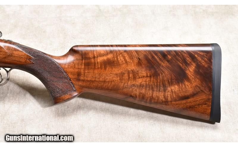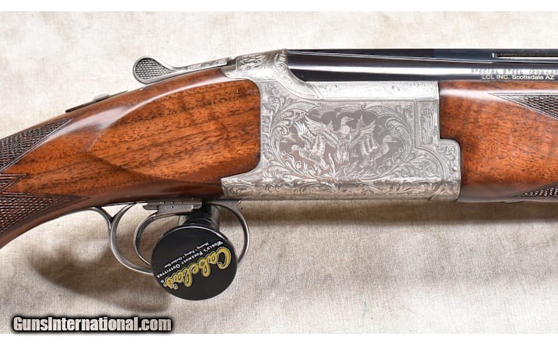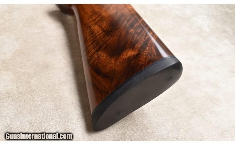 Description: This Citori B325 has Grade 5 wood and engraving. The wood is quite dark but also exhibits a lot of figure. The engraving is a full-coverage of Acanthus scroll and hunting scenes. At 7 lb -12 oz, and, nominally, 30 inches of barrel, this gun is a cross-over between field and sporting clays weight. It could serve both purposes. With the chokes at Full and Imp Mod, it could also serve pretty well as a semiformal Trap gun, especially for a new shooter who needs a little lighter gun. It was built in 1989 and hasn't seen a lot of firing, the hinge is still almost new-tight and there is little evidence of firing on the standing breech, anywhere else for that matter. 12 Gauge Chambers: "2 rounds, 12 gauge, 2-3/4 inch Metal Condition: Excellent. Wood Condition: Excellent. Bore Condition: Shiny and bright. Barrels: 29-1/2 inches Triggers: Factory trigger with some adjustment for LOP. Stock Dimensions: LOP: 14-5/8" DAC: 1-1/4" DAH: 1-1/4 Fore End: Well-matched high grade walnut with Schnabel Butt Pad: Rubber pad. Weight: 7 lb - 12 oz Sights: White beads on a 1/2 inch wide "Broadway" type ventilated rib. Chokes: Fixed * and *_ (Full and Imp. Mod.) Item Location: Rogers Price: $3,449.99 Contact Seller |