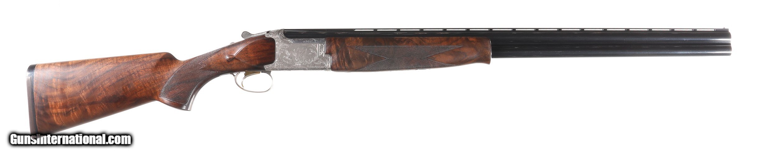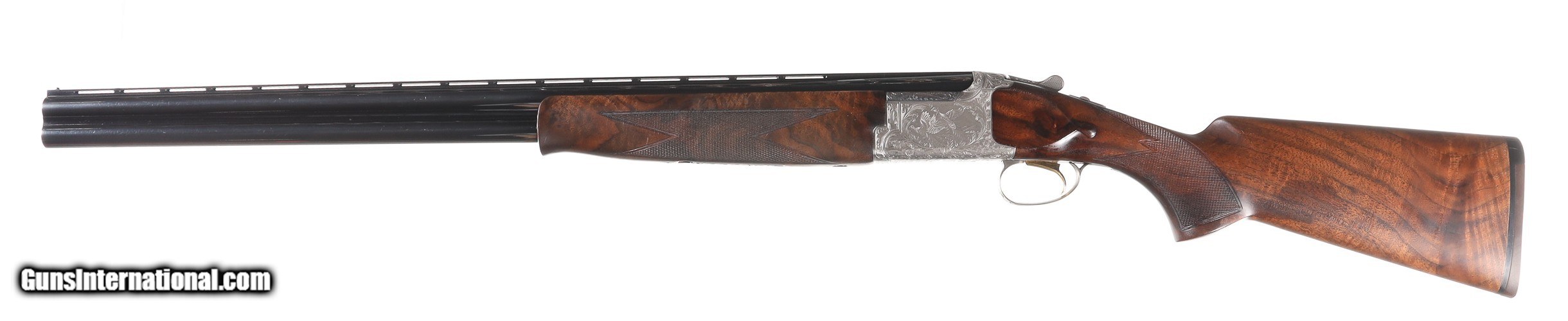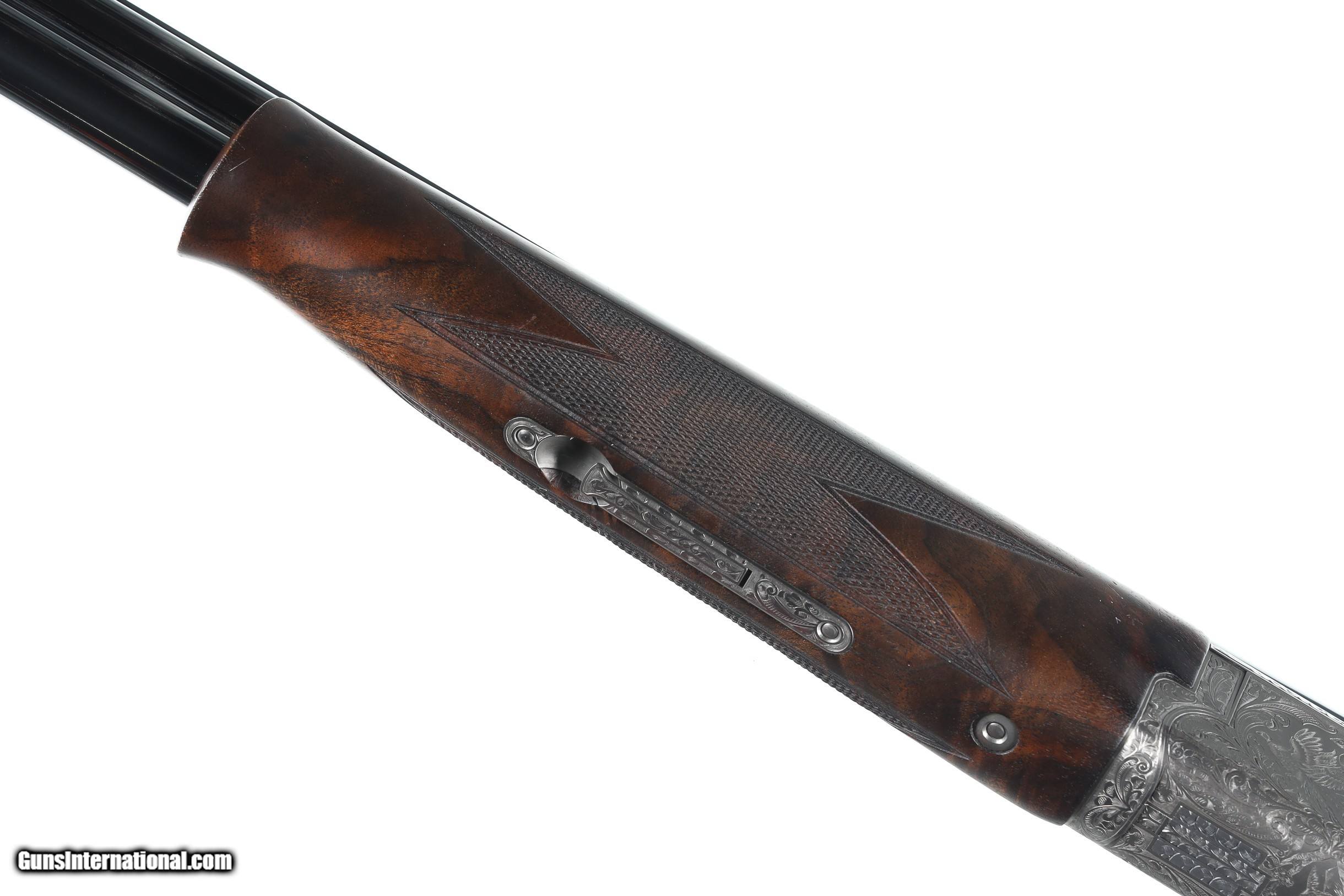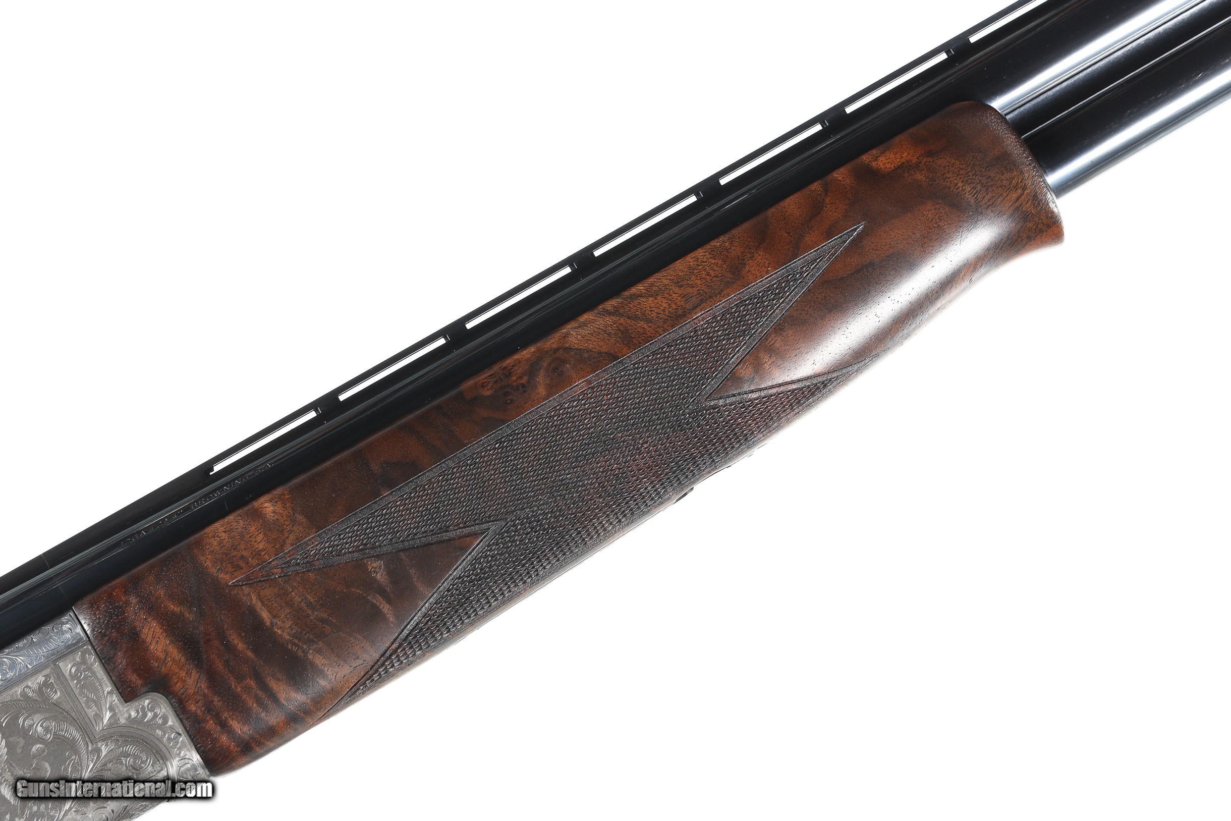 Description: Browning B425 Prestige (Grade 5) . 12 Ga, 28" Vent rib Bbl with full & Modified chokes. Single selective trigger with ejectors. Coin finished receiver, game scene engraved with vignettes of flushing Pheasants, Launching Ducks, Hunting dog on underside, and flushing Quali on trigger guard. Balance is profusely engraved with scroll & foliate. Mounted with oil-finished checkered pistol grip highly figured walnut stock with matching forearm. Furnished with Browning luggage case. Condition, Extremely fine with some very light micro scratches in the barrel finish from field use. Brilliant bright bores. Engraving is excellent. 13 3/4" LOP 1 1/2" DAC 2 1/8" DAH.Case is excellent. • Free Shipping, No Credit Card Fees. • Lay-a-way available for this firearm. • 1/3 Down, a 1/3 in 30 Days 1/3 in 60 Days. SOLD Shotgun Gauge: 12 Gauge Manufacturer: Browning Model: B425 Prestige Serial Number: 33907NP Barrel Length: 28 |