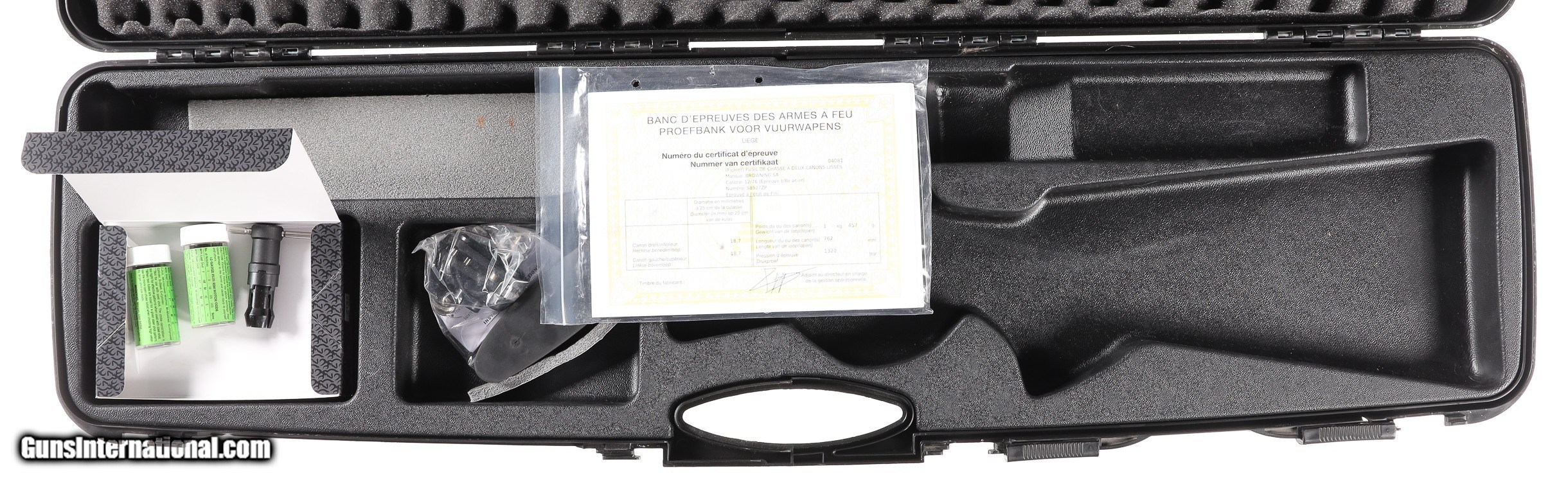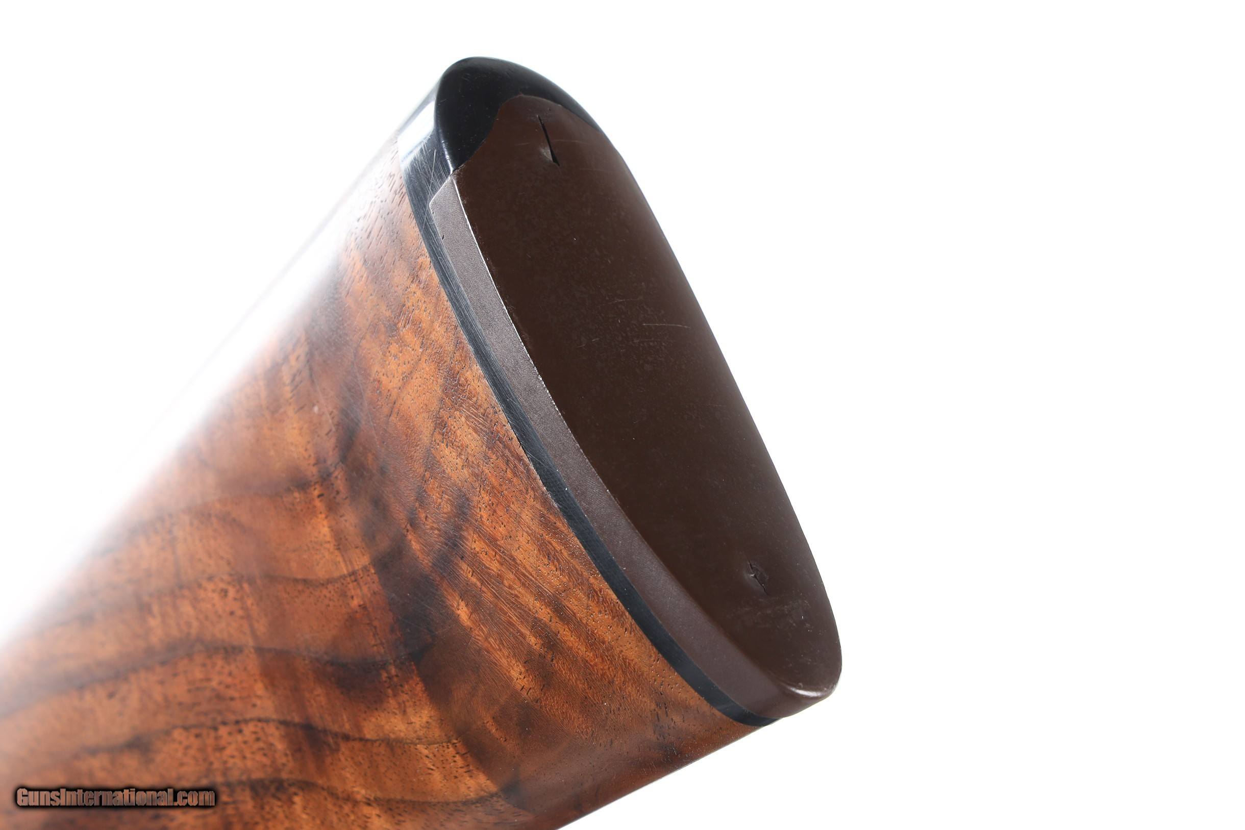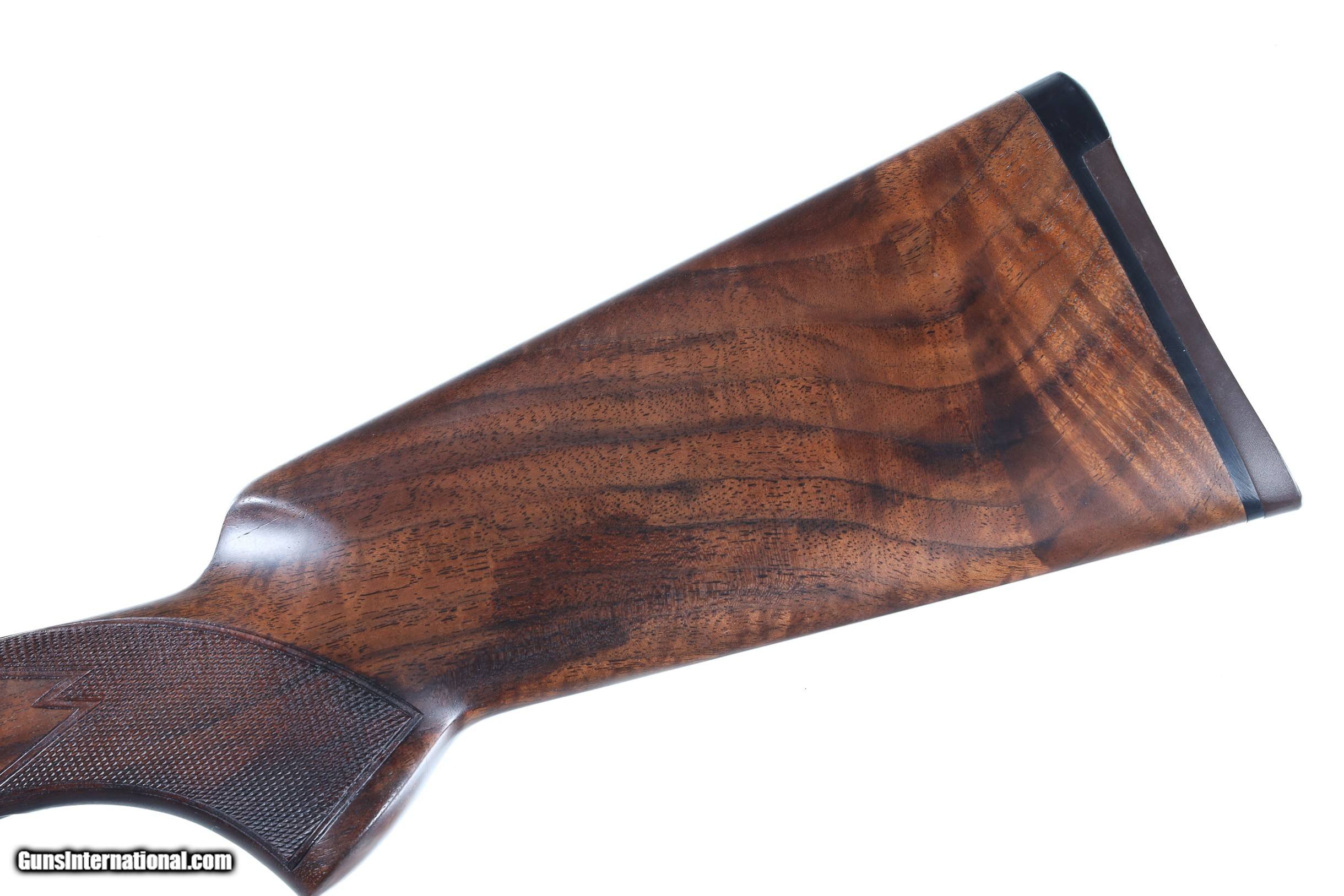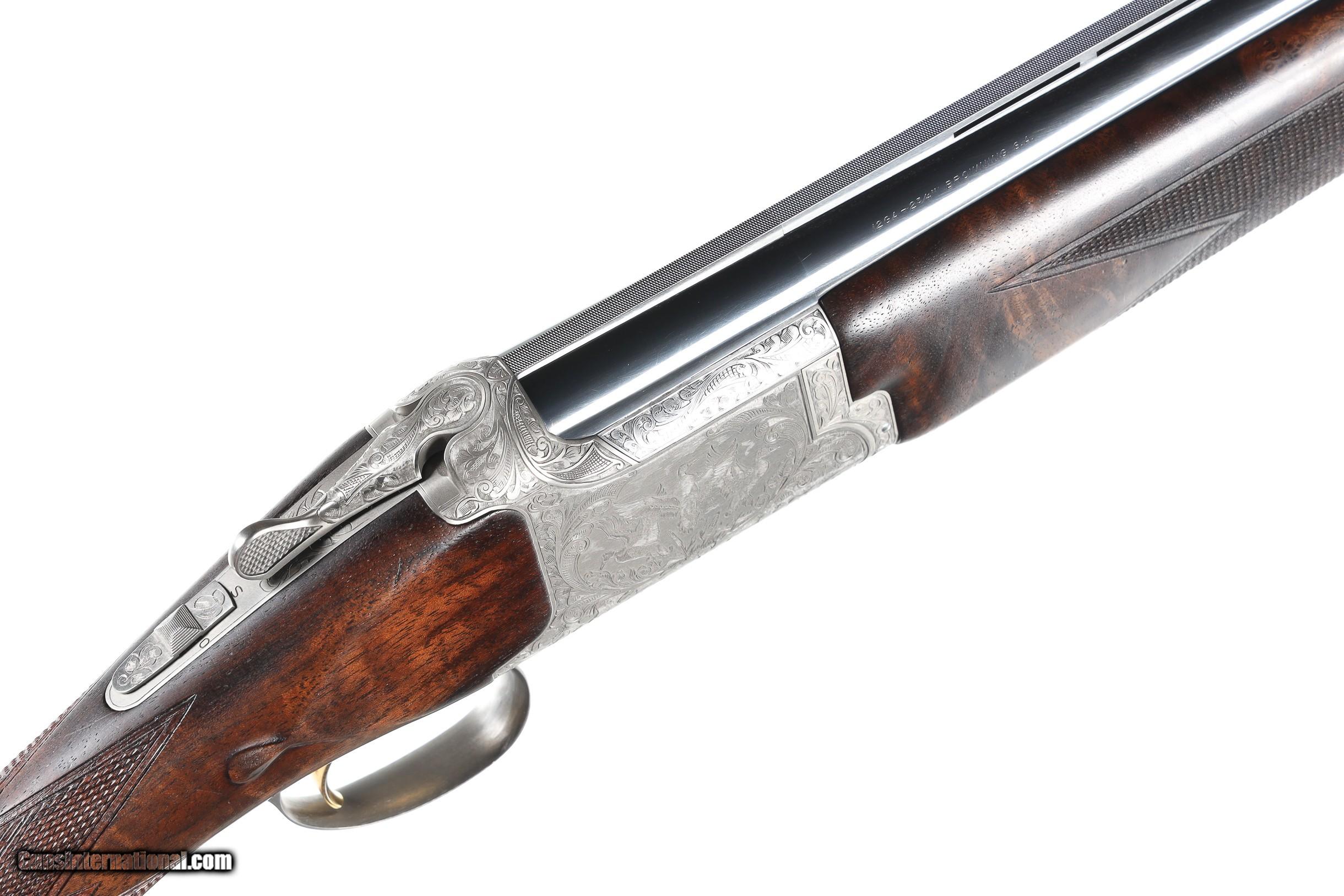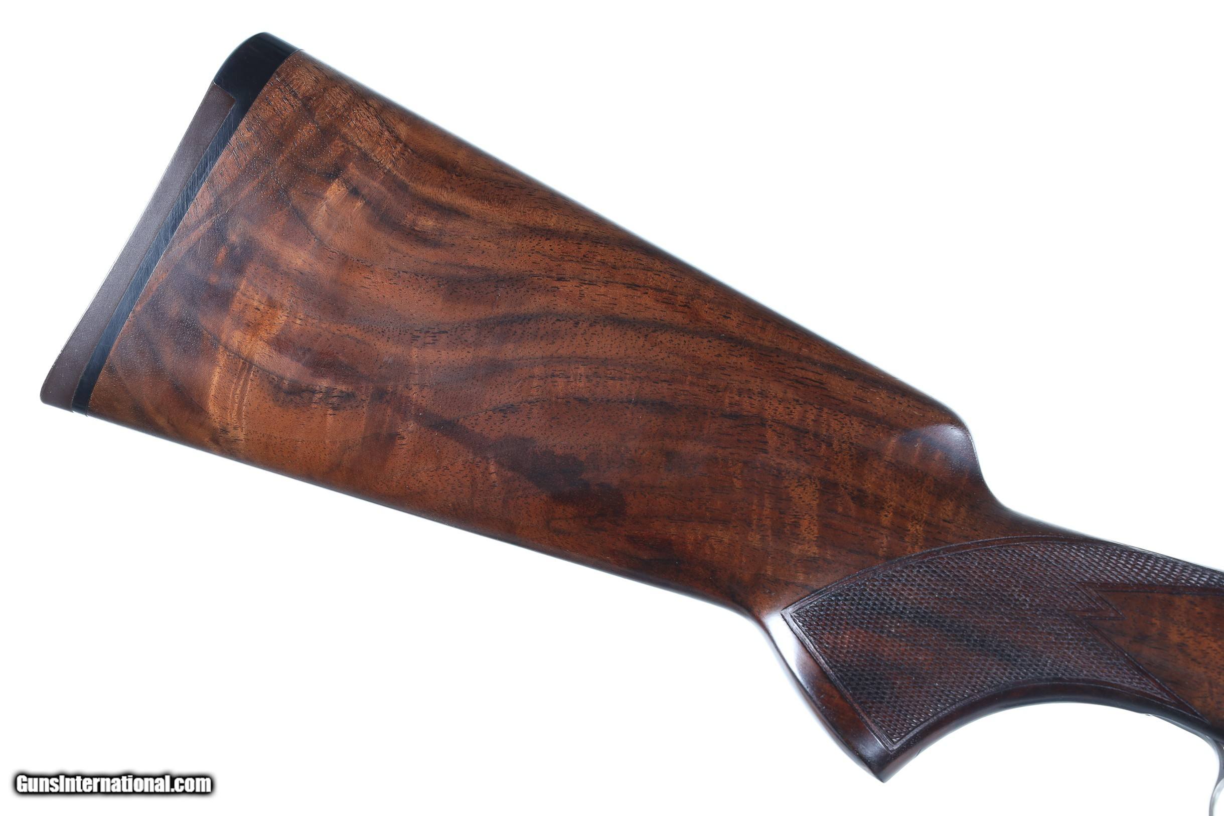 Description: Browning B425 Prestige (Grade 5) . 12 Ga, 28" Vent rib Bbl with full & Modified chokes. Single selective trigger with ejectors. Coin finished receiver, game scene engraved with vignettes of flushing Pheasants, Launching Ducks, Hunting dog on underside, and flushing Quali on trigger guard. Balance is profusely engraved with scroll & foliate. Mounted with oil-finished checkered pistol grip highly figured walnut stock with matching forearm. Furnished with Browning luggage case. Condition, Extremely fine with some very light micro scratches in the barrel finish from field use. Brilliant bright bores. Engraving is excellent. 13 3/4" LOP 1 1/2" DAC 2 1/8" DAH.Case is excellent. • Free Shipping, No Credit Card Fees. • Lay-a-way available for this firearm. • 1/3 Down, a 1/3 in 30 Days 1/3 in 60 Days. SOLD Shotgun Gauge: 12 Gauge Manufacturer: Browning Model: B425 Prestige Serial Number: 33907NP Barrel Length: 28 |