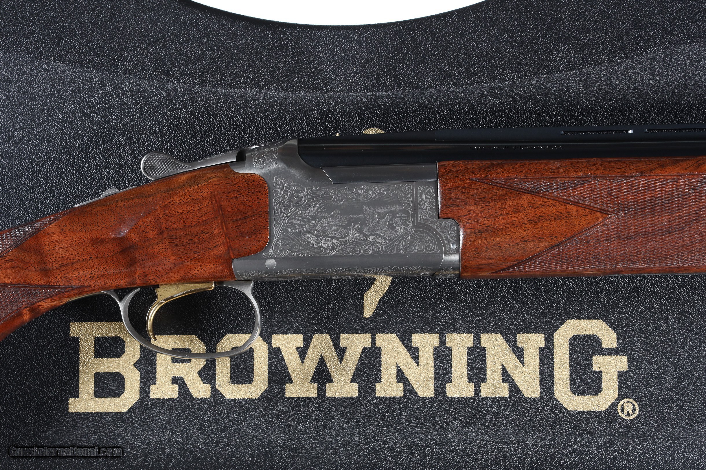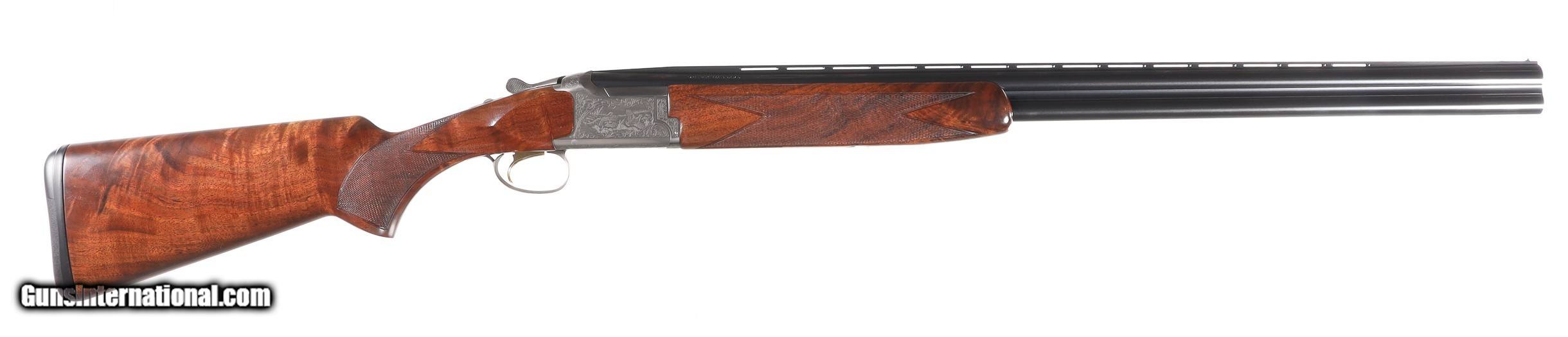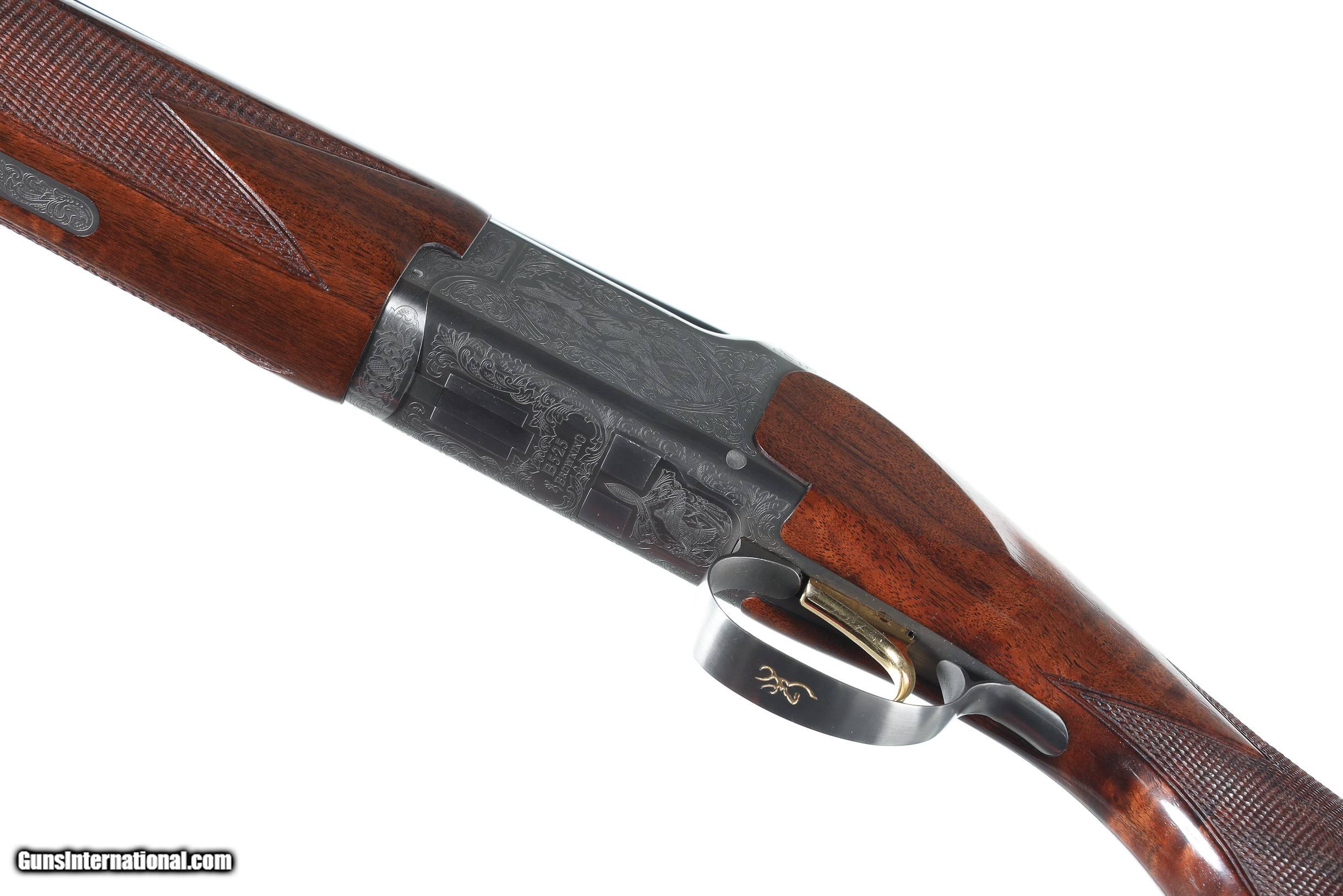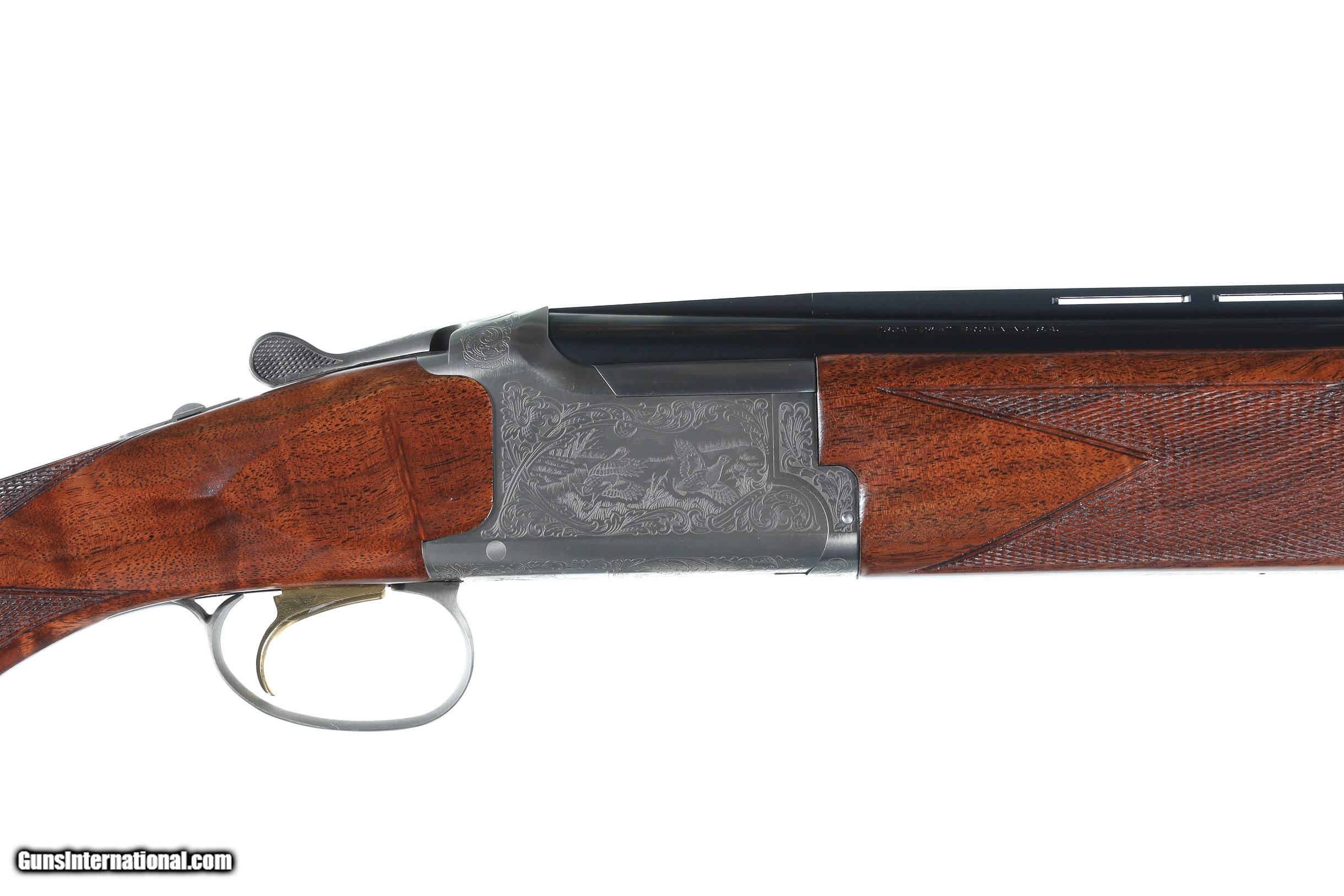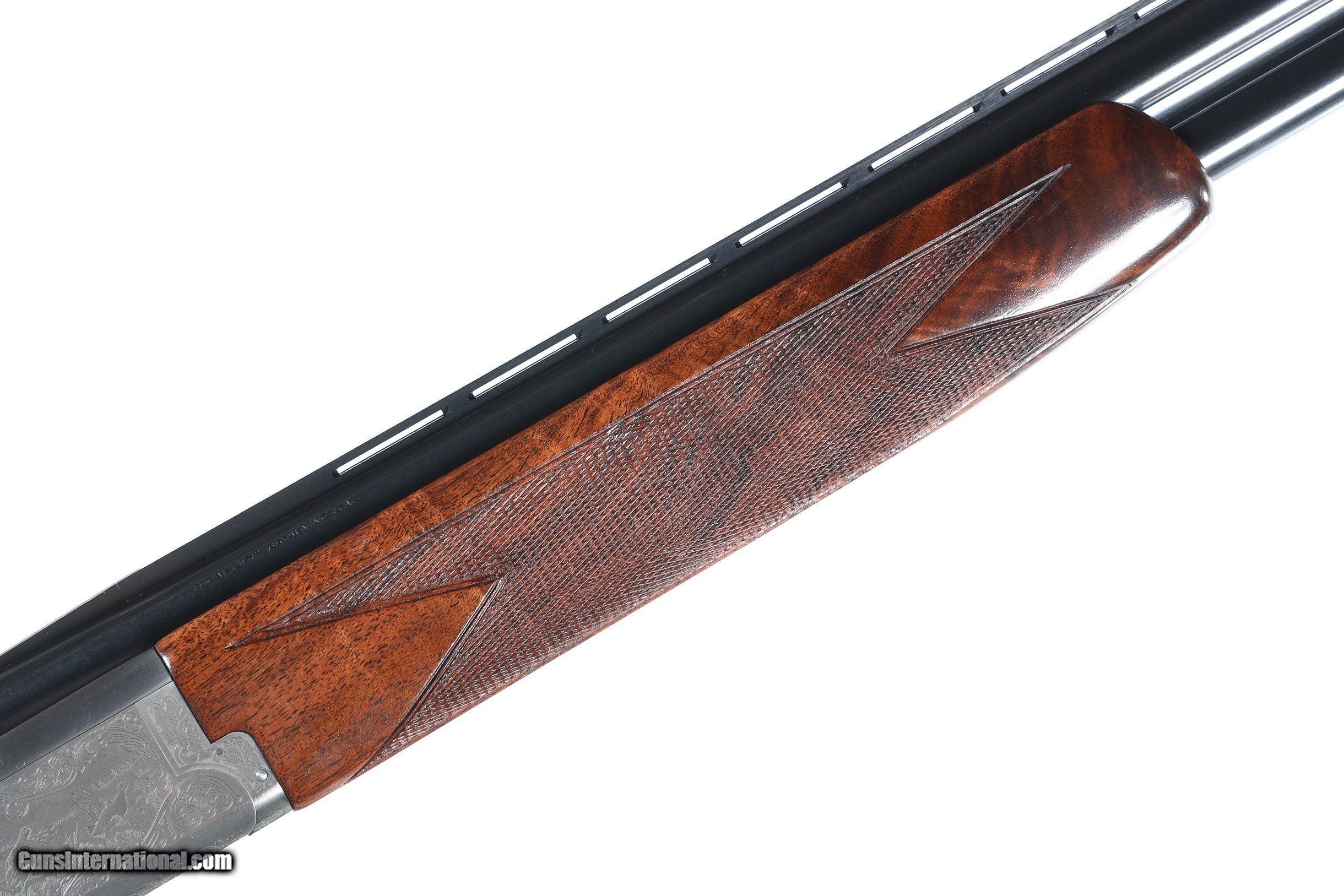Description: Scarce Browning 16 Ga, Model 525 Game Tradition over under shotgun with 30" vent rib Bbls with Invector choke system. Coin finished game scene engraved receiver with single selective trigger and ejectors. Varnished checkered pistol grip stocks with factory recoil pad. Furnished with factory luggage case with additional chokes. 14 1/2" LOP 1 1/2" DAC 2 1/4" DAH. Condition, Extremely fine with light use. Bright bores. Metal finishes remain excellent. Mechanically excellent. Stocks are very fine with a few minor handling marks. Case is excellent. • Free Shipping, No Credit Card Fees. • Lay-a-way available for this firearm. • 1/3 Down, a 1/3 in 30 Days 1/3 in 60 Days. SOLD Shotgun Gauge: 16 Gauge Manufacturer: Browning Model: B525 Game Tradition Serial Number: JP64524YZ131 Barrel Length: 30 |