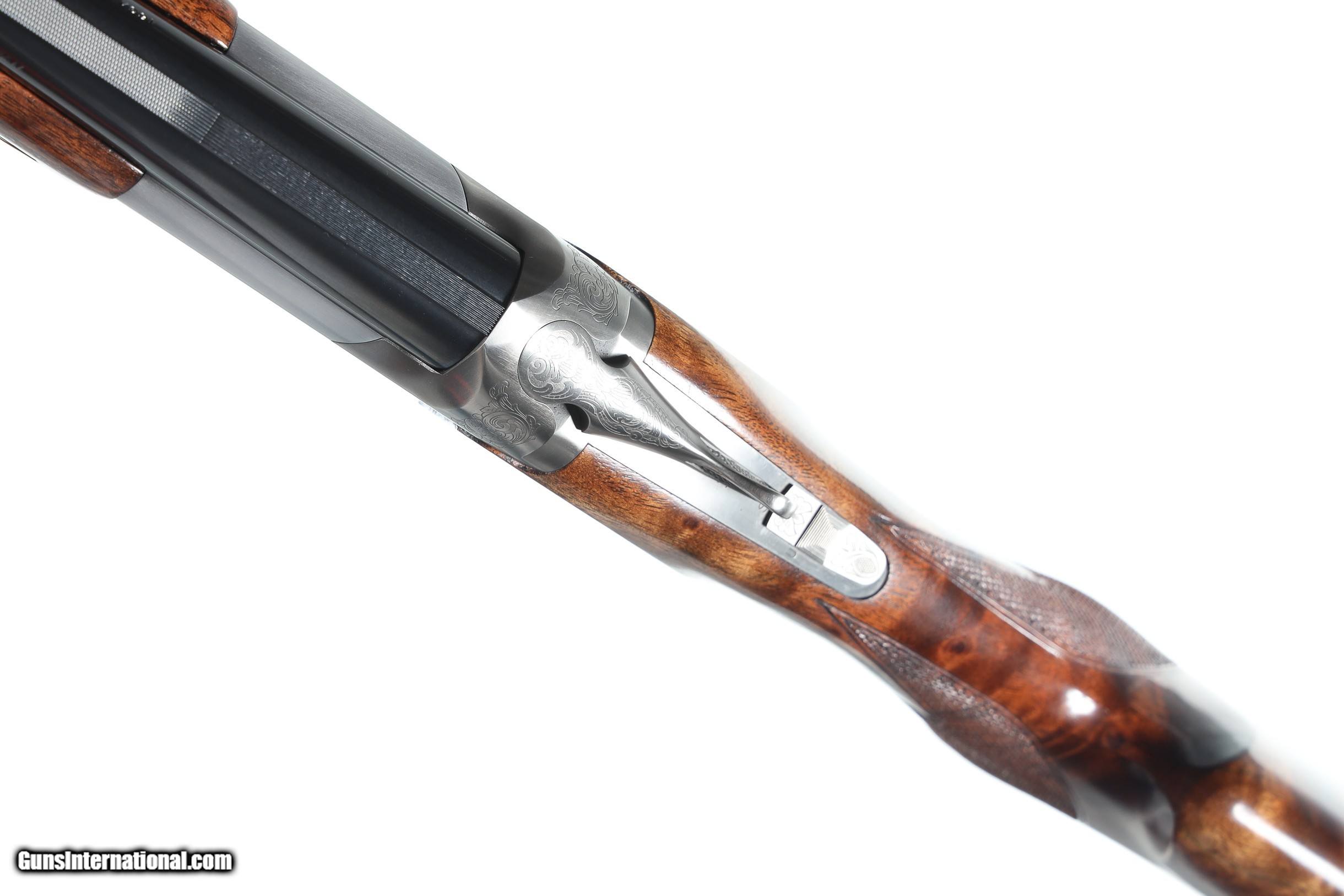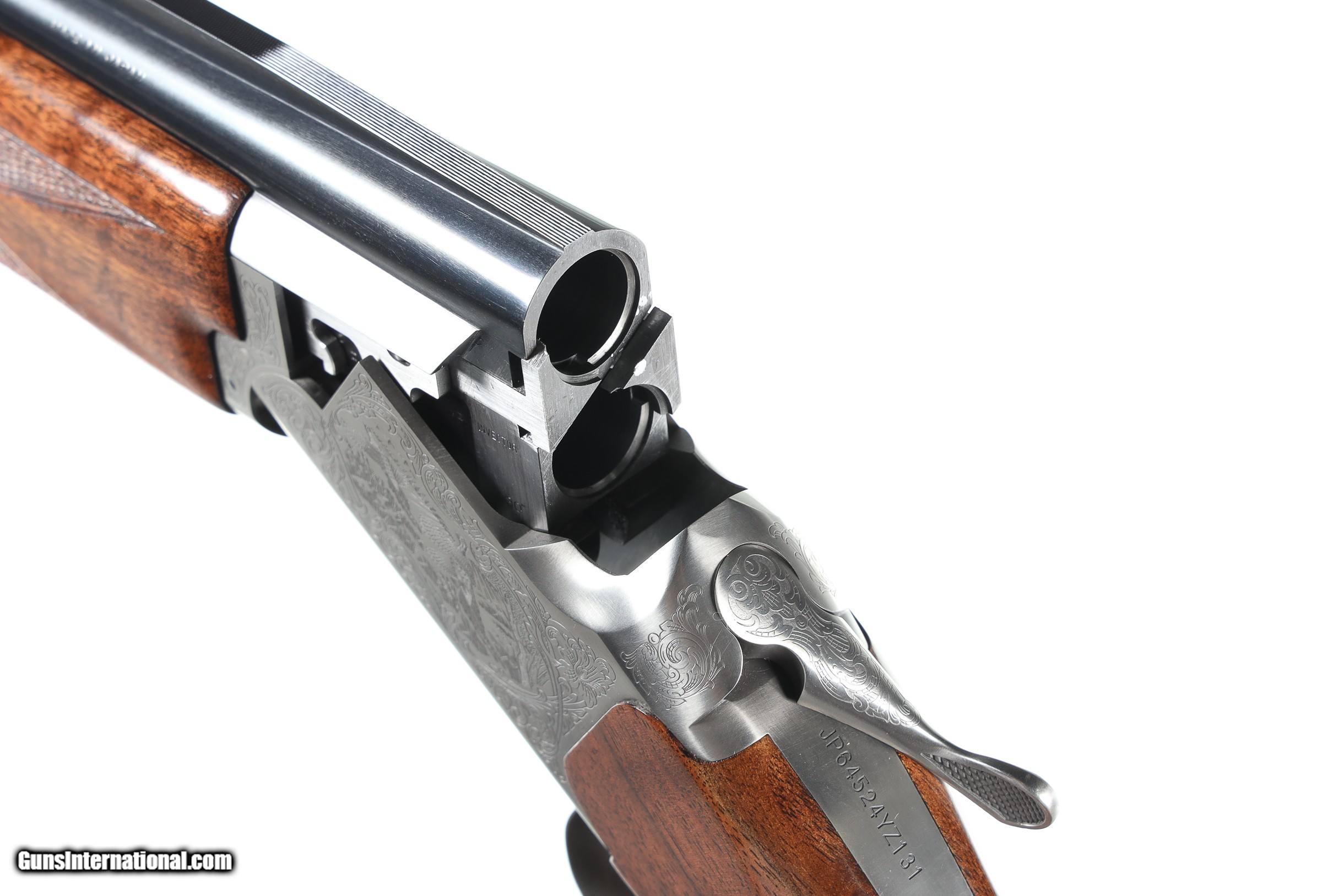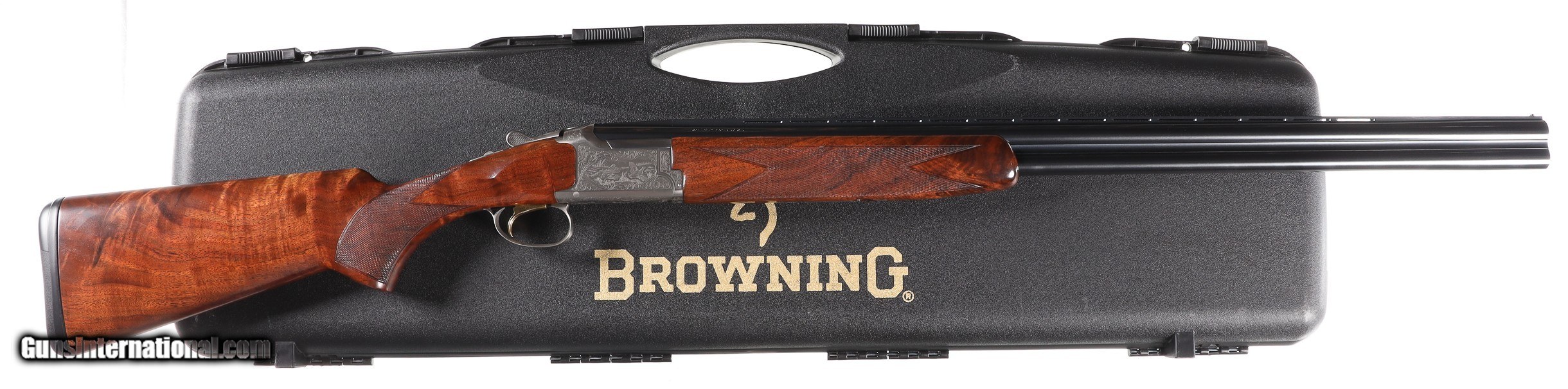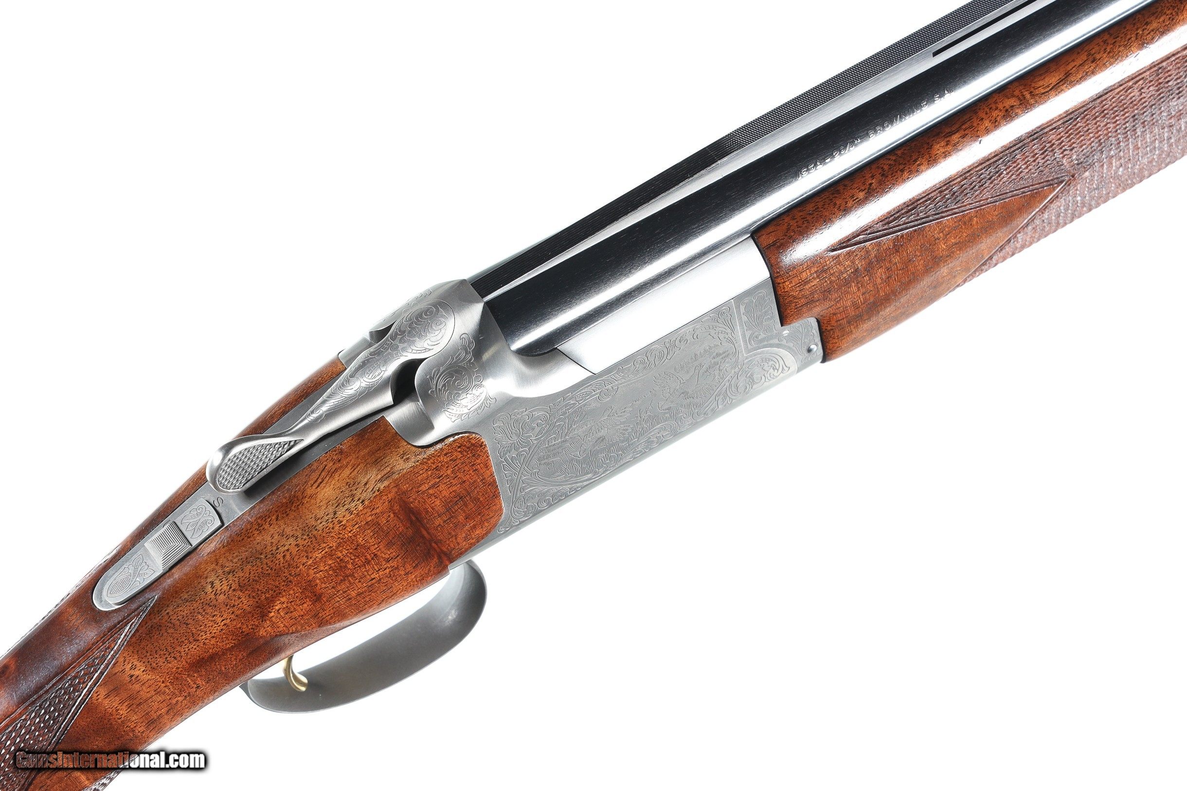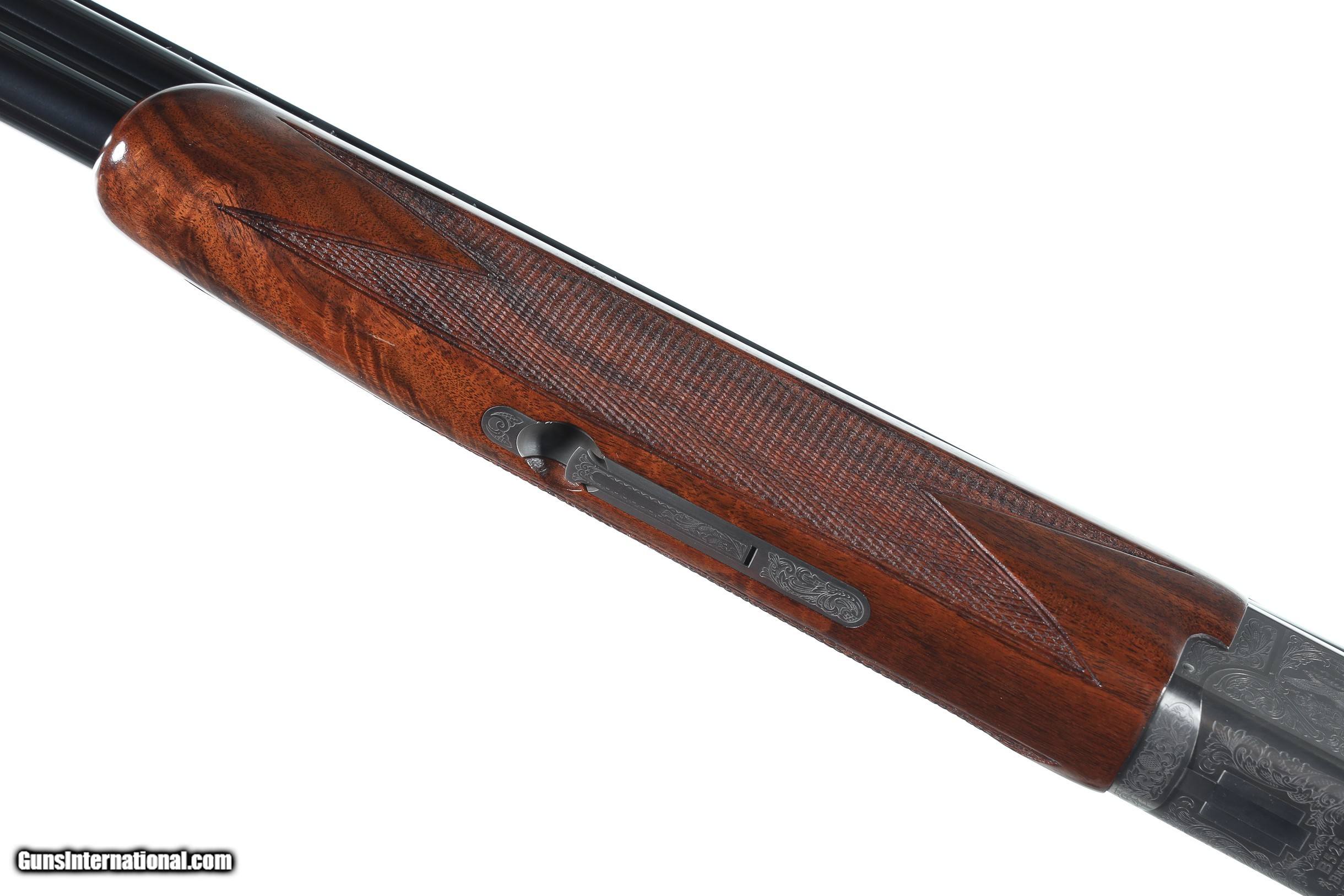 Description: Scarce Browning 16 Ga, Model 525 Game Tradition over under shotgun with 30" vent rib Bbls with Invector choke system. Coin finished game scene engraved receiver with single selective trigger and ejectors. Varnished checkered pistol grip stocks with factory recoil pad. Furnished with factory luggage case with additional chokes. 14 1/2" LOP 1 1/2" DAC 2 1/4" DAH. Condition, Extremely fine with light use. Bright bores. Metal finishes remain excellent. Mechanically excellent. Stocks are very fine with a few minor handling marks. Case is excellent. • Free Shipping, No Credit Card Fees. • Lay-a-way available for this firearm. • 1/3 Down, a 1/3 in 30 Days 1/3 in 60 Days. SOLD Shotgun Gauge: 16 Gauge Manufacturer: Browning Model: B525 Game Tradition Serial Number: JP64524YZ131 Barrel Length: 30 |