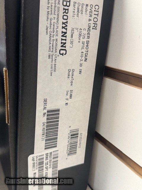 Description: Browning Citori 725 Sprting Small Gauge 410 013531912 new in box Browning Citori 725 Sprting Small Gauge 410 013531912