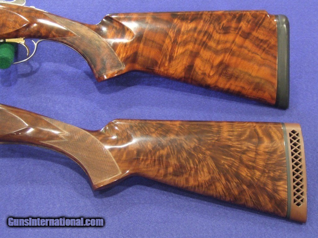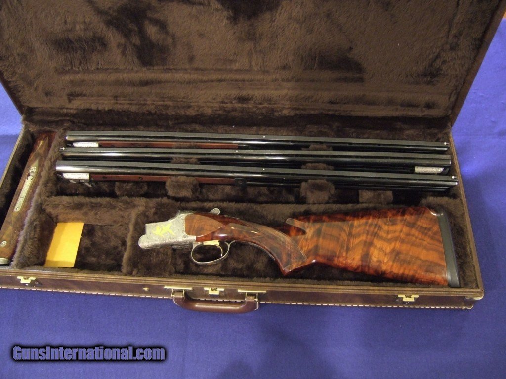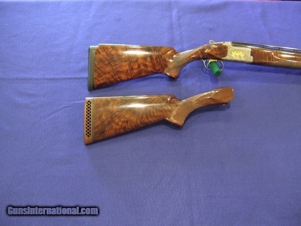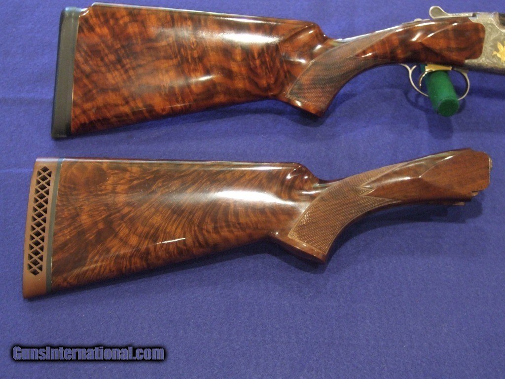 Description: Browning Citori Grade 6 three barrel set with Browning hard case. Gauges 20, 28 and 410. All three sets of barrels are 28 inches in length and fixed skeet chokes. There are two butt stocks. The original factory stock and a custom stock with slight Monte Carlo and palm swell in the grip. Both stocks are at 14-1/2" LOP. Allow extra for shipping. SOLD Shotgun Gauge: 20 Gauge, 28 Gauge, .410 Gauge Manufacturer: Browning Model: Citori Grade VI Skeet Barrel Length: 28 Condition: 98% Metal Condition: 98% Wood Condition: 98% LOP: 14-1/2 |