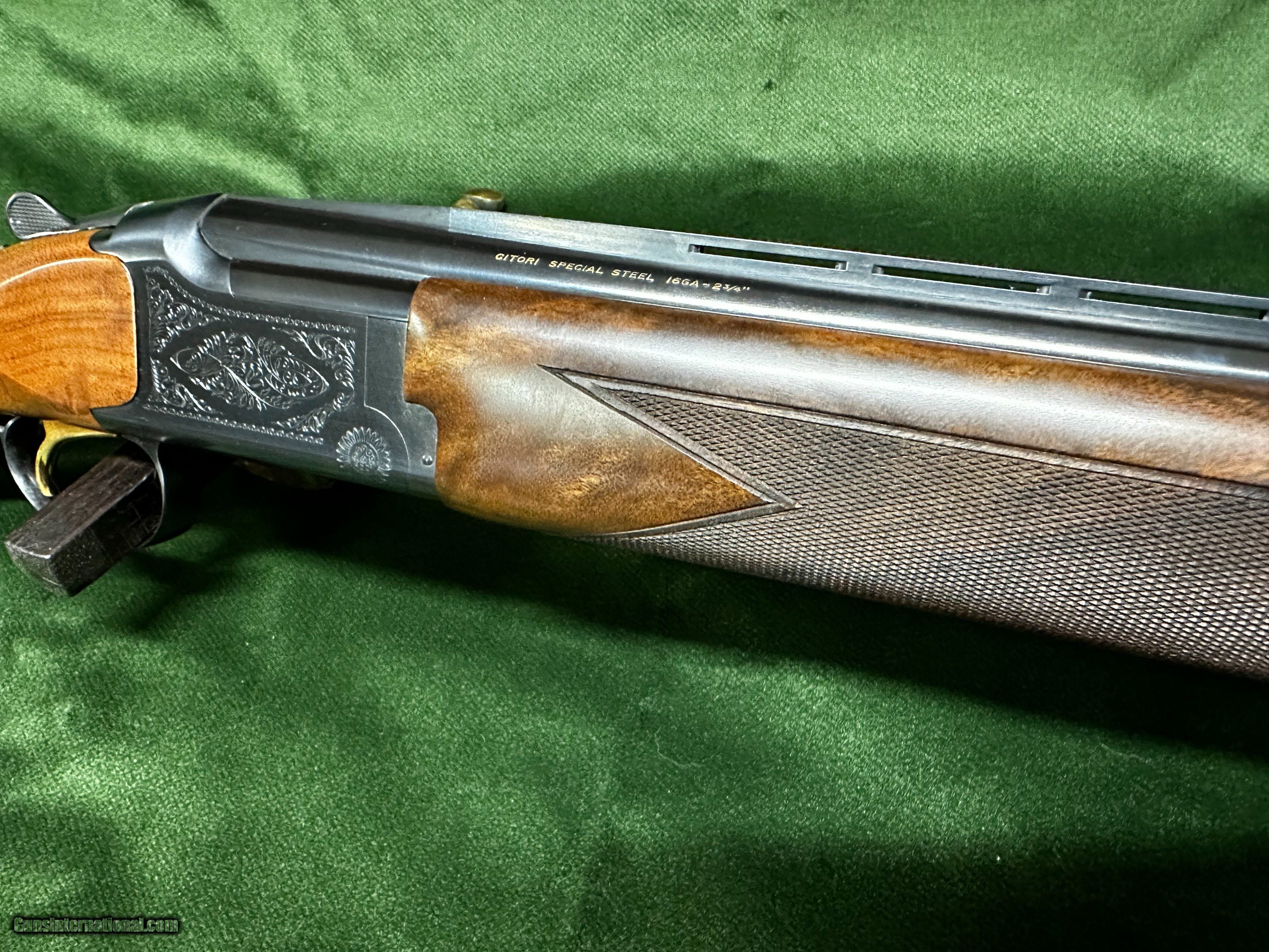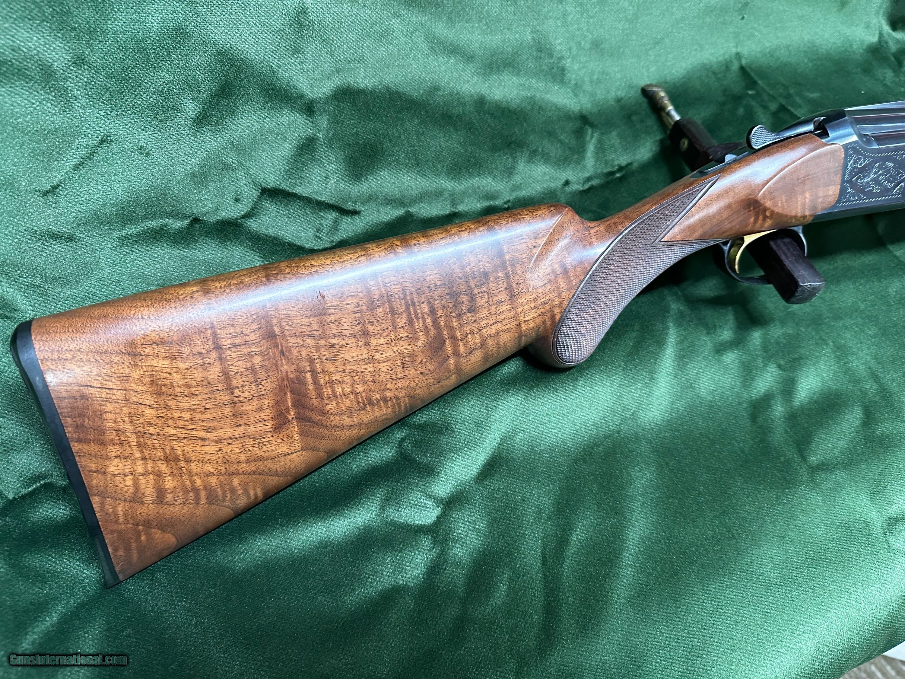 Description: SHOT SHow special from 2018. Browning is not making this style anymore. 16 gauge 2 3/4 chamber. 26 inch barrels. Grade V/VI satin finish walnut to a Browning HRB. Sharp checkering. Round knob. High polish blued barrel. High relief engraved reciever. Silver front metal bead. Used, but extremely nice. All original choke tubes and a new Browning Invector Skeet Choke. Original box and paperwork. See photos. My scale puts it at 6 Lbs, 14.2 oz. Serial number puts DOM as 2017. Any questions feel free to e-mail or call 607-351-0859 . Shipping is to the lower 48, more pictures can be had on request . Ask any questions you have. Thanks, Matt Barkee PAYMENT: Certified funds are preferred. If you send a personal check for payment I will wait until it clears. NO CREDIT CARD payments. SHIPPING: Buyer pays actual shipping. I'm an FFL Dealer. Will ship to your FFL Dealer. Gun will be wrapped and shipped in original box with a outer box shell. SOLD Shotgun Gauge: 16 Gauge Manufacturer: Browning Model: Citori Serial Number: 22034ZR131 Barrel Length: 26 Bore: 16 Chambers: 2 3/4 Ejectors: YES Condition: Excellent Metal Condition: Excellent Wood Condition: Excellent Bore Condition: Excellent Barrels: 26 Action: O/U Triggers: Single Stock: Grade V/VI Walnut Stock Dimensions: Factory Weight: 6 LB 14.2 OZ Manufacture Date: 2017 Item Location: 14847 |
