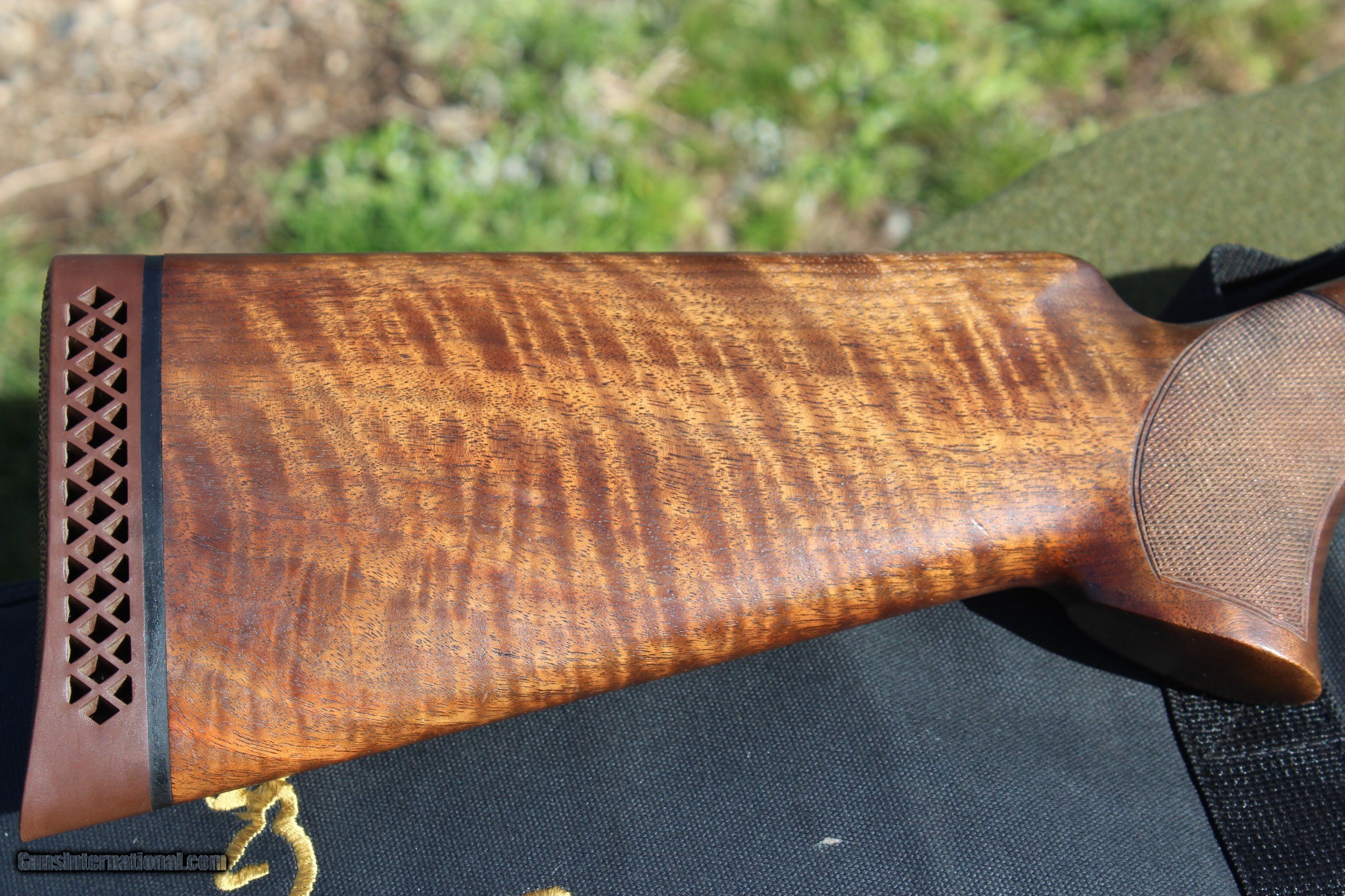 Description: 26 " barrells with factory choke tubes plus 2nd set ( 9 chokes in all) 99 % + factory bluing 98 % wood finish ( just two small nicks) 14 1/4 " LOP over factory pad Drop at heel 2 3/8" drop at comb 1 5/8 " Like new condition ...barrels still tight in opening arc indicating minimal shooting Excellent value in a tough shooting gun $ 1549 + shipping SOLD |