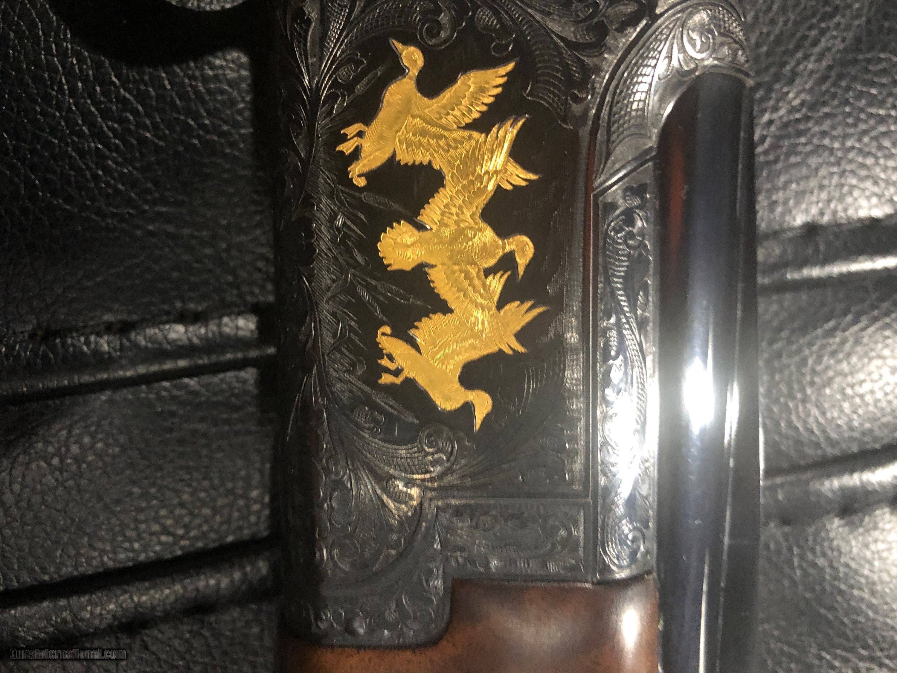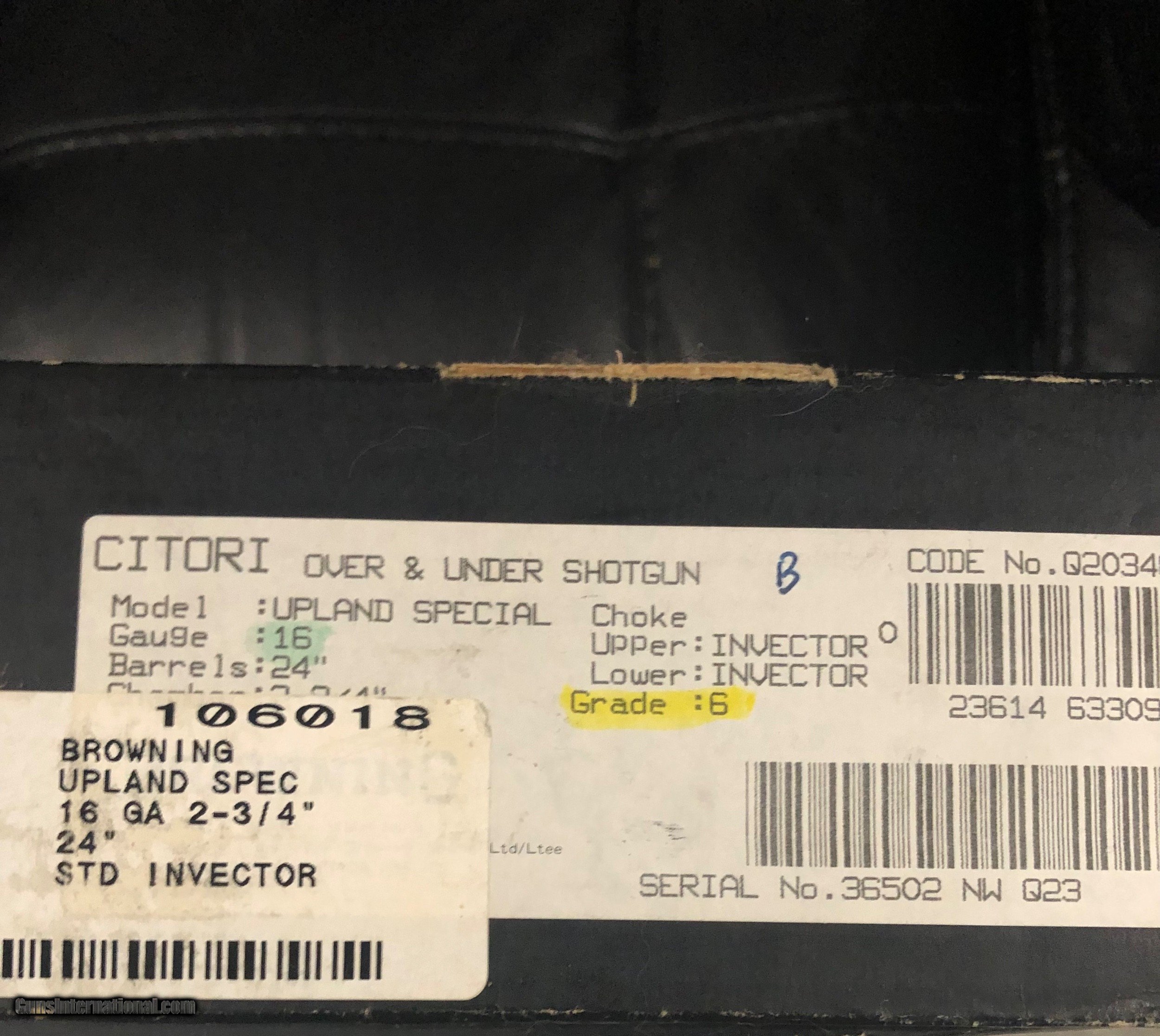 Description: Grade 6 Browning Citori Upland Special 16 gauge. Professionally installed buttpad, 24 inch barrels, includes original box, missing one choke. Gun was produced in 1994, truly a showstopper. SOLD Shotgun Gauge: 16 Gauge Manufacturer: Browning Model: Citori Grade 6 Bore: 99 Chambers: 2 3/4 Ejectors: Yes Condition: 99 Metal Condition: 99 Wood Condition: 99 Bore Condition: 99 Action: Break Triggers: Single selective Stock: English Grade 6 Stock Dimensions: Factory Stock Drop: Factory Stock Comb: Factory Stock Heel: Factory Stock Cast: Neutral Butt Pad: Kick EEZ LOP: Factory 14/14 Finish: Grade Six Weight: 6 pounds 10 ounces Sights: Bead Manufacture Date: 1994 Chokes: Std Invector Engraving: Deep relief Grade 6 |