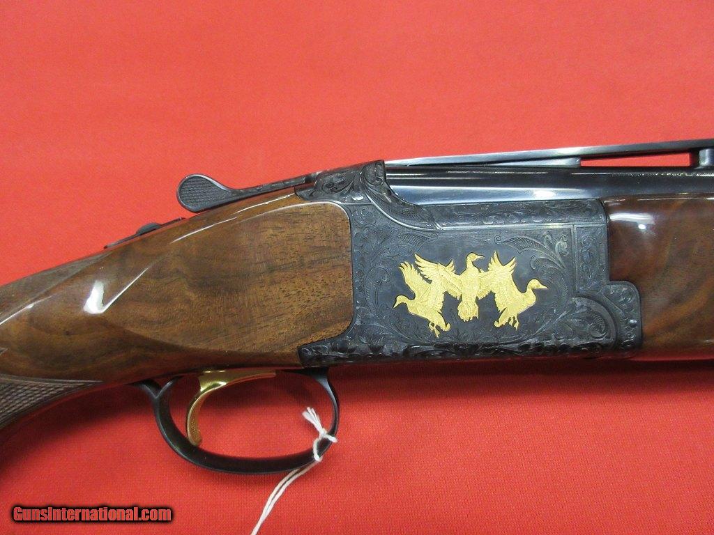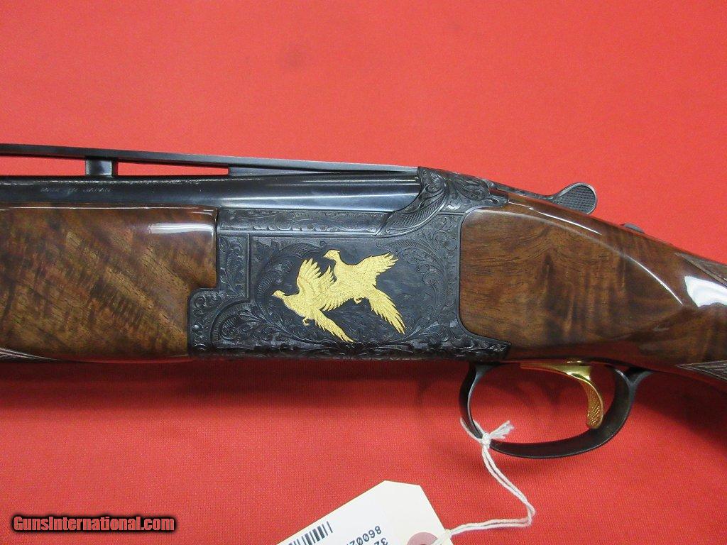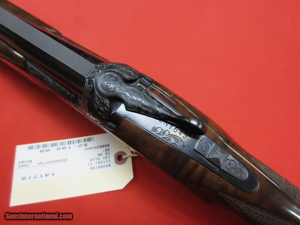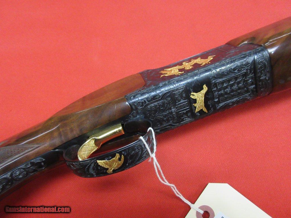 Description: Browning Grade VI Trap 12ga/32" INV+ -- Gun remains in excellent condition and appears unfired; blue frame with gold birds on the side panels, highly figured monte carlo stock and forend with high gloss finish, factory porting, Invector Plus chokes and factory box. This is a lot of gun for the money and it's priced to move. SOLD |