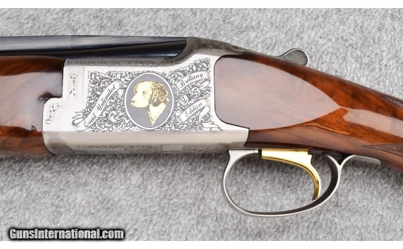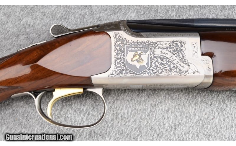 Description: This Browning Quail Unlimited Gun Dog Series "Brittany Edition" is #69 of 100 and was manufactured in Japan. This shotgun remains in excellent overall condition showing only light use. Wood is solid with a high gloss finish and has a couple very small marks on right front forend. Barrel blue and bores are excellent. This is an Ejector gun complete with original case, two extra choke tubes (4 Total) and choke wrench. Absolutely beautiful. .410 Bore SOLD Chambers: 3 Metal Condition: Excellent Wood Condition: Excellent Bore Condition: Excellent Barrels: 26" Vent Rib Triggers: Single - Selective Safety Stock Dimensions: 14 1/4" LOP Fore End: Checkered Walnut Round Knob - Checkered Walnut Forend Butt Pad: Browning Black Plastic Butt Plate Weight: 7lb Sights: Single Front Bead Chokes: Screw-In Choke Tubes - Improved Cylinder/ Modified / Skeet / Skeet Item Location: Wheeling |