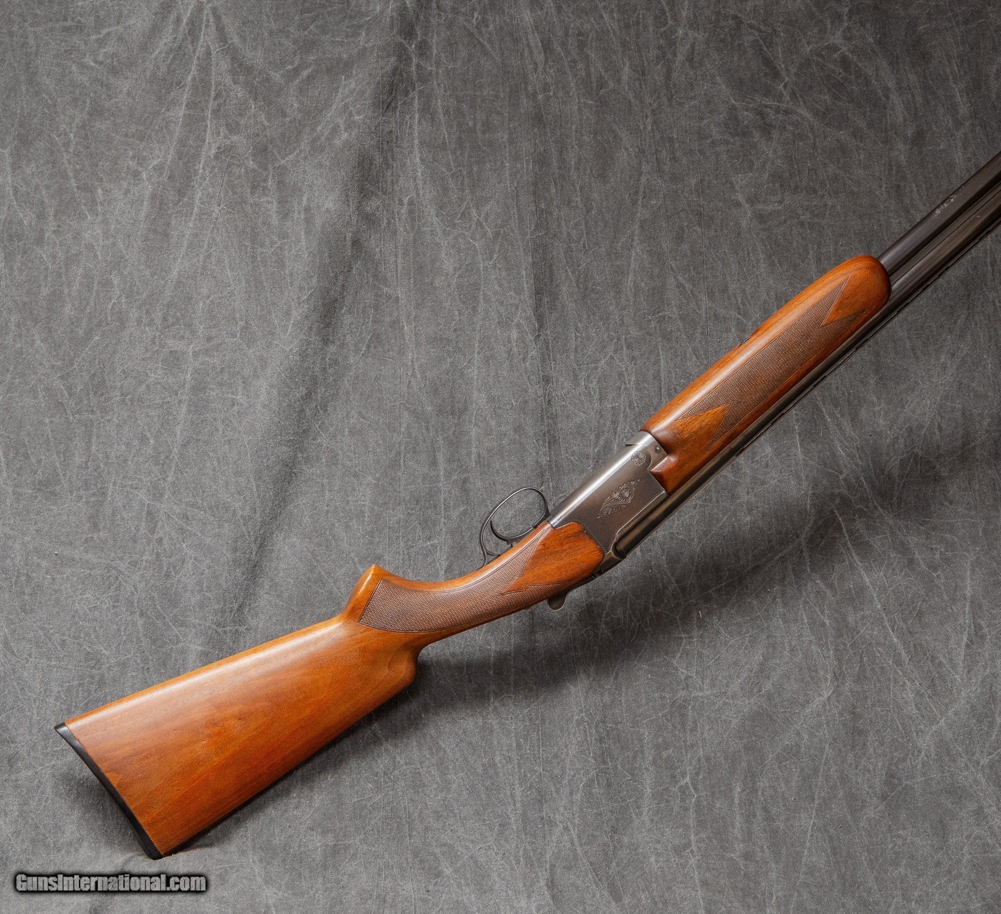 Description: Specifications Maker: BROWNING Model: LIEGE Gauge/Caliber: 12 GA Barrel Length: 26" Chambers: 2 3/4" Rib Design: VENTILATED Weight: 7lbs. 5ozs. Bore/Chokes Right/Bottom: .725/.005/SKEET (MARKED **) Left/Top: .725/.005/SKEET (MARKED **-) Stock Dimensions Drop At Comb: 1 1/2" Drop At Face: 1 7/8" 4 1/2" Drop At Heel: 2 1/2" Cast At Face: 1/16" OFF 41/2" Cast At Heel: 1/8" OFF Length Of Pull: 14 1/4" Pitch: 2 1/2" 5 DEGREES Special Features: BLUED, BOX LOCK RECEIVER W/30 % BLUE REMAINING SINGLE SELECTIVE TRIGGER EJECTORS MANUAL SAFETY PISTOL GRIP STOCK & FIELD STYLE FOREARM MAKERS ORIGINAL BOX MADE IN BELGIUM CONDITION: GOOD Circa: 1973/SERIAL # 73J05386 Number: C9883 Price: $1,195.00 Contact Seller |