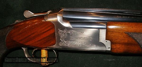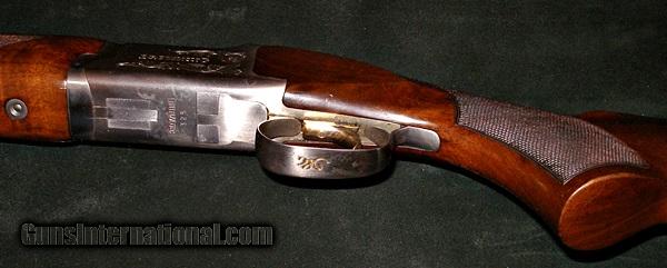 Description: BROWNING MODEL 325 12GA SHOTGUN, O/U, ENGLISH PROOFS, SCROLL ON COIN FINISHED ACTION, 32" BBLS, 2 3/4, MULTI INVECTOR CHOKES, VENT RIB, EJECTORS, SST, NICELY FIGURED WALNUT, PISTOL/SCHNABLE, LOP 14 5/8, 1 7/16, 2 3/16, 7LBS 12OZ, 98% BLUE, ACTION TIGHT, FEW LIGHT HANDLING MARKS IN STOCK. SOLD Manufacturer: BROWNING Model: B 325 Bore: 12GA Chambers: 2 3/4 Ejectors: YES Condition: 98% Metal Condition: 98% Wood Condition: 98% Bore Condition: 98% Barrels: 32 Action: COIN FINISHED WITH SCROLL Triggers: SST Gauge Info: 12GA Stock Comb: 1 7/16 Stock Heel: 2 3/16 Fore End: PISTOL/SCHNABLE LOP: 14 5/8 Rib: VENT Weight: 7LBS 12OZ Engraving: SCROLL |