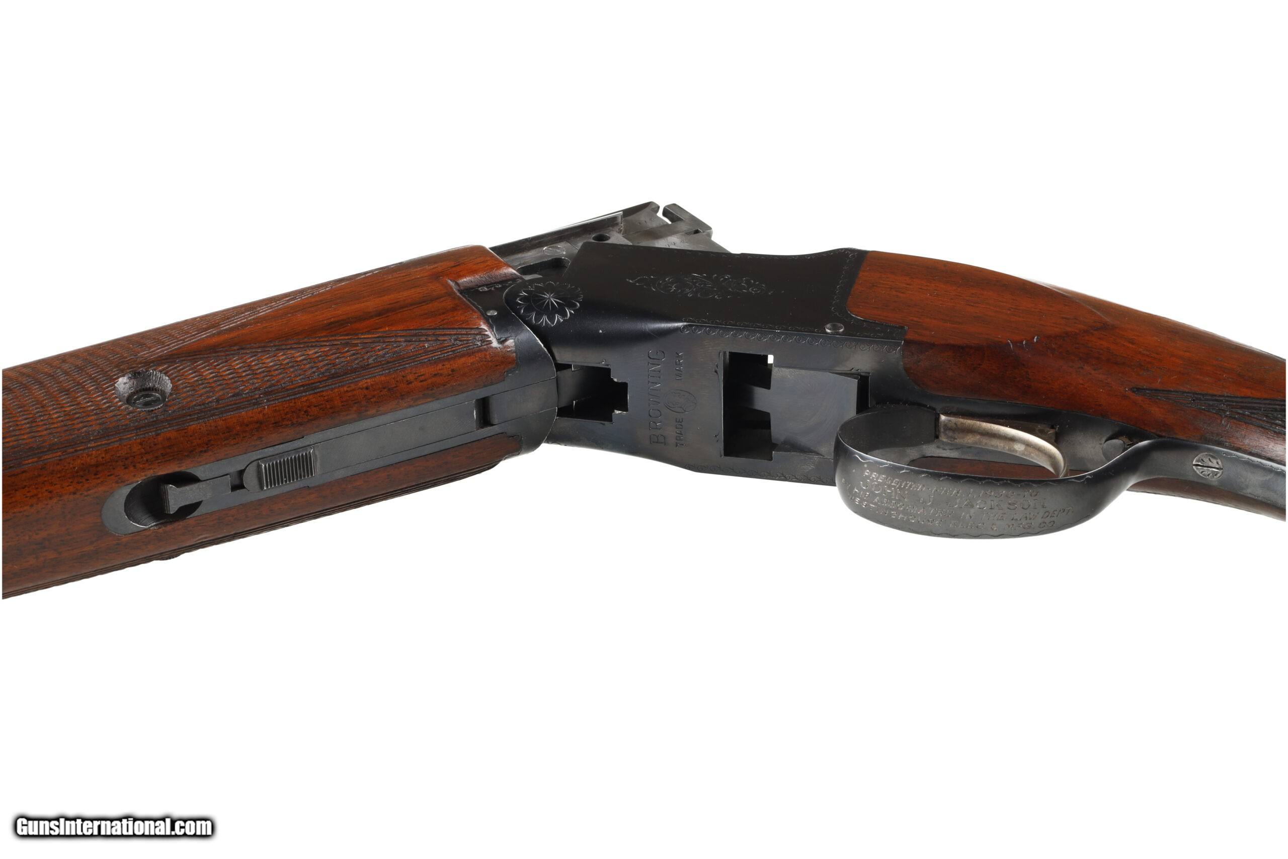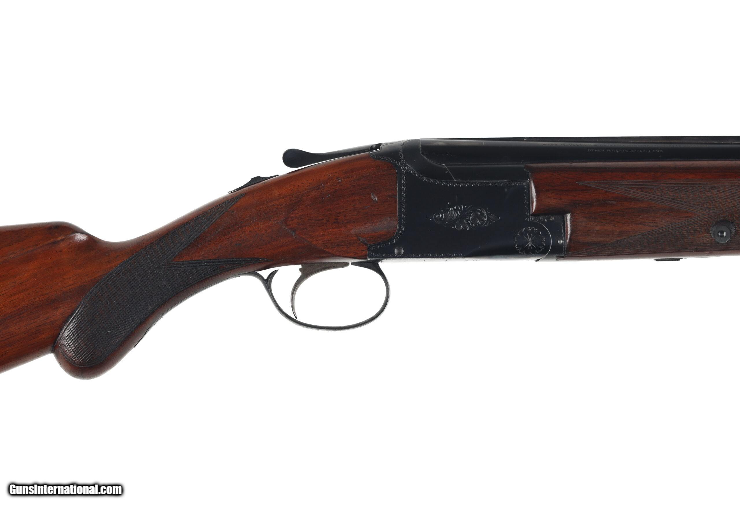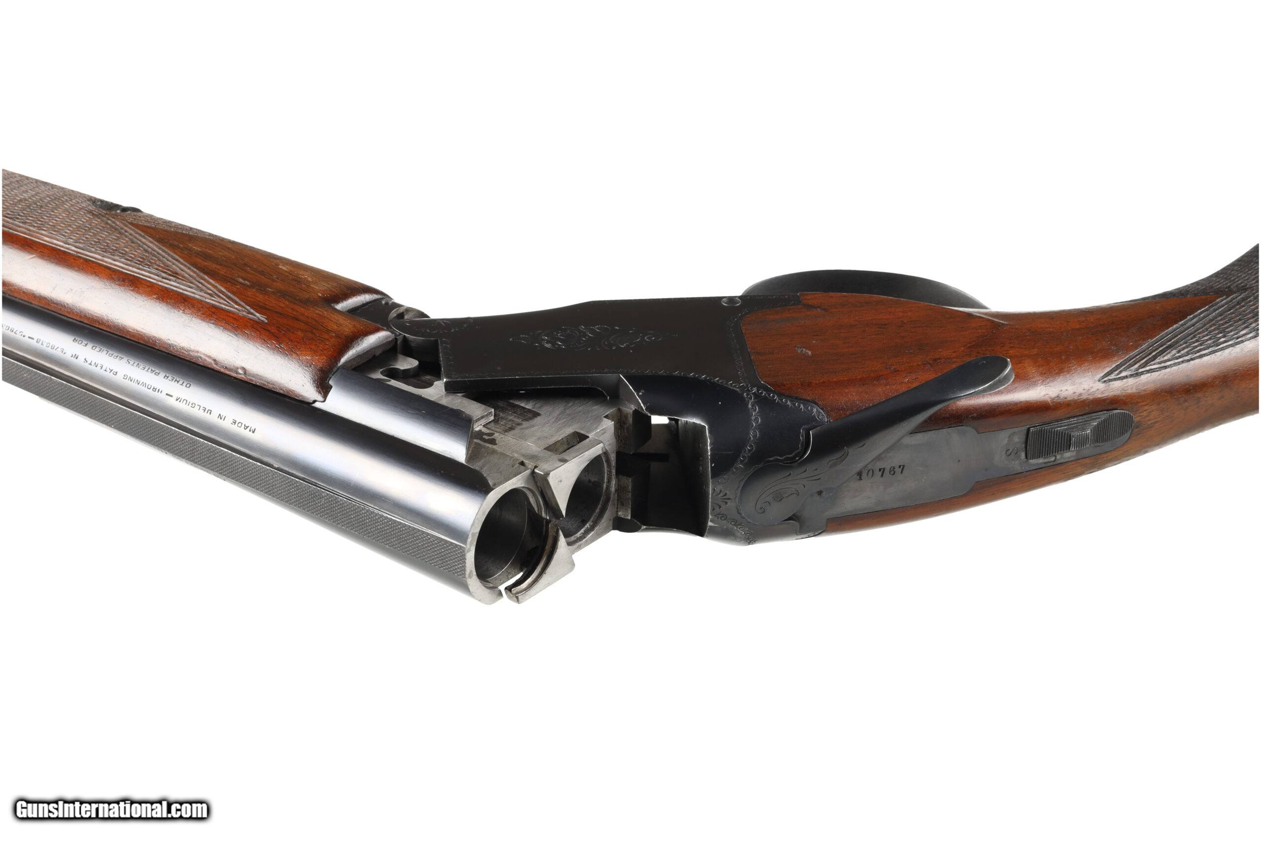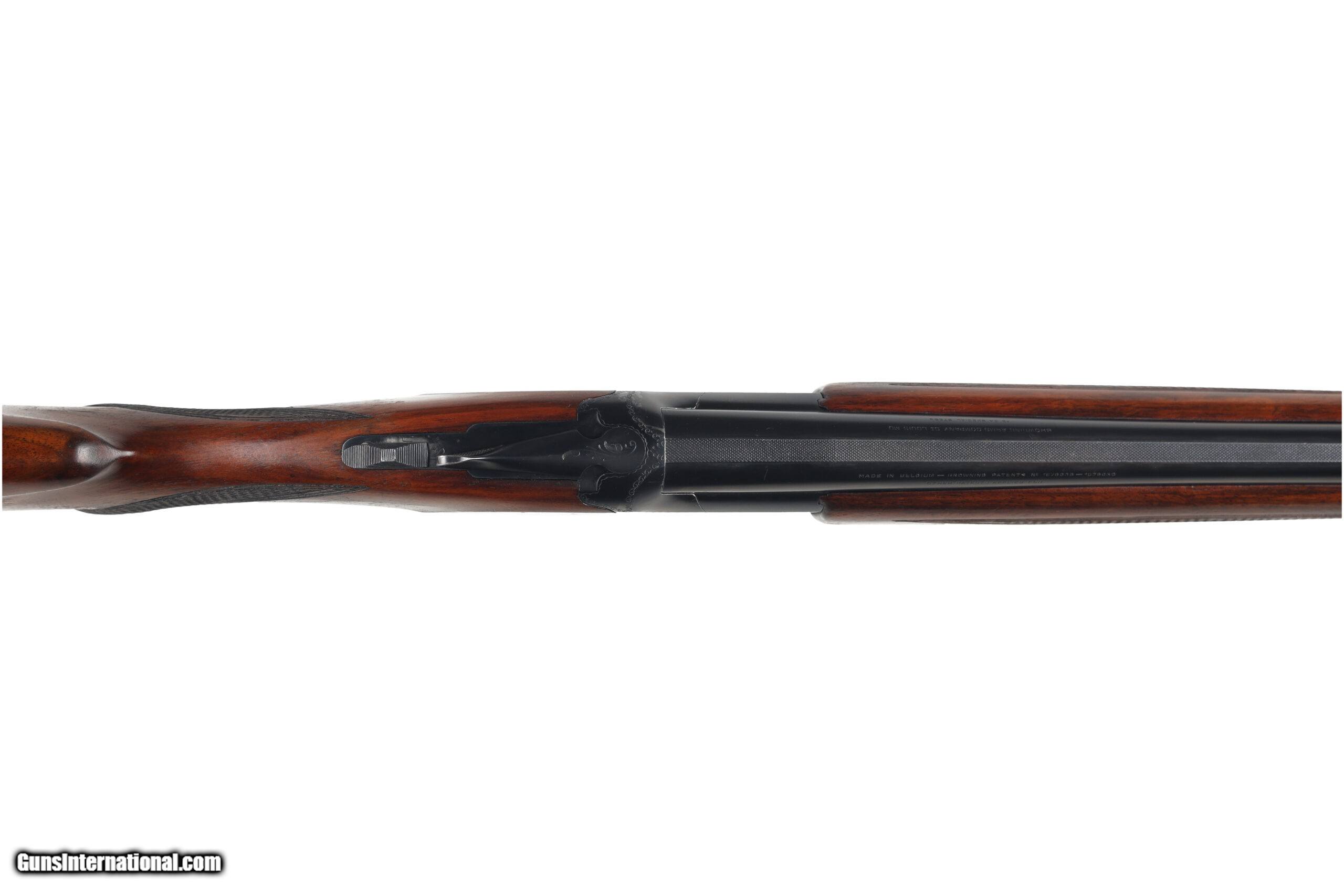The Browning Superposed was the last firearm designed by John Moses Browning, which was finalized by his son Val Allen Browning for production to start in 1931. This example, made before WW2, is in good overall condition, with moderate wear and a few areas of superficial corrosion found on the barrel and receiver. The stocks show signs of refinishing and may have been bent for cast. Manufactured in: Belgium Hand: Right Hand Action Finish: Blue Metal Finish: Original Barrel Length: 26" Barrel Condition: Good Stock Finish: Refinished Stock Condition: Good Type of Butt: Leather Covered Pad Pad Thickness: 1 1/4" Grip: Round Knob Pistol Grip Forend: Checkered