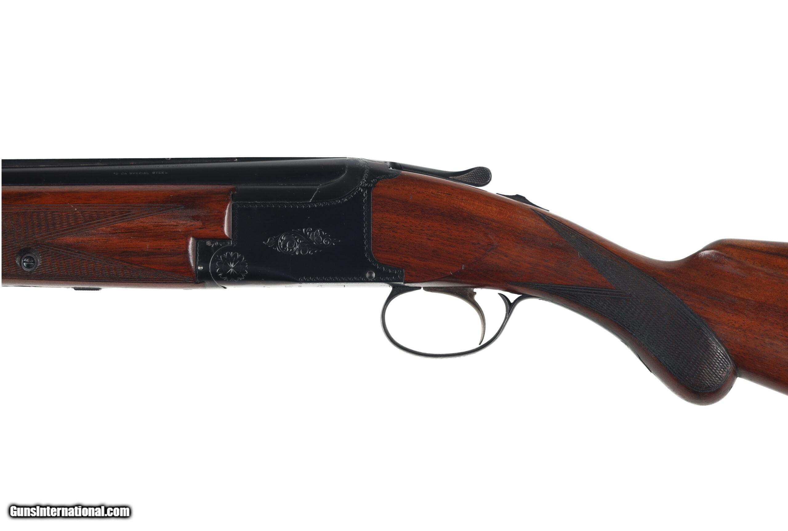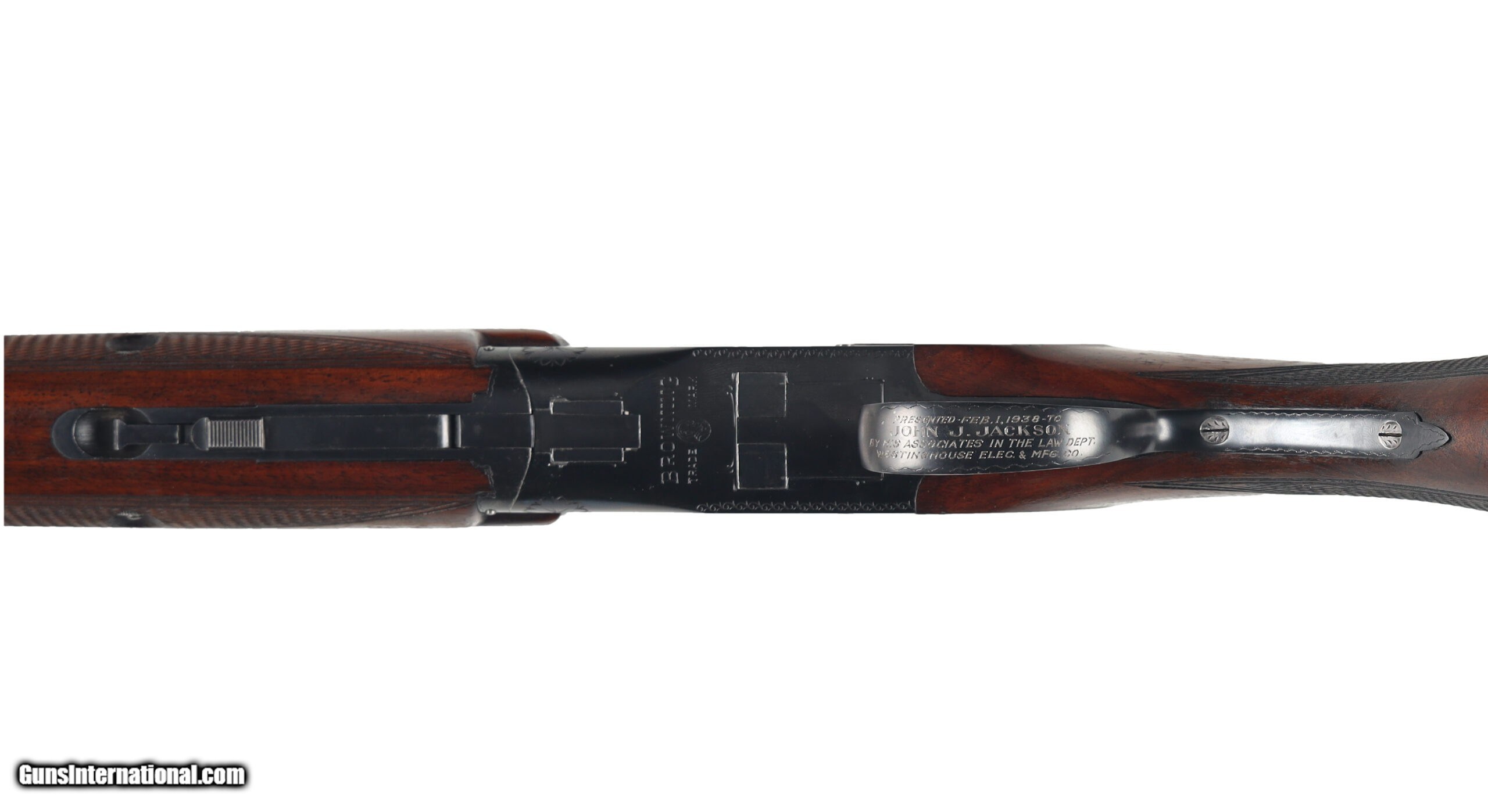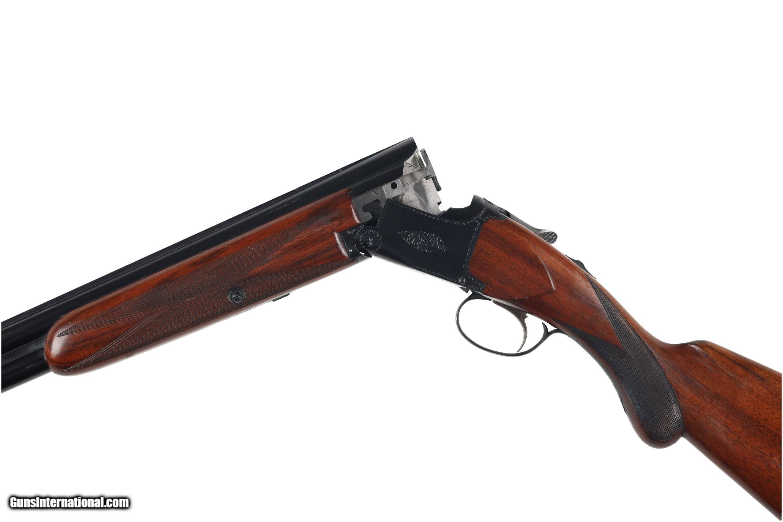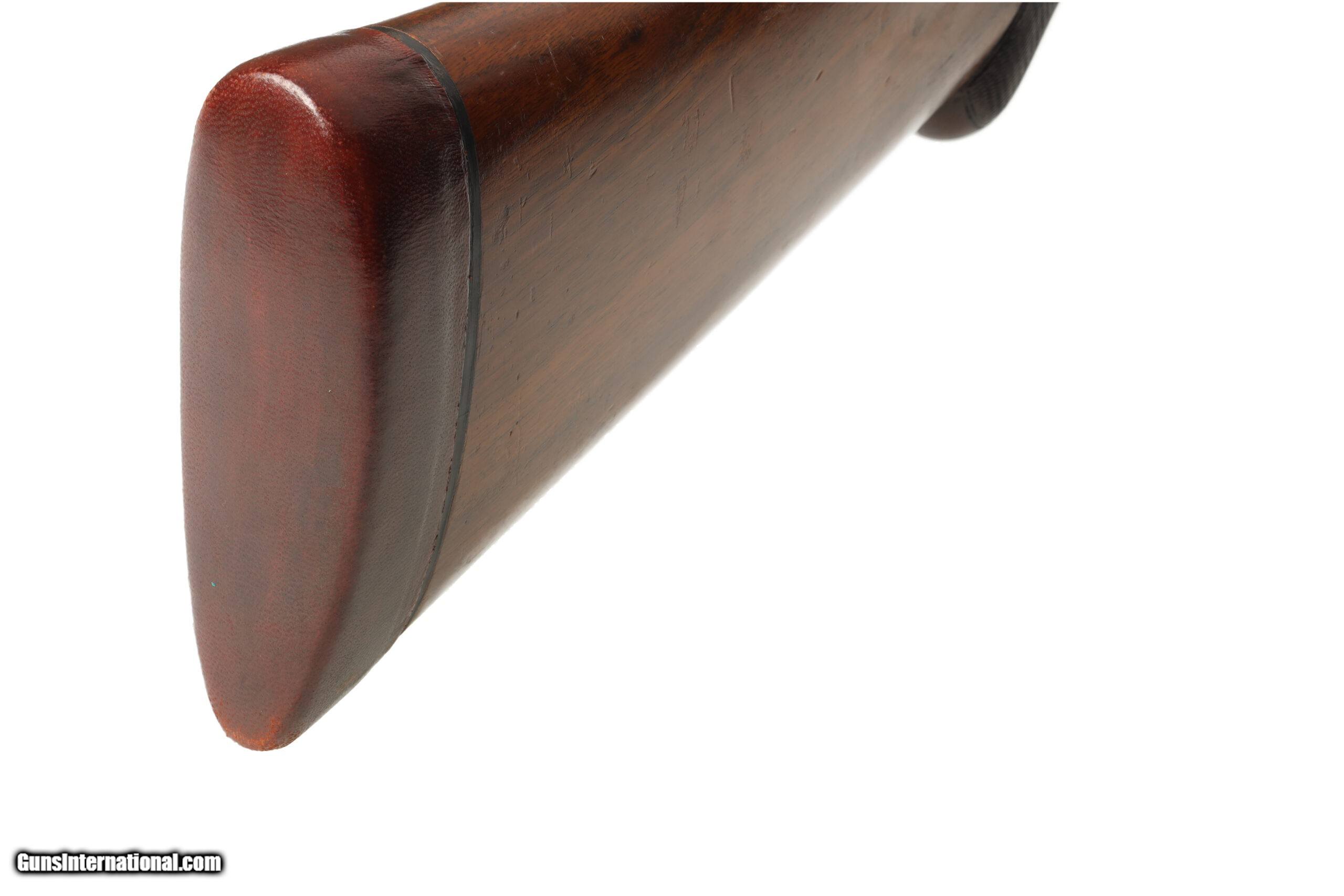 The Browning Superposed was the last firearm designed by John Moses Browning, which was finalized by his son Val Allen Browning for production to start in 1931. This example, made before WW2, is in good overall condition, with moderate wear and a few areas of superficial corrosion found on the barrel and receiver. The stocks show signs of refinishing and may have been bent for cast. Manufactured in: Belgium Hand: Right Hand Action Finish: Blue Metal Finish: Original Barrel Length: 26" Barrel Condition: Good Stock Finish: Refinished Stock Condition: Good Type of Butt: Leather Covered Pad Pad Thickness: 1 1/4" Grip: Round Knob Pistol Grip Forend: Checkered