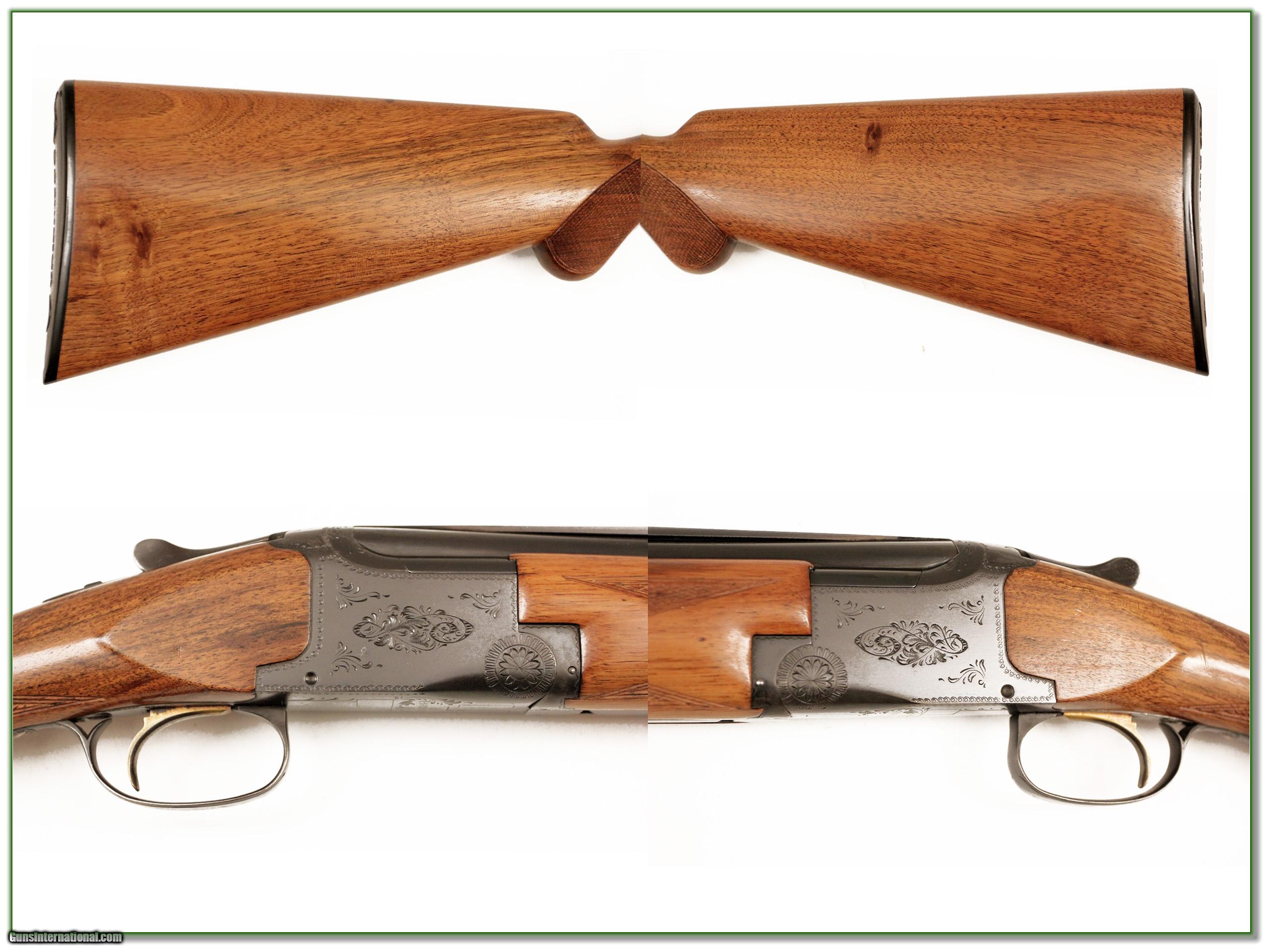 Description: Collectors, shooters and hunters, this is an excellent condition and early 1954 Belgium made Browning Superposed 20 gauge. It has 26in barrels choked Mod and IC and a VR. Original finished with beautiful rust blue and wood have only a couple insignificant handing marks. Horn butt plate is worm hole free. This will make a classic field gun and they don’t make them like this anymore! It is a Shooting Investment. Shipping and insurance is $45 and only $15 more if you want it shipped in a new Plano hard case. (I now consign quality firearms only 10%! Let me know if you have any you would like to sell!) [15-1477] Payment: Payment is by Money Order, Cashiers Check or Personal Check. I can now also accept MasterCard and Visa with a 3% convenience fee. PayPal can be used for some items but never firearms. Please let us know if you would like to pay via PayPal. Shipping: The shipping charge will be listed in each description. It is $35 for most guns. Some heavy guns or those insured for over $2000 will be higher. Shipments to Alaska and Hawaii are higher because air shipment is required. Most firearms are shipped within 5 days of receipt of payment. We prefer shipping at the beginning of the week to avoid firearms in transit over weekends. We package all shipments carefully and insure them for the full purchase price, rounded up to the next $100. In the unlikely event that damage occurs, it is important that you save all packaging material for the claims process. Optics are shipped Priority Mail and most other non-firearm shipments are shipped First Class. Returns: Our return policy is simple. If for any reason you are not pleased with your purchase, you may return your item for a refund. The only exception is ammunition, it cannot be returned. It is important to us that you are happy. Guns cannot be fired or dissembled before returning them and must be returned in the same condition as received. Notification of a return must occur with-in 3 days of receipt at your dealer. Shipping, convenience and dealer fees are not refundable and are the responsibility of the buyer. Lay-a-way: If needed, we offer a 60 day lay-a-way option on most firearms. It is 1/3 now, 1/3 in 30 days and 1/3 in 60 days. Lay-a-way firearm sales are final. Consigning your firearms with Shooting Investments: We will help you get top dollar for your firearms. While most local guns shops charge 20% or more, our fee is only 10% with a minimum of $50. At your local gun shop it might take months to sell. Selling on-line provides instant access to thousands of interested buyers. You won’t find any other on-line dealer willing to sell your firearms for only 10% or listing every gun on 4 separate s. Selling through an House typically costs the seller 15% and the buyer an addition 15% (so 30%) and you have to wait several months to sell and longer to receive funds. If properly priced, we will sell your firearms in a week or two. Send us an email or give us a call and we’ll explain how easy it is for you to get top dollar. Trading: We collect guns and usually just trade for guns we want to add to our collections. We often sell guns for others wanting to purchase one of ours. We find this the most fair to both of us. Our Commission is only 10% and we hold the gun you want until yours sells. Please contact us if you want to sell one of yours to buy one of ours. Help for California Buyers: We are happy to ship to California. It is the buyer’s responsibility to make sure any item you buy is legal in your state. We are also happy to help with your purchase of a firearm from someone other than us. If you see a gun you would like to buy but the seller can’t or won’t ship to California we can help. You buy the gun and have it shipped to us. We’ll then ship it to your California dealer. The cost for this service is only $30 + shipping. Let me know if we can help! SOLD |