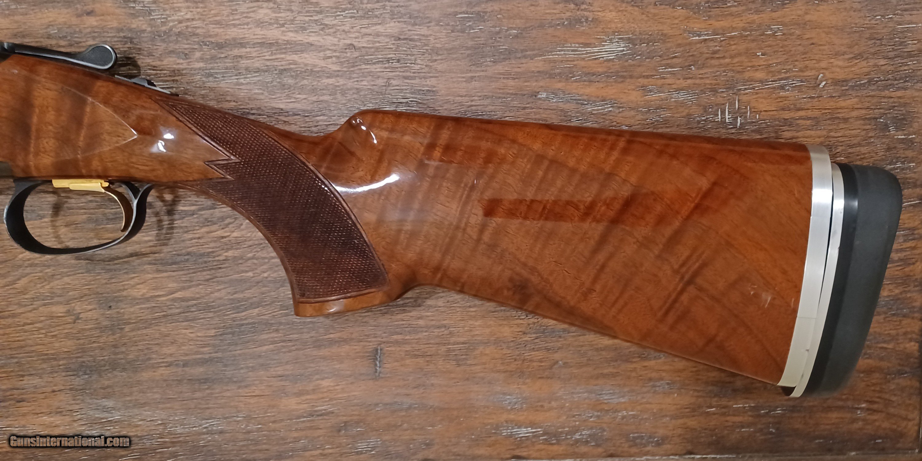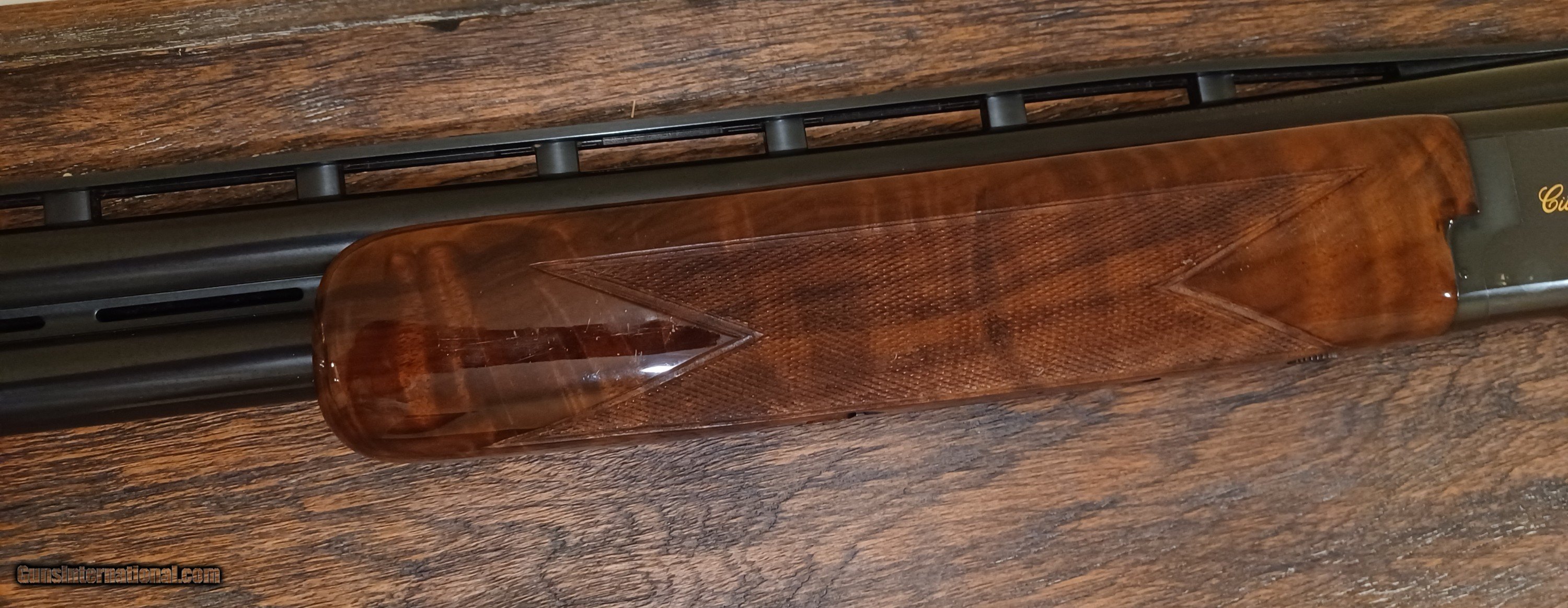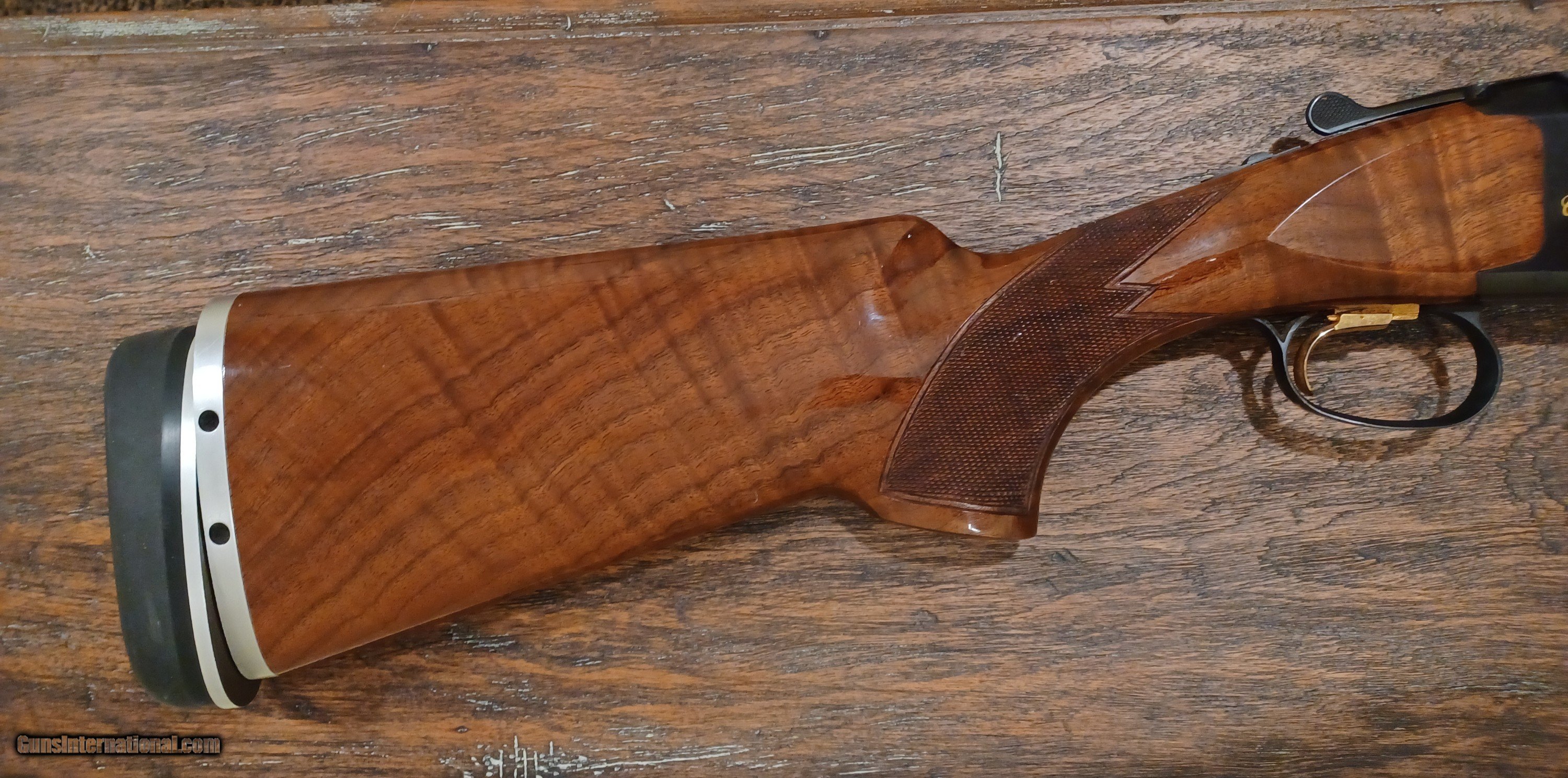 Description: One of a Kind...Browning Crossover Target with factory upgraded 5/6 wood, an $1100 cost. Graco adjustable butt plate, in-out-up-down and around adjustments with two recoil pads ( modified trap and sporting clays ) a $380 cost. Technical= .742 overbore, chrome lined chamber and barrels, vector length forcing cones, triple adjustable trigger, ivory midbead and HiViz light pipe in front, steel shot okay and mid height vent rib with 60/40 point of impact which is adaptable to all the clay target games and still be adept in the game field. Six browning extended chokes ( cyl, ic, lm, mod, im, f ) which I sent to Briley and had the Spectrum color bands installed so you can easily tell what choke you have w/o glasses. Two flush chokes ( sk1, sk2 ) for skeet along with the two wrenches that fit the chokes, choke tube grease and a 12 ga. Bore Snake for cleaning. If you wanted to take the Graco unit off there are 2 pads that fit directly to the stock. SOLD Shotgun Gauge: 12 Gauge Barrel Length: 30 Chambers: 2 3/4 & 3 Ejectors: yes Condition: as new Triggers: adjustable Butt Pad: adjustable LOP: 14 3/4 - 15 1/2 Chokes: varible |
