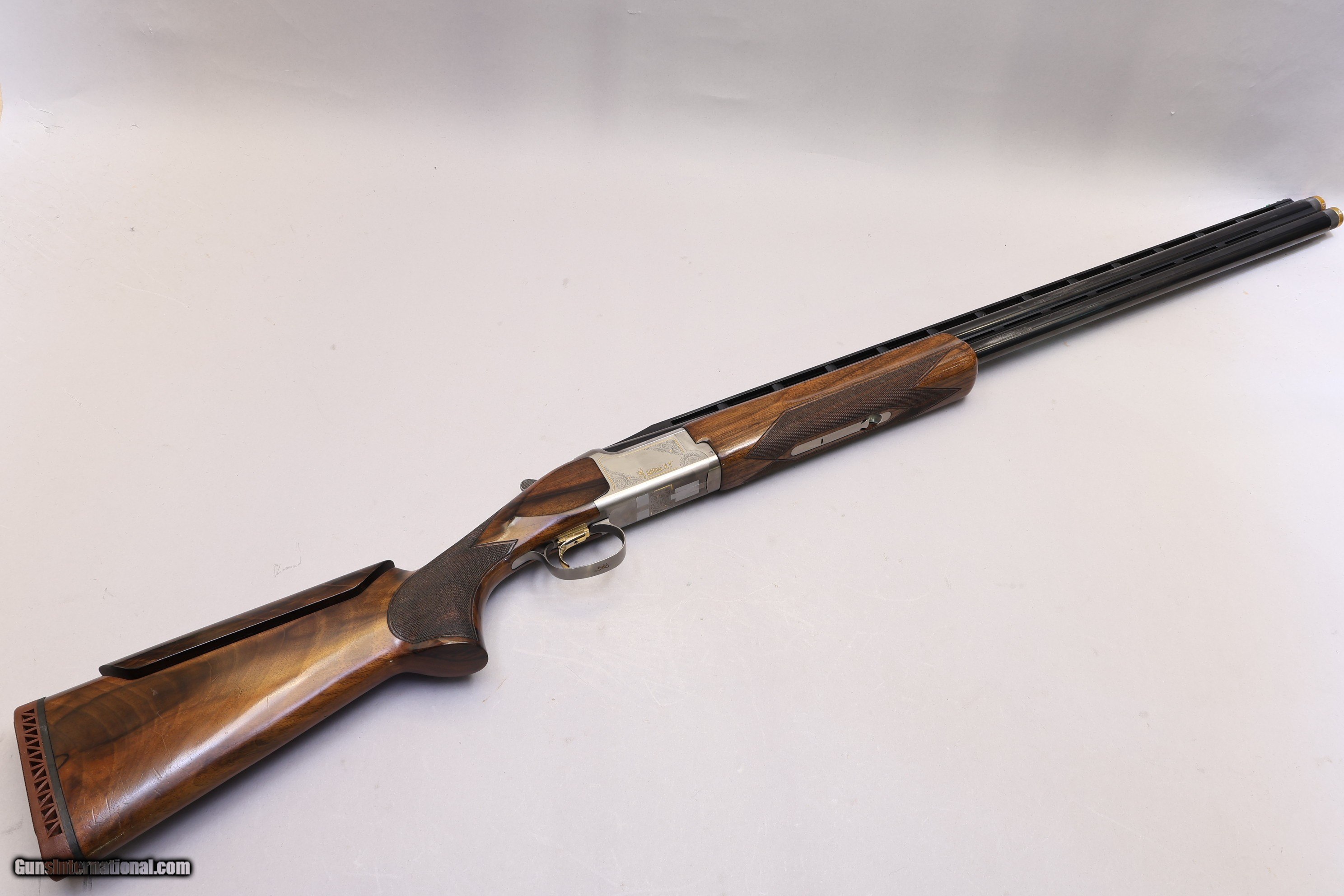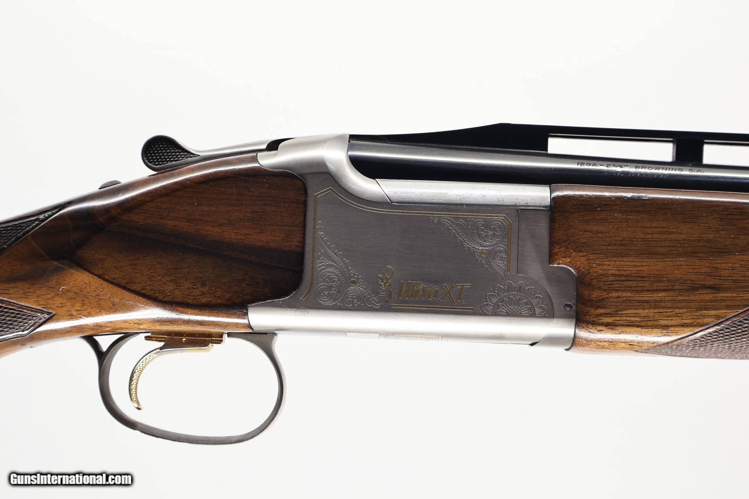 Description: 2 3/4" Chambers | 5 Extended Chokes | High Ventilated Tapered Rib The Browning Ultra XT is a Japanese-made over/under 12 Ga designed for dependable trap performance. It is built with strong mechanical operation, a high ventilated tapered rib, and a walnut stock shaped for stable shooting. This model uses a single trigger, manual safety, and an over/under action suited for sporting use. This shotgun features an adjustable comb and a floating rib, allowing a personalised fit. It shows normal handling wear with scuff marks on the wood and about 70% of bluing on the barrels, yet the top lever still sits to the right and the bores are bright. Lockup and ejectors remain crisp, and it includes five extended choke tubes along with accessories such as a choke tool, two spare triggers, spare sight beads, and a trigger lock. The cast is neutral with a slight right lean, and it is finished with a comfortable rubber butt plate.