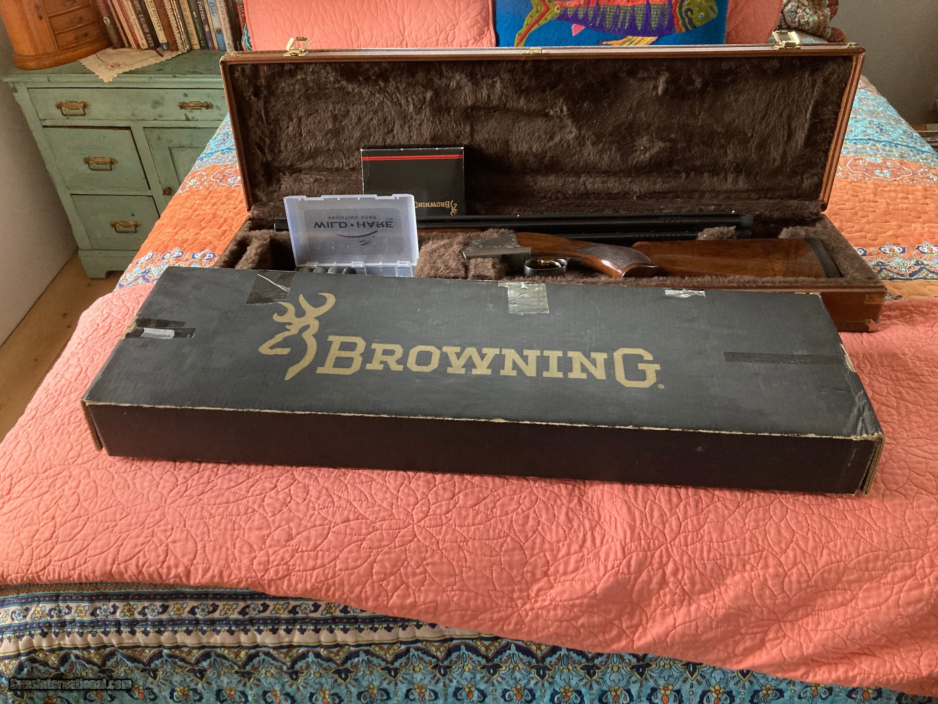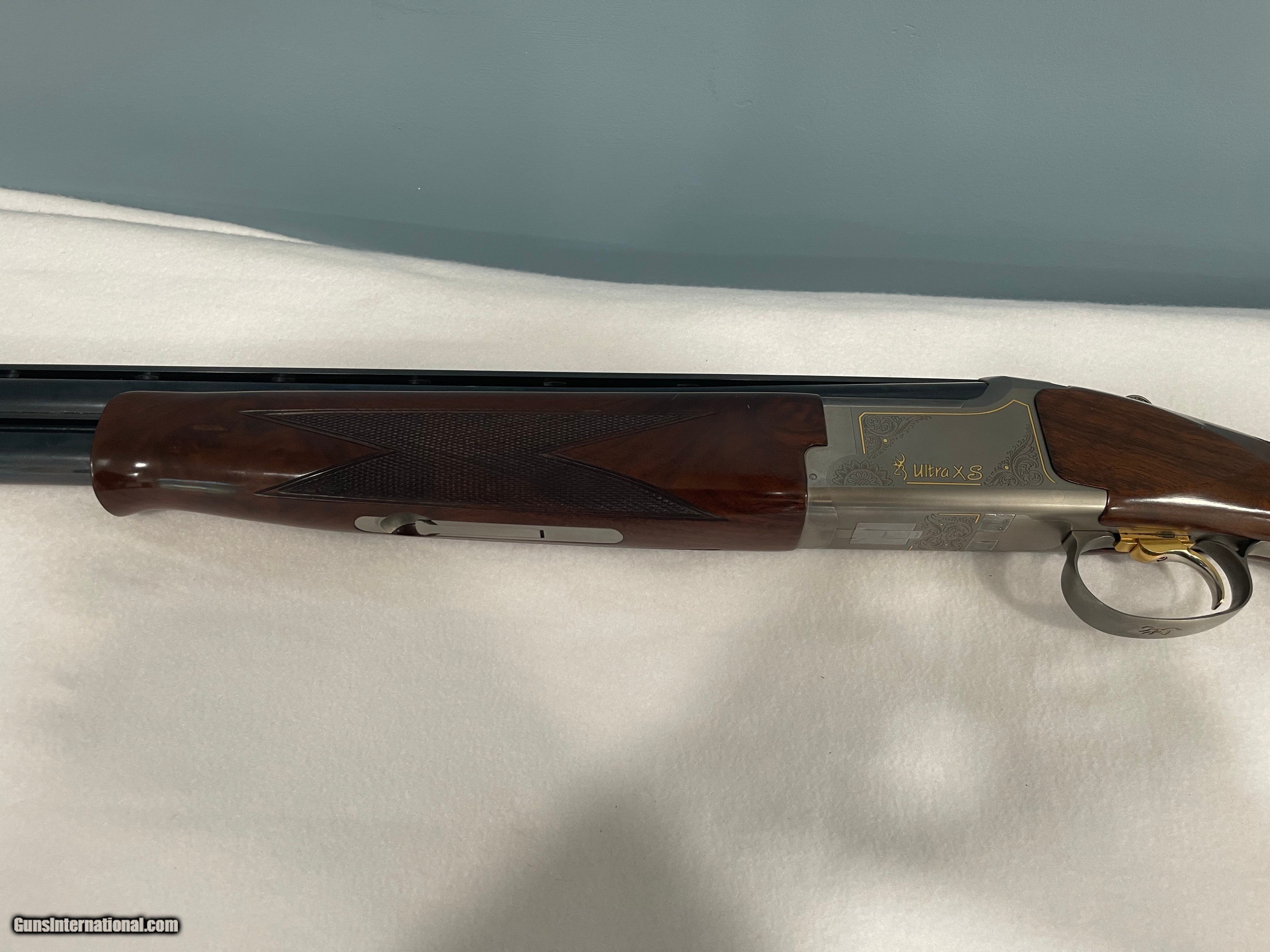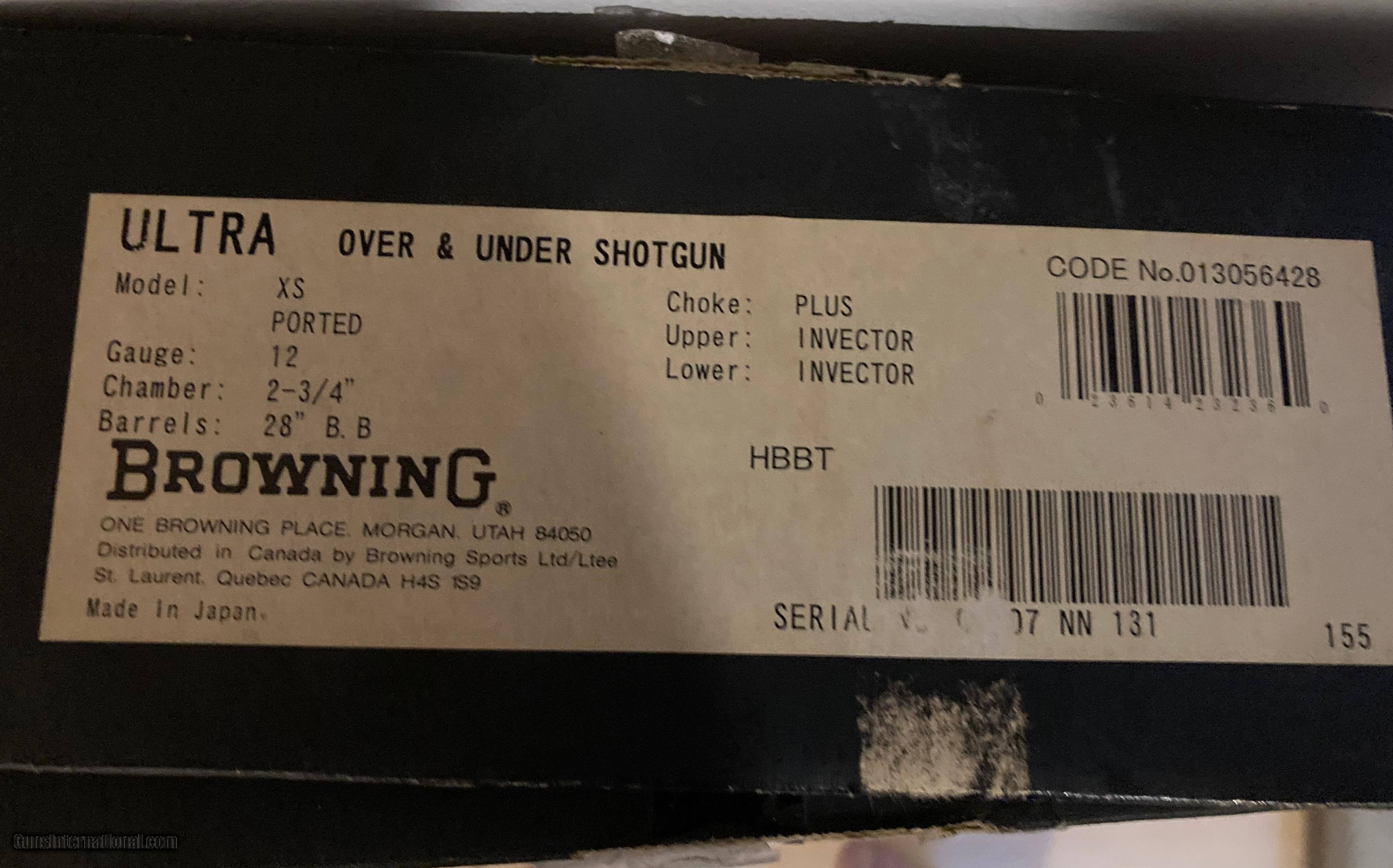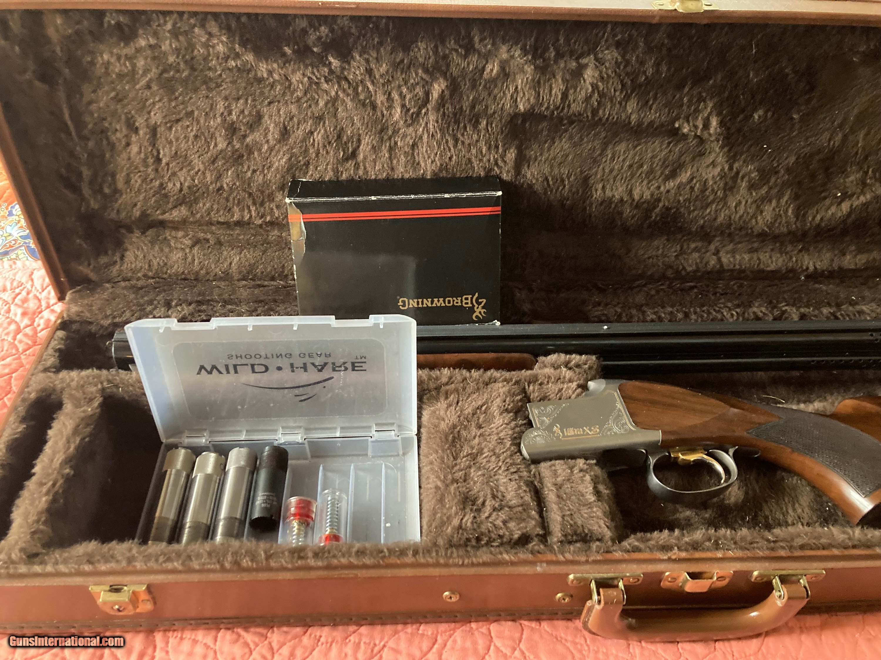 Description: Early 2000's Browning XS over/under 12 guage. Has 28 inch ported barrel and shots 2 3/4 inch shells. Has a fixed bead sight and comes with 5 chokes 1 Modified, 2 Improved cylinder and 2 cylinder. Comes with 3 trigger shoes and a adjustable trigger. Grade 3/4 wood stock. Has original box and paperwork. Minor scratching on places in stock nothing through the clearcoat though. 92-95 percent condition. Comes with Browning leather fitted case Price 1995 More pictures availble upon request SOLD Shotgun Gauge: 12 Gauge Manufacturer: Browning Model: XS Bore: Excellent Chambers: 2 Ejectors: 2 Condition: Excellent Metal Condition: Excellent Wood Condition: Excellent Bore Condition: Excellent Barrels: 2 Barrel Type: blued Action: break open Triggers: 3 Stock: wood Finish: grade 3/4 wood Weight: 9 Sights: fixed bead Chokes: 5 Engraving: yes Item Location: Machiasport |