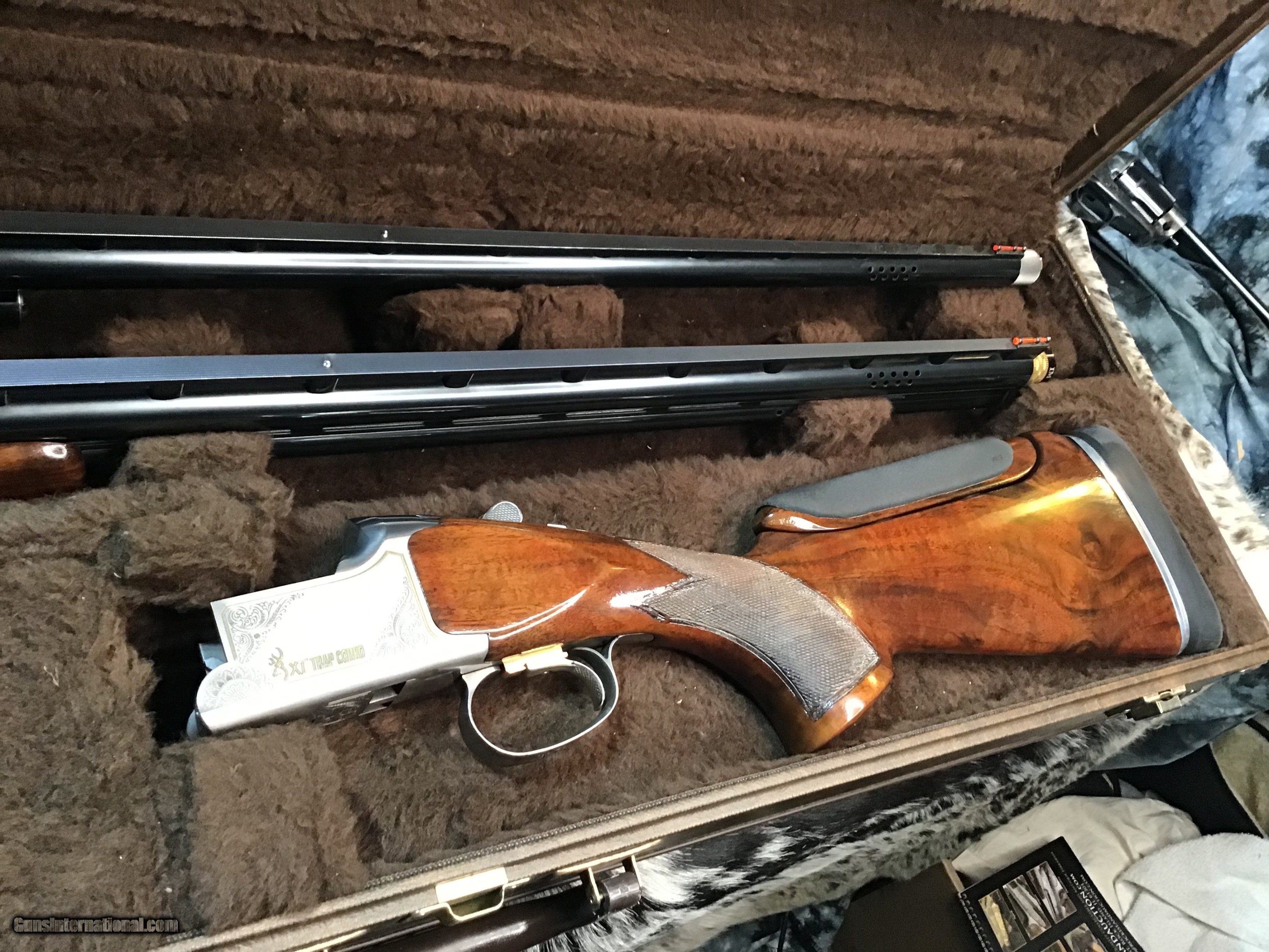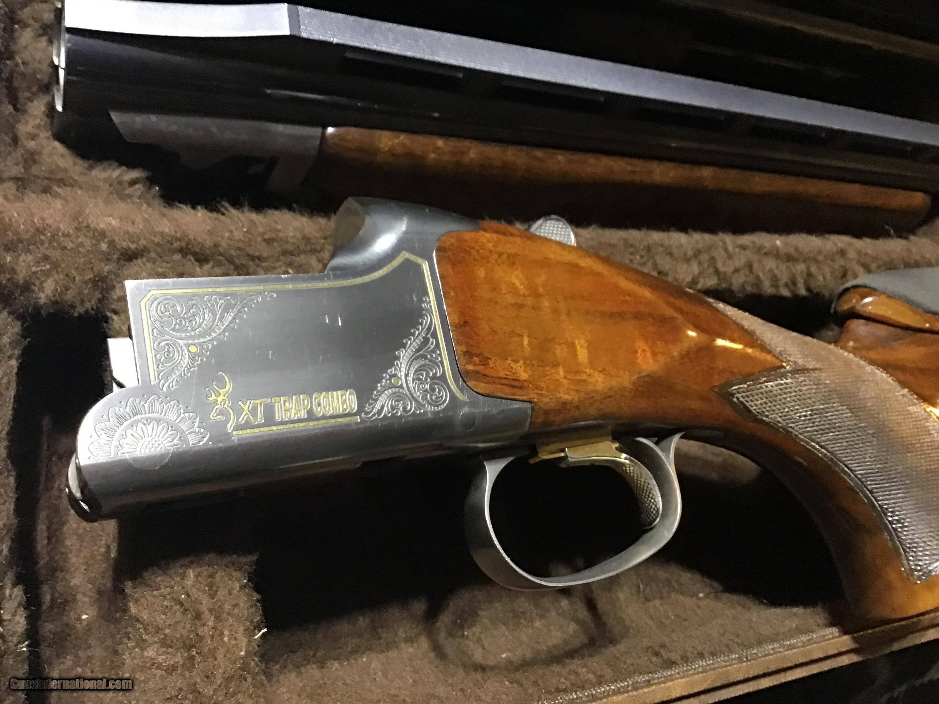 Description: Browning XT Trap Combo O/U Shotgun with 32 inch O/U barrels and 34 inch single barrel, high rib with fiber optic bead and silver mid bead, adjustable comb, adjustable trigger, engraved Reciever with Gold inlay, high grade hand checkered Walnut furniture, Browning hard side travel case for gun with both barrel sets. Excellent used condition, gun remains very tight barrel to receiver fit with no slack, barrel lever remains Rt of center. Barrels excellent with mirror bores. Stock has extra coat of finish, position adjustable buttpad with soft rubber pad. This gun will smoke clays in any format, comes with three Invector Plus extended screw in chokes in padded Browning hardcase. Perfect setup for shooting trap, sporting clays or skeet, or a step up gun for your high school team shooter in the house. Add 3% if paying with credit card. God Bless America from a proud American, and a Viet Nam Vet , thankful for our freedoms.. paid for by the Blood ,Sweat and Tears of our brave men and women in uniform. Ten Below Firearms is a Veteran owned and operated business. We specialize in out of production models of high quality firearms. We love to ship! We ship to all states where legal, just give us a call! Handguns normally ship for $35 and Long guns for $50 and up for extra length long guns. That's 2-3 day USPS Priority shipping, Delivery conformation and with tracking number. Optional Postal insurance is additional $1.75 per $100 and highly recommended. We are OPEN BY APPOINTMENT ONLY FOR IN PERSON VISITS, We trade, sometimes. All payments sent via mail must be received within five days of date of purchase or item will be relisted for sale. Layaway:If needed we offer a 60 day layaway program. Terms, 1/3 of purchase price down, 1/3 due in 30 days, and the final third to include card fees and shipping due at 60 days. Funds are non transferable and non refundable .Layaway is not available on negotiated prices. SOLD Shotgun Gauge: 12 Gauge Manufacturer: Browning Model: XT Trap Serial Number: 04119MX131 Barrel Length: 32 and 34 inch Ejectors: Auto ejectors Condition: Very good Metal Condition: Very good Wood Condition: Very good Bore Condition: Very good Barrel Type: O/U & Single Action: Break action Triggers: Adjustable Stock: Walnut Stock Comb: Adjustable Monte Carlo Stock Cast: Rt Fore End: Beavertail Butt Pad: Adjustable LOP: 13.75 inch Rib: High vented rib Finish: Blued Sights: Twin bead Chokes: Extended screw in Engraving: Factory Case: Browning Item Location: Mn |