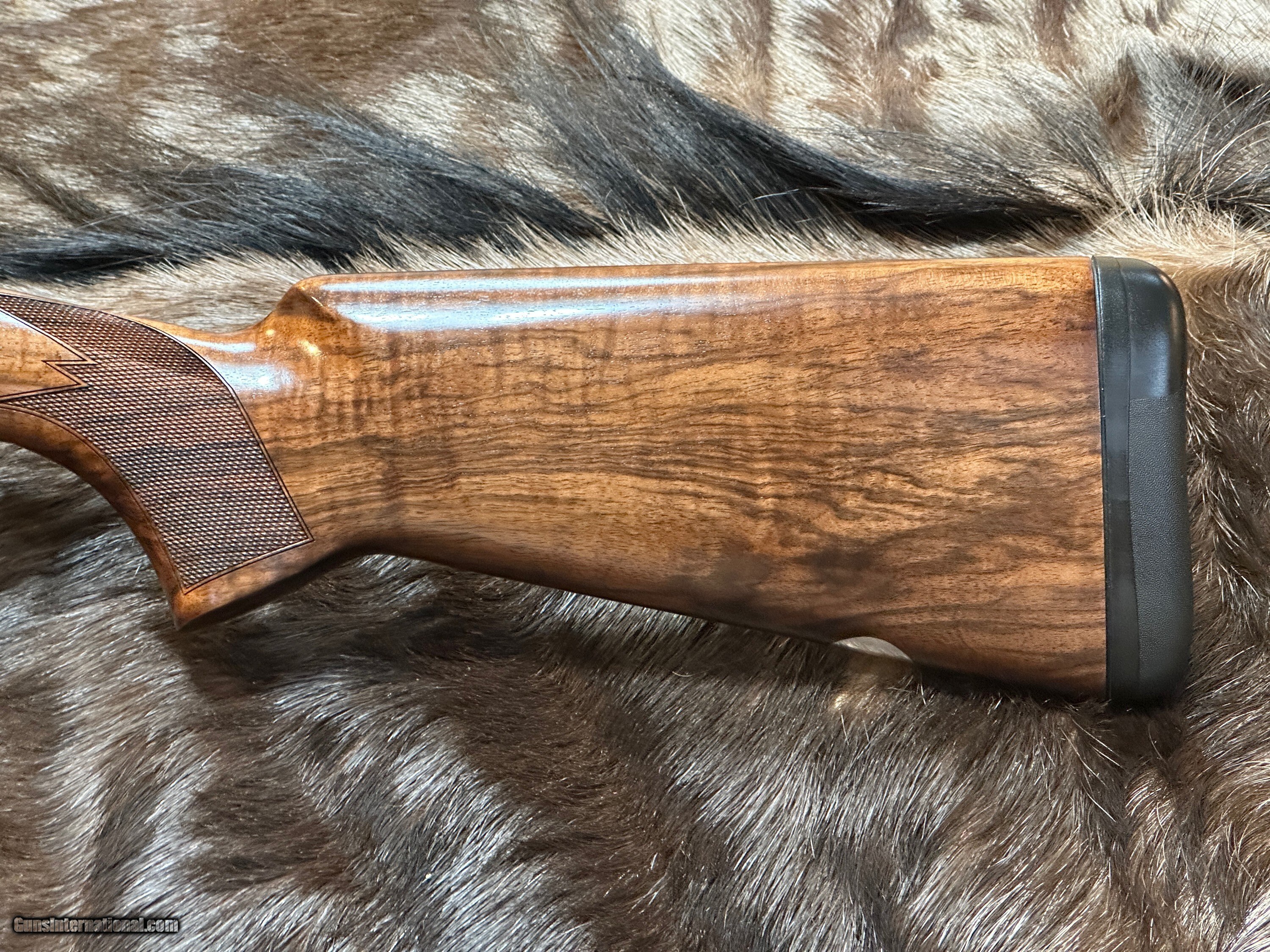 - STOCK: Beautiful Grade IV walnut stock with close radius grip, right-hand palm swell, proprietary, premium gloss oil finish, and nameplate inlay for owner’s initials