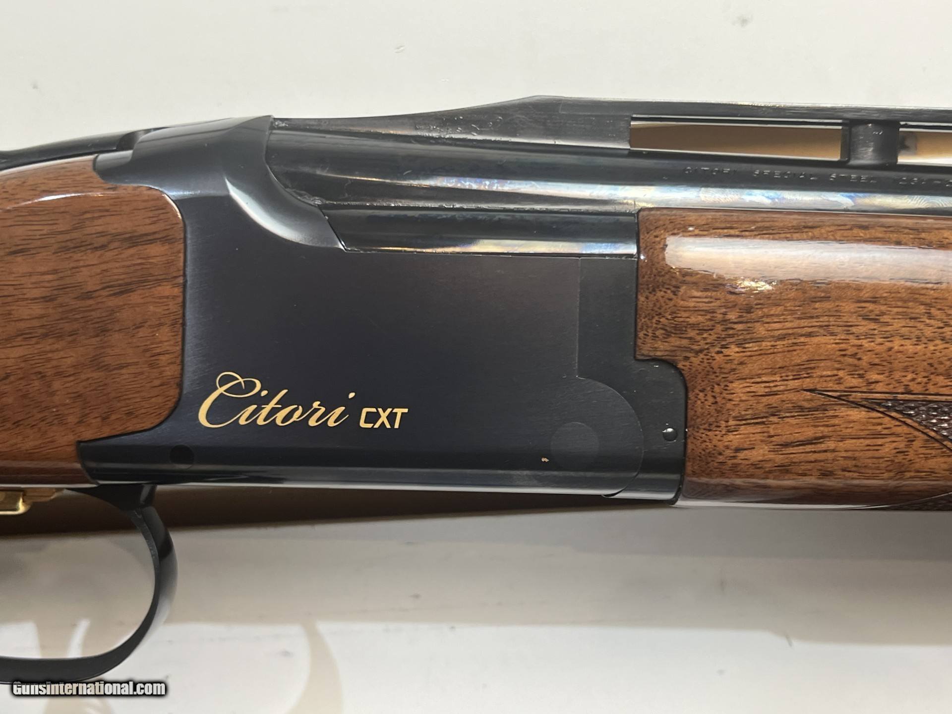 Description: Pre owned Gauge12 Chamber Length 3" Barrel Length 32" Length of Pull 14 3/8 Drop at Comb1 9/16" Drop at Heel 2" Weight 8 lbs 2 oz Rib Width 3/8 - 1/2 Barrel Finish Polished Blued Stock Finish Gloss Wood GradeGrade II Chokes 3 Chamber Finish Chrome Plated Chamber Front Sight Ivory Bead Choke System Invector-Plus Midas Barrel Material Steel Stock Materia lBlack Walnut Recoil Pad Inflex 2, Large Checkering Cut 18 LPI Receiver Material Steel Trigger Finish Gold Plated Trigger Guard Finish Polished Blued Trigger MaterialAlloy Trigger Guard Material Steel Choke Wrench Included T-Wrench SOLD Shotgun Gauge: 12 Gauge Manufacturer: Browning Model: CXT Trap Serial Number: JP19155YZ131 Condition: Very Good Metal Condition: Very Good Wood Condition: Very Good Bore Condition: Very Good |