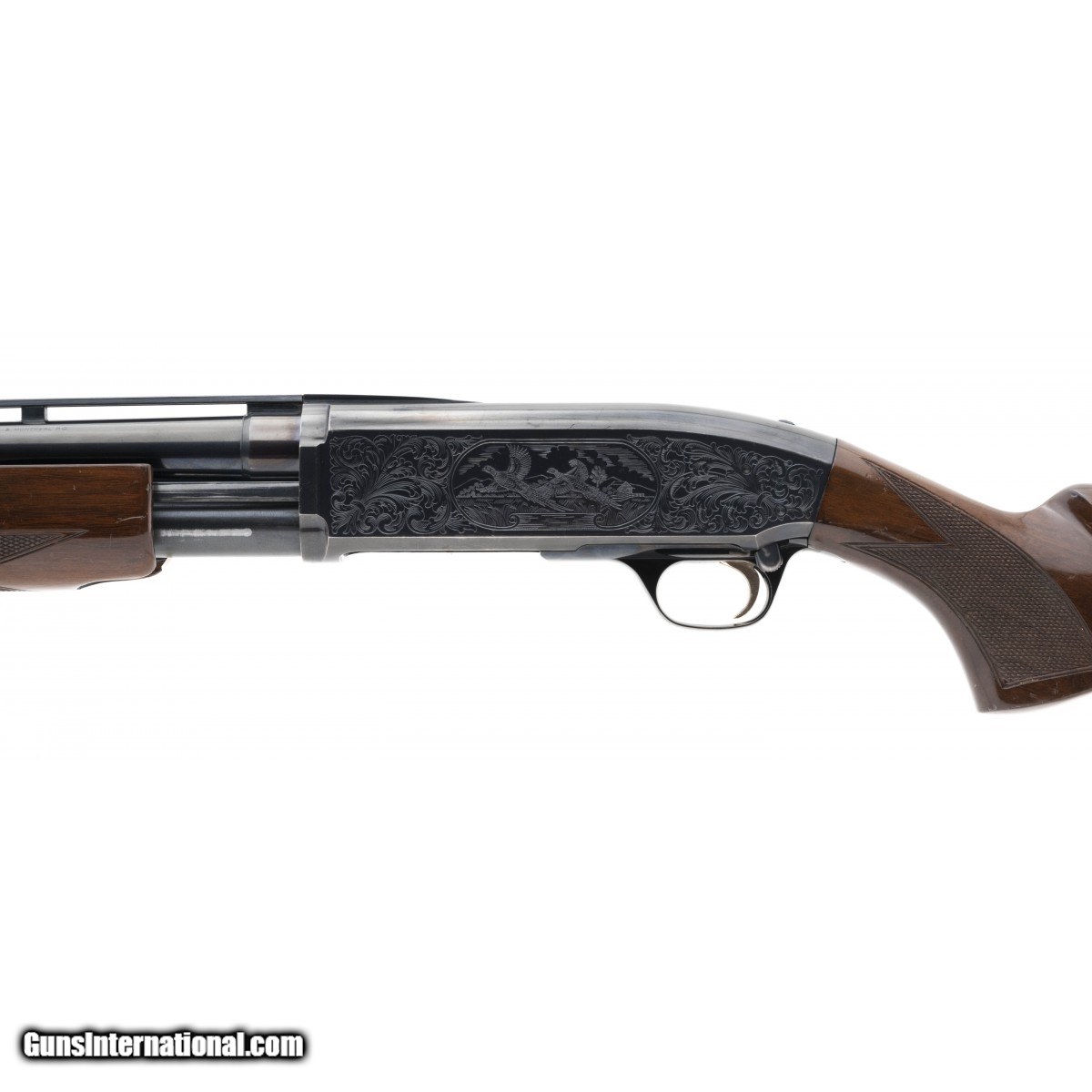 Description: " Deluxe pump gun with 26"" Invector Plus choke barrel, engraved receiver and walnut stock. A recoil pad and spacers have been added, LOP is 15.25"". The gun shows hunting wear, overall very good condition. SOLD |