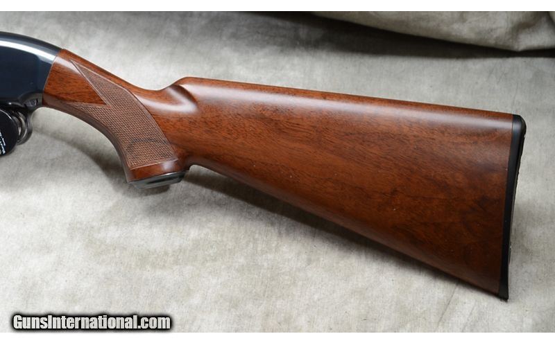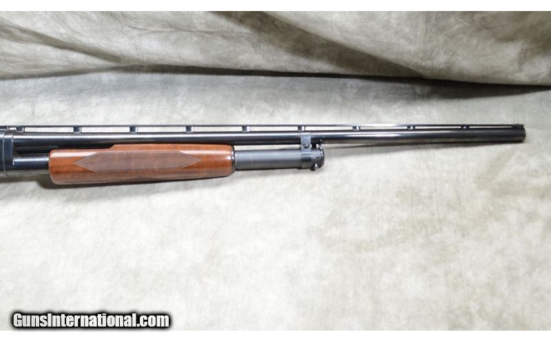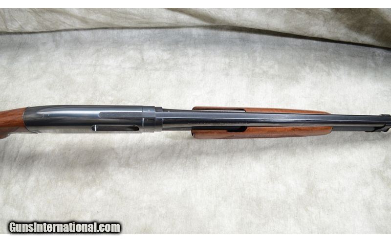 Description: This Model 12 reproduction of the Winchester features nice walnut stock, take-down frame, fixed Modified choke, and ventilated rib. 20 Gauge SOLD Chambers: 5 rounds (unplugged) 2-3/4 inch. Metal Condition: Very good. A little wear around the muzzle and a scratch on the left side of the receiver. Wood Condition: Very good. A few small dents and shallow scratches. Bore Condition: Shiny and bright. Barrels: 26 inch Triggers: Factory trigger. Stock Dimensions: 14 inch LOP. Fore End: Matching walnut. Butt Pad: Black plate. Weight: 6 lb - 12 oz Sights: Gold bead on ventilated rib. Chokes: Fixed Modified choke. Item Location: Rogers |