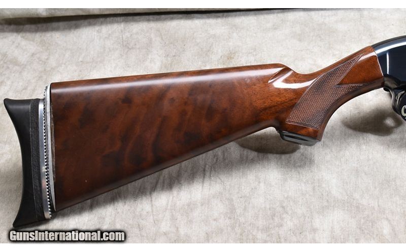Description: Manufactured in 1990, this little pump features very nice wood and adjustable recoil pad. 28 Gauge SOLD Chambers: "4+1 capacity (unplugged), 2-3/4 inch Metal Condition: Excellent. Wood Condition: Excellent. Bore Condition: Shiny and bright. Barrels: 26-inch Triggers: Factory trigger. Stock Dimensions: 15-inch LOP Fore End: Well-matched checkered walnut. Butt Pad: Adjustable recoil pad. Weight: 7 lb - 7 oz Sights: Ventilated rib with silver and white beads. Chokes: "Barrel marked Mod, screw-in choke marked Mod. Item Location: Rogers |