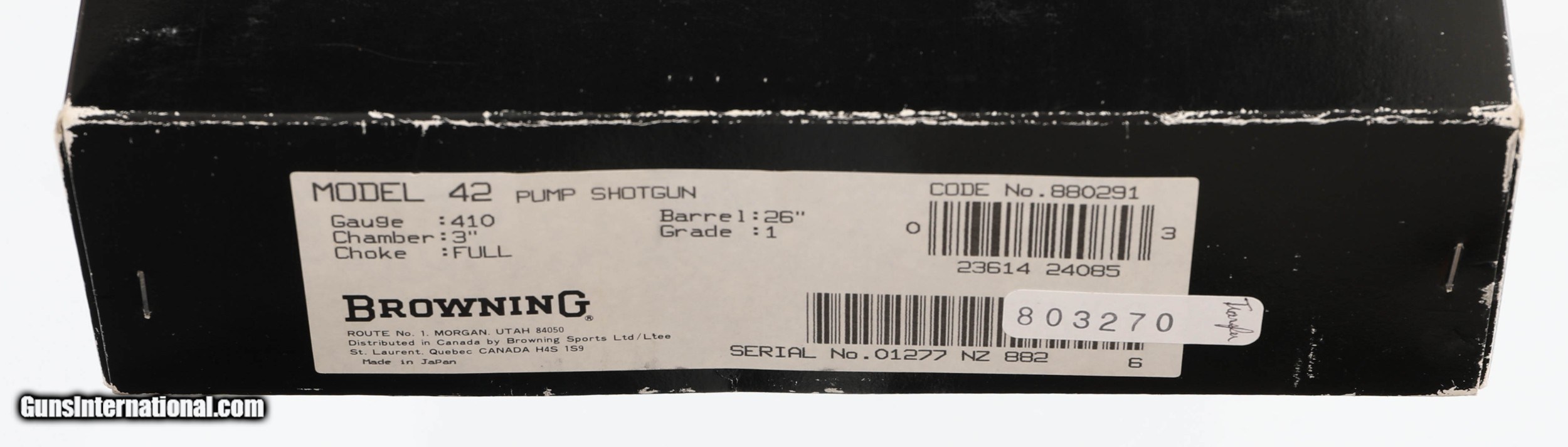 SOLD Shotgun Gauge: .410 Gauge Manufacturer: BROWNING Model: 42 Serial Number: 01277NZ8?? Barrel Length: 26 Condition: EXCELLENT |