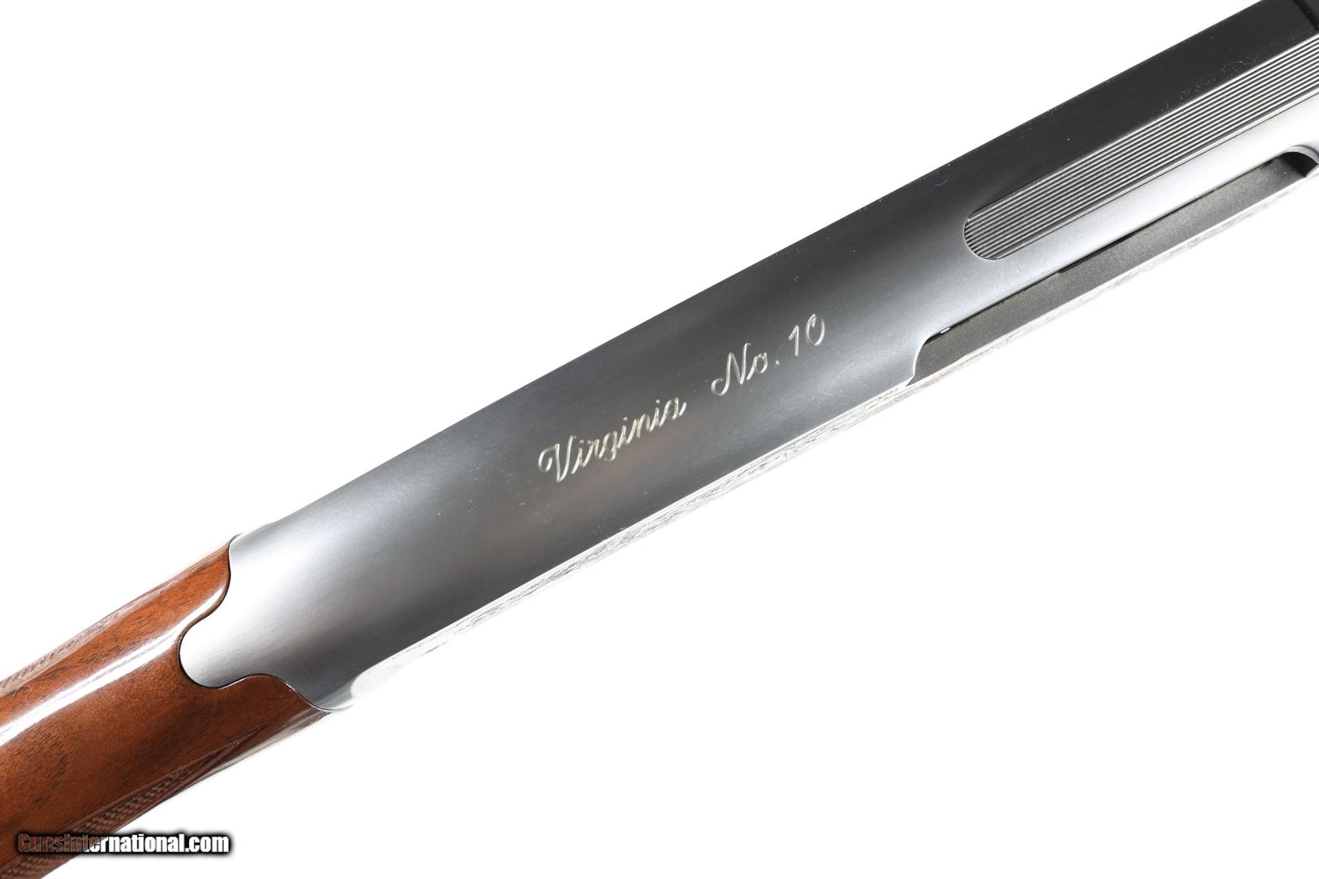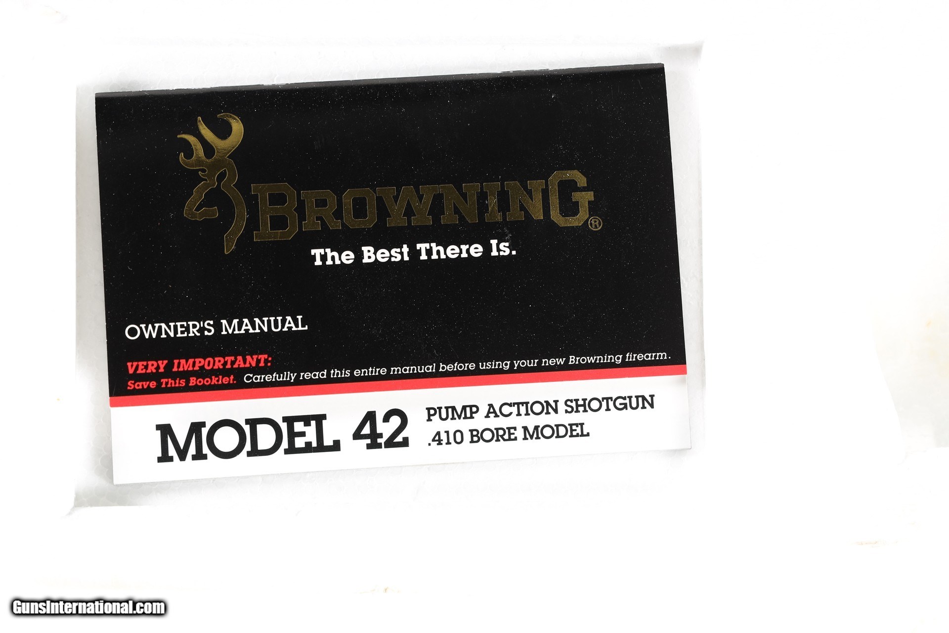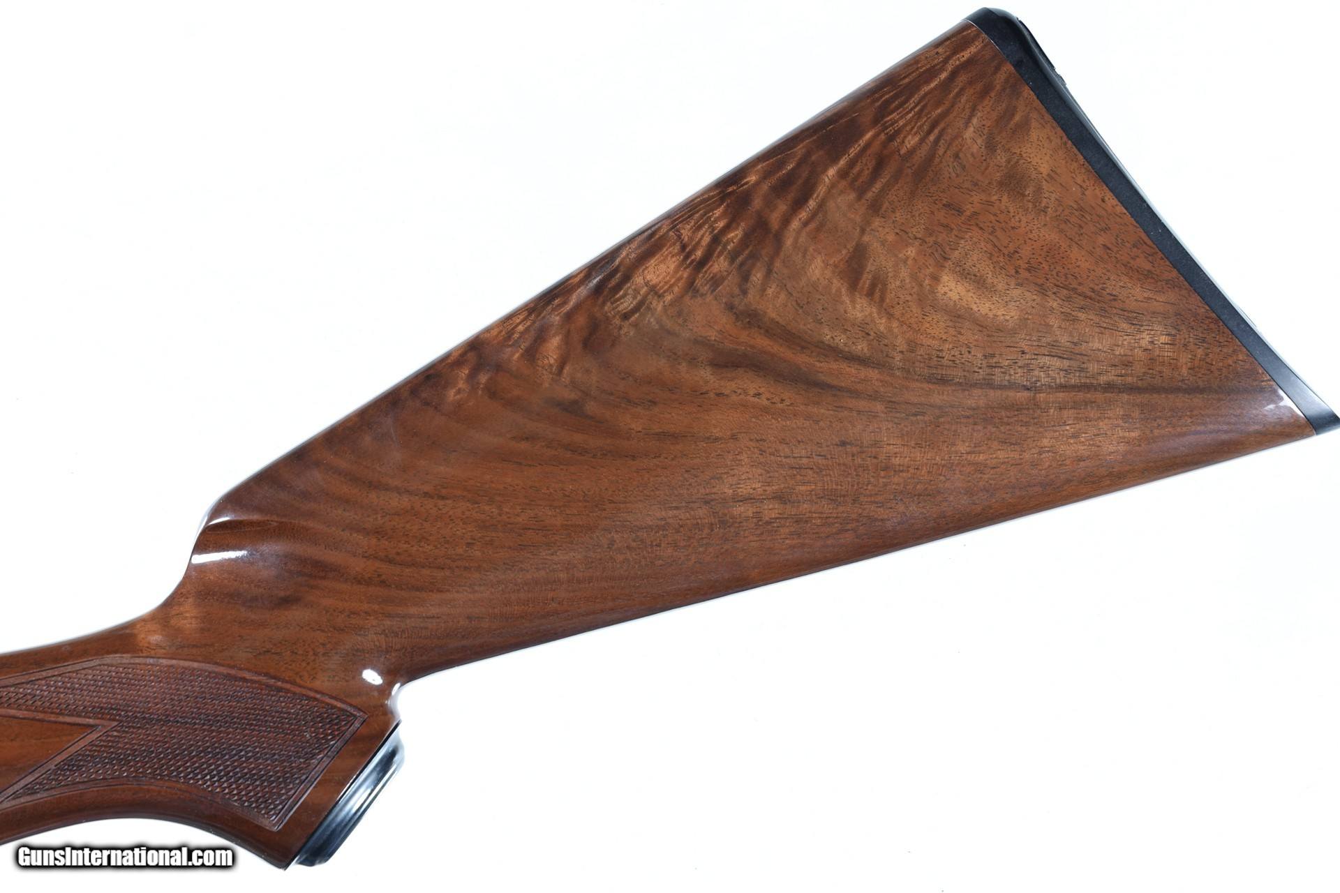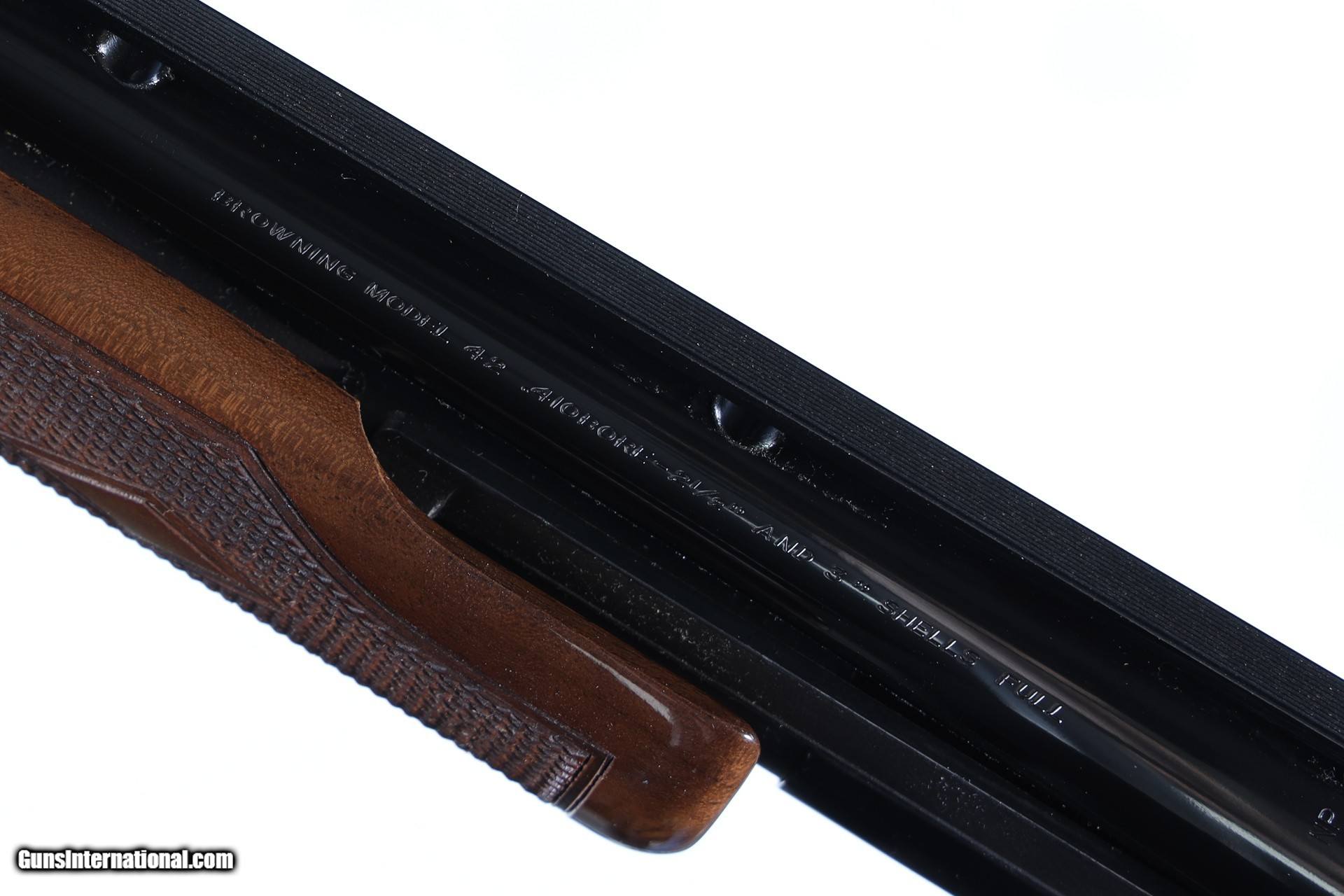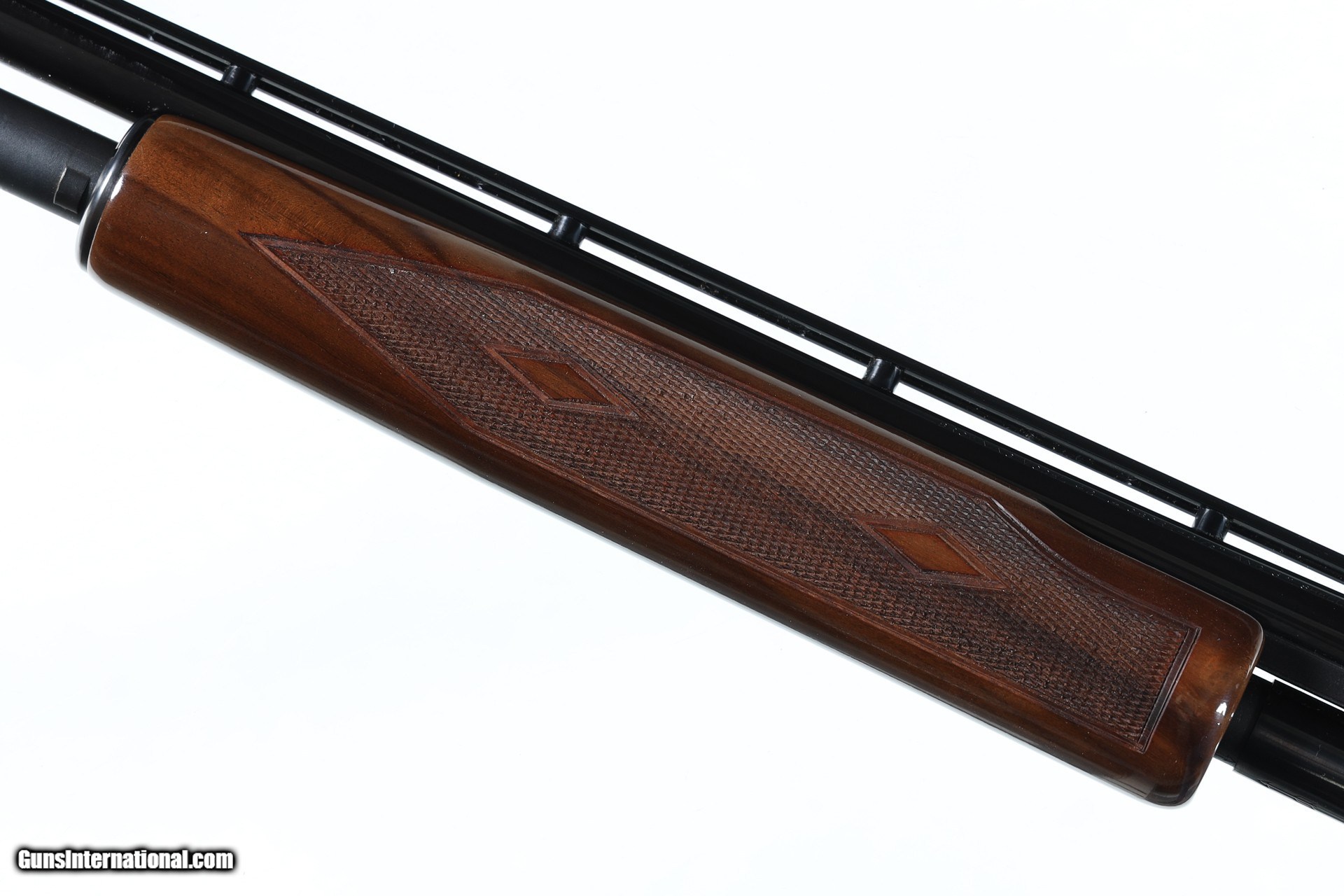 Description: Excellent plus overall condition, minimal to no handling marks present. Ducks Unlimited with factory box numbered to gun. Chamber: 3" Choke: Full, LOP 14". This illustrious Model 42 slide-action .410-gauge Shotgun, built by Browning Arms Company in Japan, was designed by David Maass for Ducks Unlimited. This Model 42 is highlighted by a receiver bearing an immaculate coin finish displaying gold washed flying ducks, "Maass" and floral engraving on its left side, while the right-side depicts gold washed pheasants flying above “Ducks Unlimited”. The top of the receiver reads "Virginia No.10" in script with a Ducks Unlimited duck head on the trigger bow. This Model 12’s high-quality design also incorporates a walnut high-figured, high-gloss, checkered pistol grip stock with a steel grip cap, a large walnut forend with checkering, and a Browning log buttplate. This shotgun also features a blued finish to a fixed modified choke barrel with a fully ventilated rib and bead front sight. Browning’s logo and the gun’s specs are located on the left-side of the barrel. This gem is accompanied by its original factory box of corresponding serial numbers, equating to a valuable addition to any collection. • Free Shipping, No Credit Card Fees. • Lay-a-way available for this firearm. • 1/3 Down, a 1/3 in 30 Days 1/3 in 60 Days. SOLD Manufacturer: Browning Model: 42 Serial Number: 0110DU410 Barrel Length: 26 |