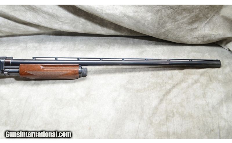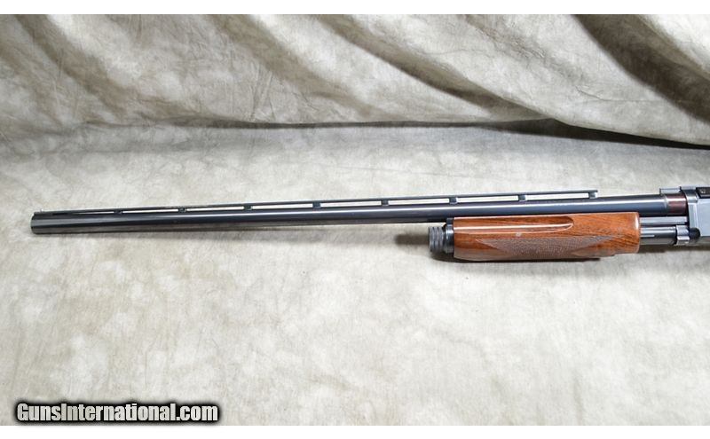 Description: A good choice for anyone, whether right or left-handed shooter. This one ejects from the bottom and features nice walnut, good blue and adapted for accessory sight. 12 Gauge SOLD Chambers: "4+1 capacity, 2-3/4 and 3 inch. Metal Condition: Good. a few fine handling marks. One section of rib removed to accommodate a previous sight. Wood Condition: Good. A number of shallow handling marks. Bore Condition: Shiny and bright. Barrels: 30 inch. Triggers: Factory trigger. Stock Dimensions: 14-1/4 inch LOP. Fore End: Well-matched checkered walnut beavertail. Butt Pad: Ventilated rubber pad. Weight: 8 lb. Sights: Ventilated gold and silver beads. Scope base installed for scope mount. Chokes: Interchangeable screw-in Invector choke. Item Location: Rogers |