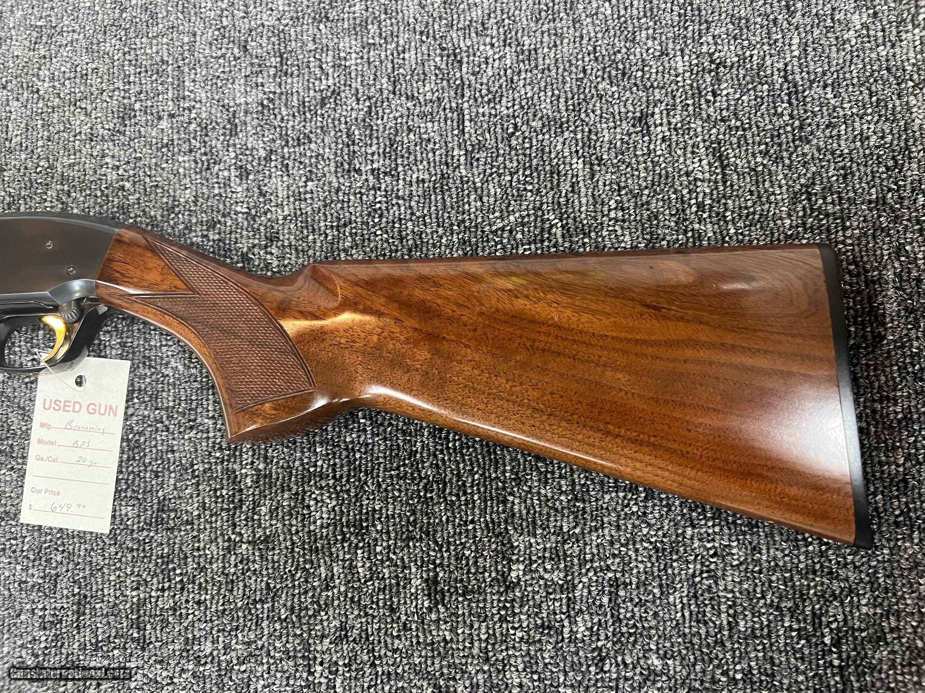 Description: Browning BPS 20ga pump shotgun. Has a 26" barrel with threaded tubes. Currently has a full choke tube in it. Metal in excellent condition. Has a few white specs on left side of receiver. Wood has one minor scratch on right side of stock and 3 dings on toe as pictured. $650...buyer pays shipping and insurance ***NO CREDIT CARD FEES*** SOLD Shotgun Gauge: 20 Gauge Manufacturer: Browning Model: BPS Barrel Length: 26” |