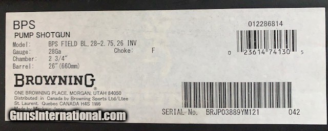 Description: Mint condition Browning BPS Field 28 Ga Pump Shotgun in the original box with correct label as shown. Twenty six inch vent rib barrel. Cannot be improved upon and impossible to find. SOLD Shotgun Gauge: 28 Gauge |
