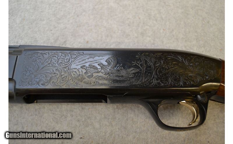 Description: Overall condition is like new. Sources indicate 1996 as the year of manufacture. 20 Gauge SOLD Chambers: Pump-action fed from a tubular magazine. Metal Condition: Like new. Wood Condition: Furniture is in like new condition. Bore Condition: A little bit of shipping grease but otherwise excellent. Barrels: 28" Gloss blued with ventilated rib. Triggers: Wide gold-plated metal. Stock Dimensions: Diamond pattern checkered walnut 14¼" LOP. Fore End: Walnut with wrap around diamond pattern checkering. Butt Pad: Black plastic plate. Weight: 7lbs Sights: Stainless front bead. Item Location: Green Bay |