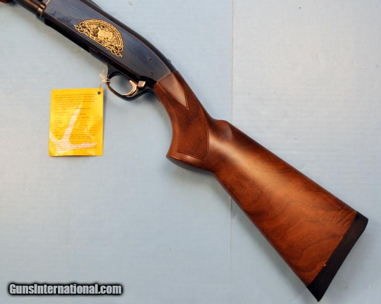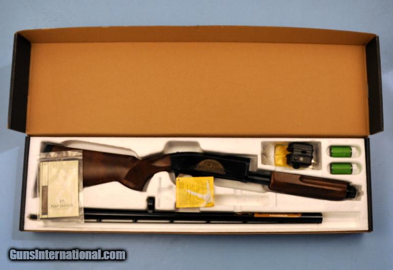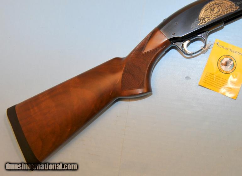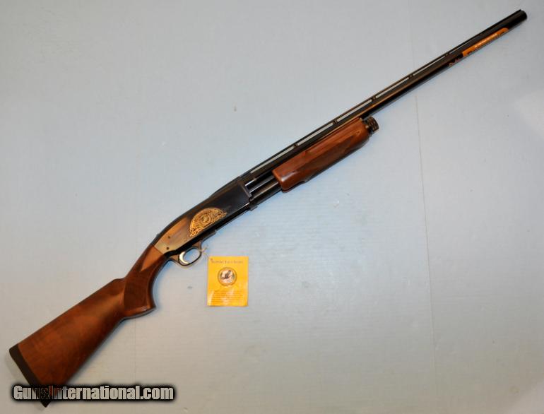 28" vent rib barrel fitted with Invector-Plus chokes. IC, M & F tubes included. Blued action has gold NWTF limited edition ornamentation. Satin finished checkered stock & forend of fancy black walnut. As new condition with original box containing extra chokes, choke wrench, trigger lock & packet of papers. Priority mail to FFL $25.00