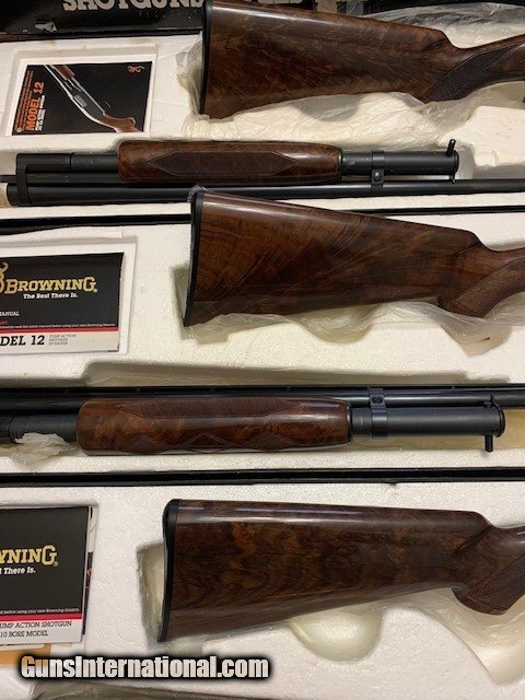 BROWNING M-42 & M-12 GRADE 5, 3 GUN SET, 410, 28, 20 GA. 410 GA. & 28 GA. HAVE MATCHING SERIAL NUMBERS, ALL NEW IN BOXES WITH OWNERS MANUALS, ETC.