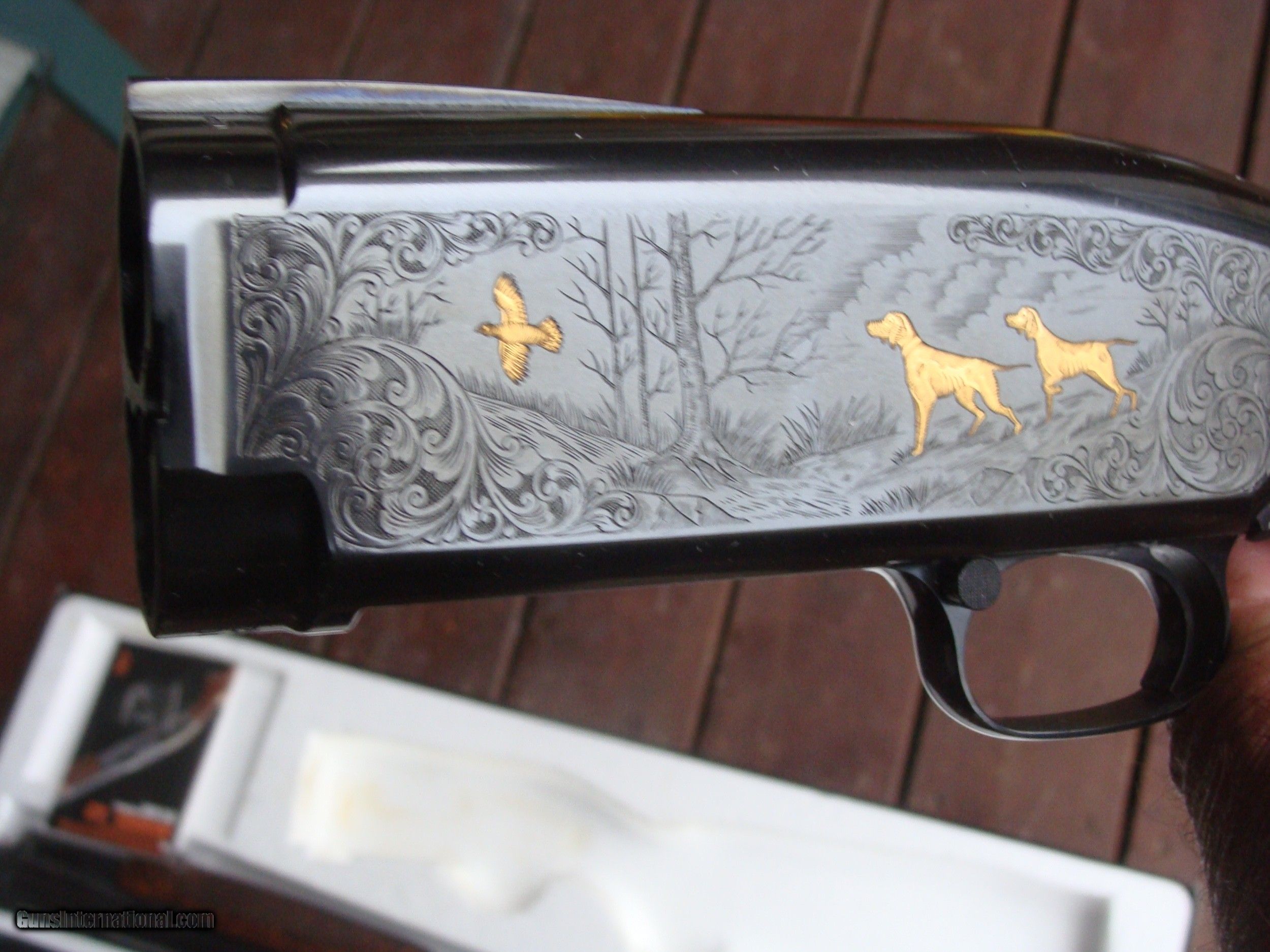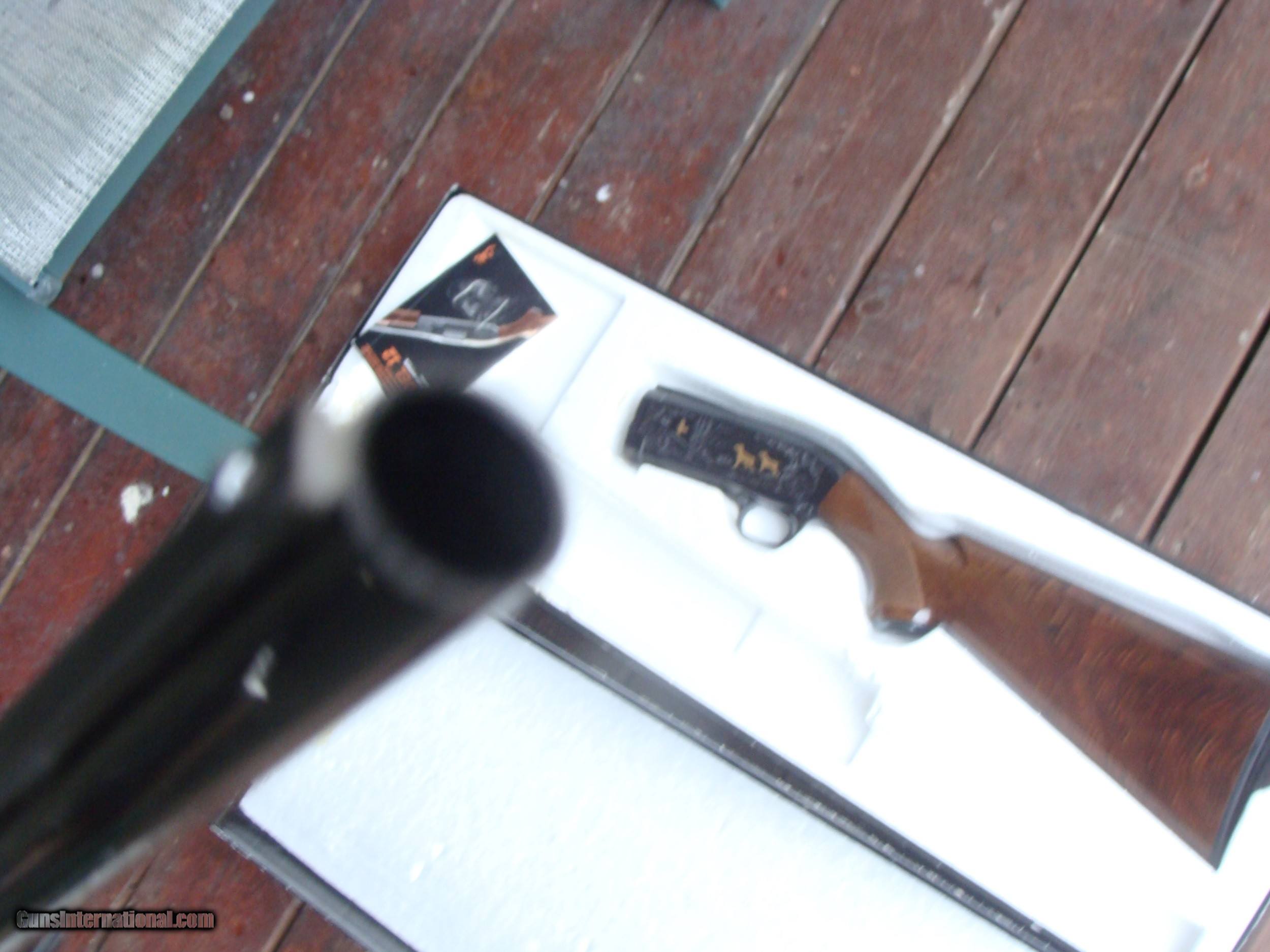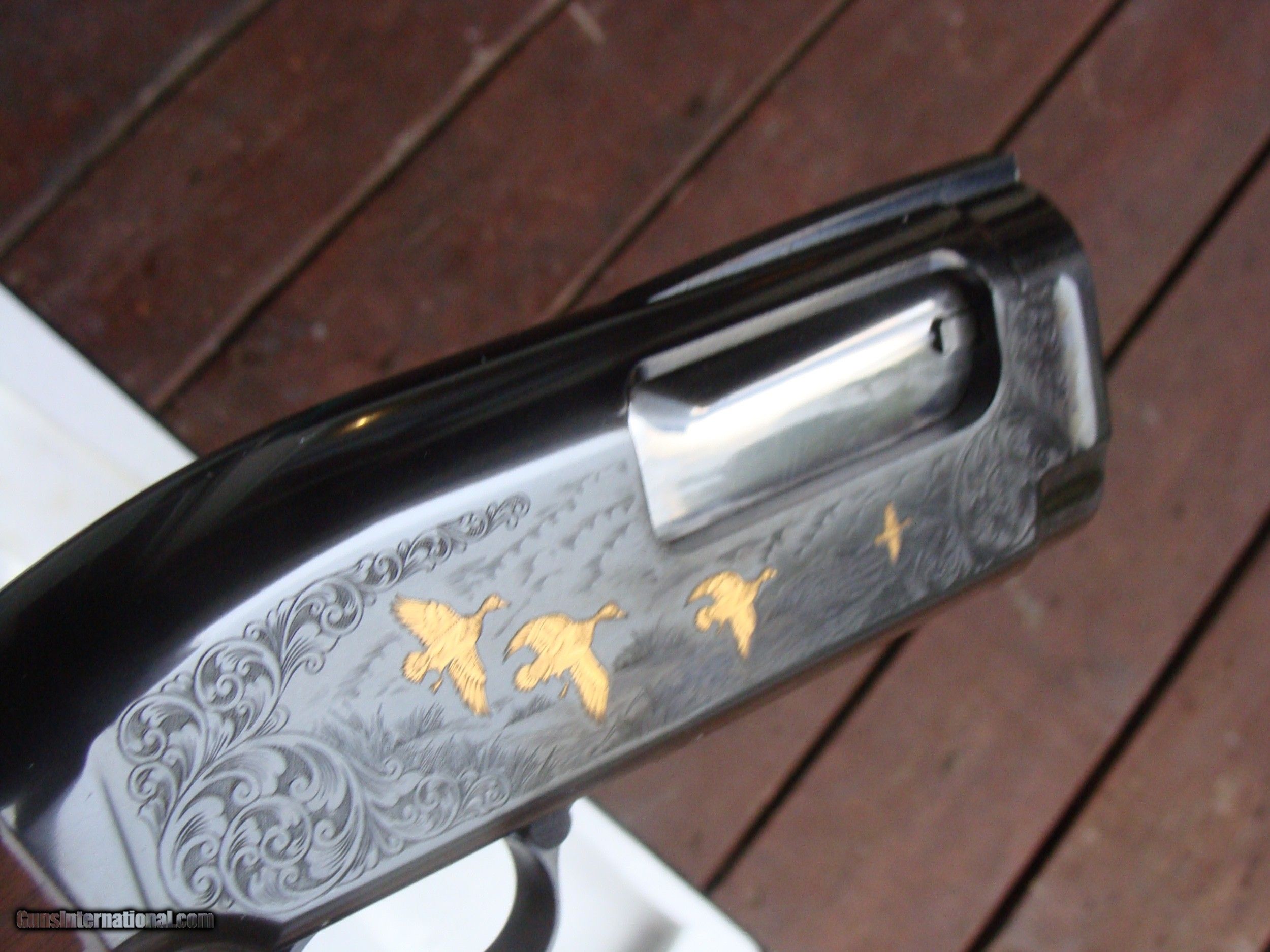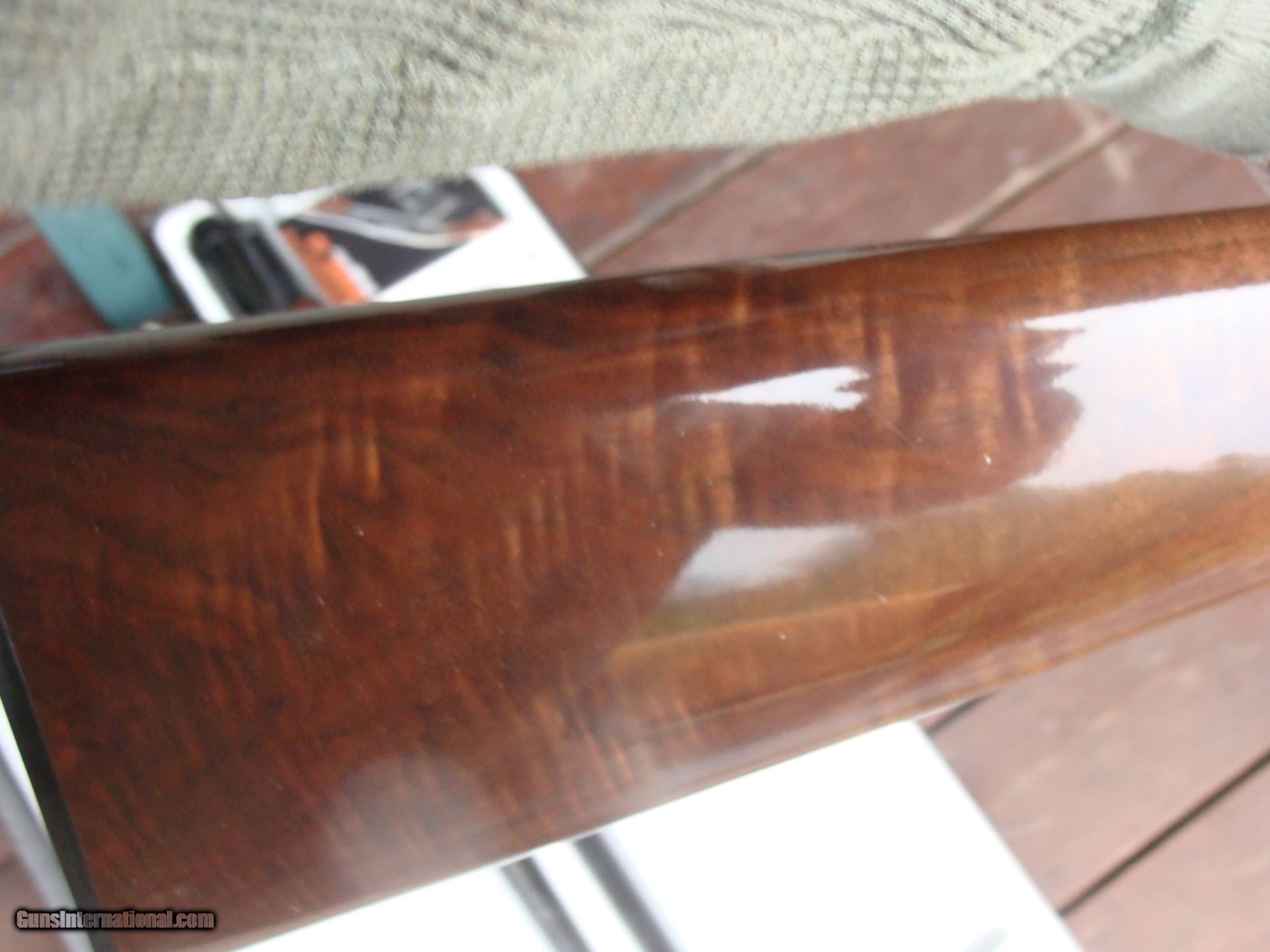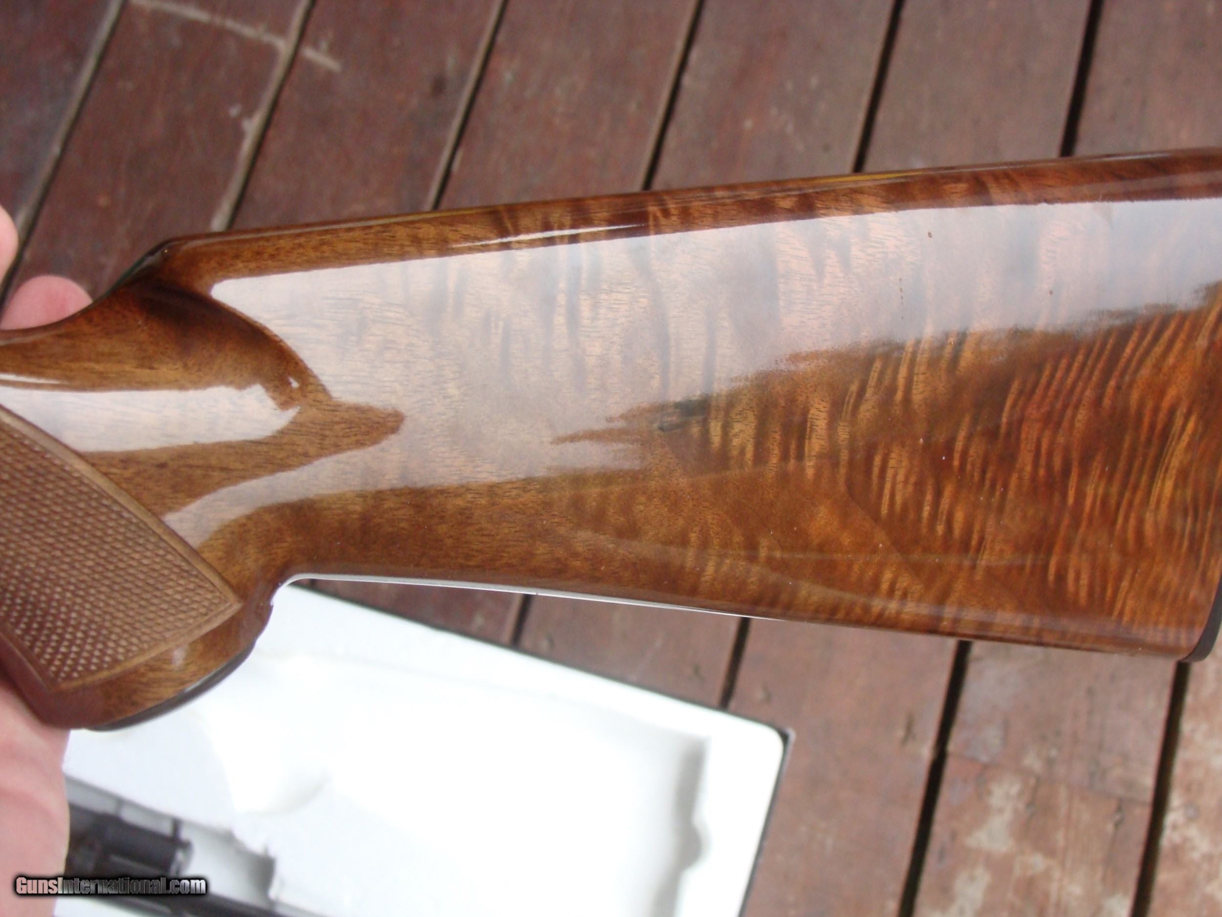 Description: This stunnng gun appears unfired and is in the correct original box with extras shown in pictures. Magnificent burl walnut stock set with beautfully engraved receiver with gold inlays (presumed to be real gold but this is unknown) Both Winchester and Browning reproduced their much sought after model 12's perhaps during the 80's or 90's now long since out of production. If this were an original Model 12 in a simialr grade in this ga it would sell for not less than $ 5000.00. If anyone has followed the values of the similar (History) Parker Reproductions these guns in sub ga. and in higher grades now have grown wildly in value. To the best of our knowledge we are offering this gun well under what others are being offered for. It is belived to be unfired and comes in theinial box but it has been assembled previously. WE ARE AN FFL 01 IN THE NORTHEAST WHERE MANY FINE US MADE GUNS WERE PRODUCED AND WE OFTEN GET SOME FAIRLY HARD TO FIND AND HARDLY USED GUNS. WE HAVE OVER 1500 SALES ON ALL SITES WITH AN A+ RATING ON ALL (WE ALSO KEEP AN INVENTORY OF OLDER PERIOD CORRECT SCOPES; CALL WITH NEEDS) WE MOSTLY PICK VERY CLEAN GUNS, PRICE THEM FAIRLY AND WORK WITH MODEST MARGINS WE ARE HAPPY TO TAKE CONSIGNMENT GUNS AND COLLECTIONS OR WILL BUY YOURS OUTRIGHT. WE SOMETIMES ARE EMPLOYED FOR ESTATE PURPOSES AND VALUATIONS. CT RESIDENTS MUST CONTACT US TO UNDERSTAND OUR IN STATE TRANSFER POLICIES. SHIPPING IS $ 49.00 USPS PRIORITY, MORE TO AK AND HI. WE CAN TAKE A CREDIT CARD HOWEVER THERE IS A 3% ADD ON BASED ON THE TOTAL FOR USE OF A CARD. IT IS ALWAYS THE BUYERS RESPONSIBILITY TO GET US A COPY OF YOUR RECEIVING FFL'S LIC AND WE REQUIRE A COPY OF YOUR PHOTO ID BEFORE THE GUN SHIPS YOU MUST CALL YOUR FFL.WE DO NOT CALL FOR YOU. LAYAWAY PURCHASES NOT COMPLETED OR ANY RETURNED ITEM UNLESS NOT AS DESCRIBED ARE SUBJECT TO A 10% RELISTING/RESTOCKING FEE AND MUST BE RETURNED WITH NO MARKS OR SCRATCHES, SENT BACK INSURED, PRIORITY SIGNATURE REQUIRED WE DO NOT OFFER AN INSPECTION PERIOD PER SE HOWEVER GUNS MAY BE RETURNED IF NOT EXACTLY AS DESCRIBED HOWEVER UNDER NO CIRCUMSTANCE MAY ANY GUN TO BE RETURNED HAVE BEEN REMOVED AT ANY TIME FROM RECEIVING FFL DEALERS PREMISIS. SOLD |