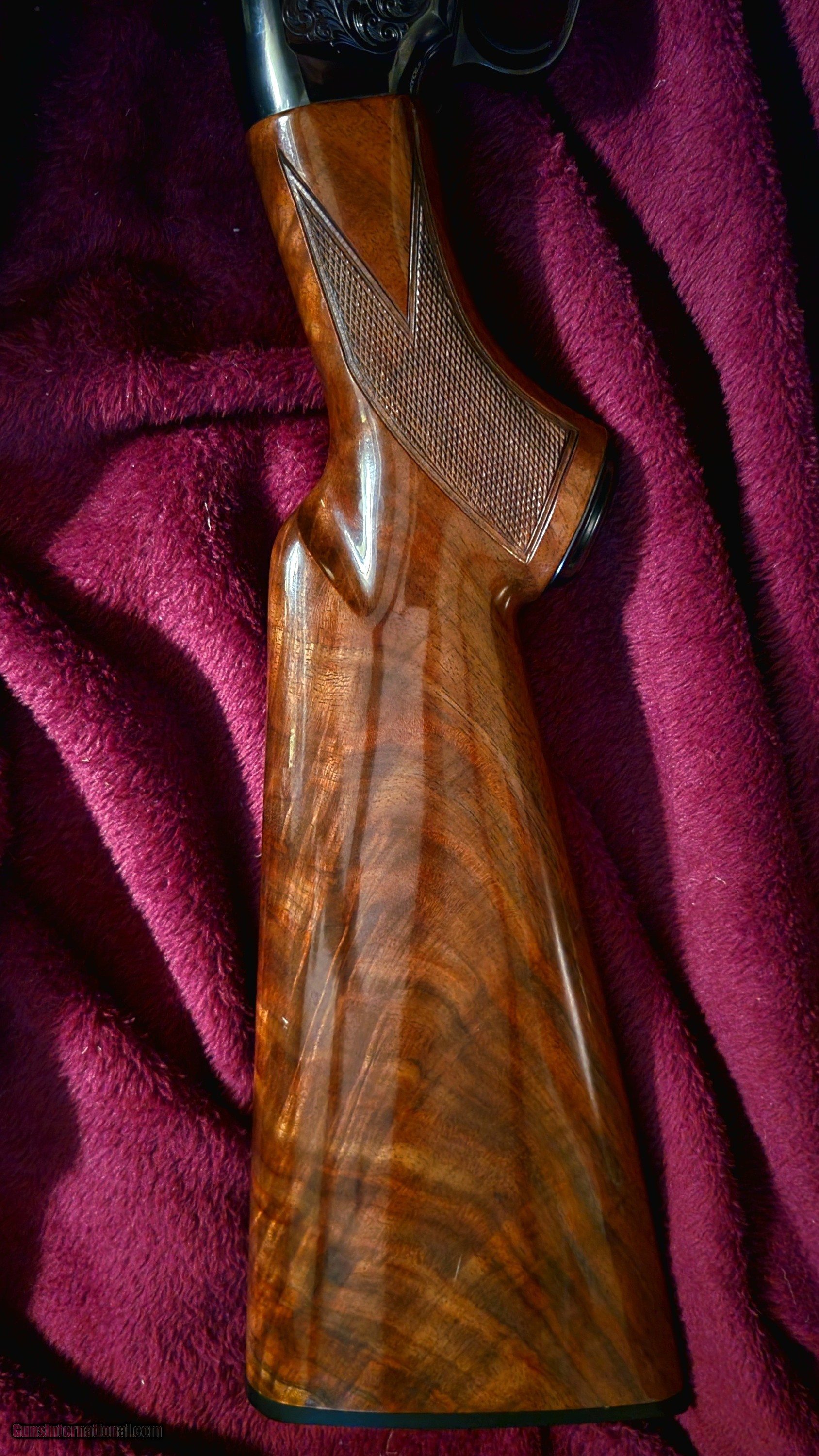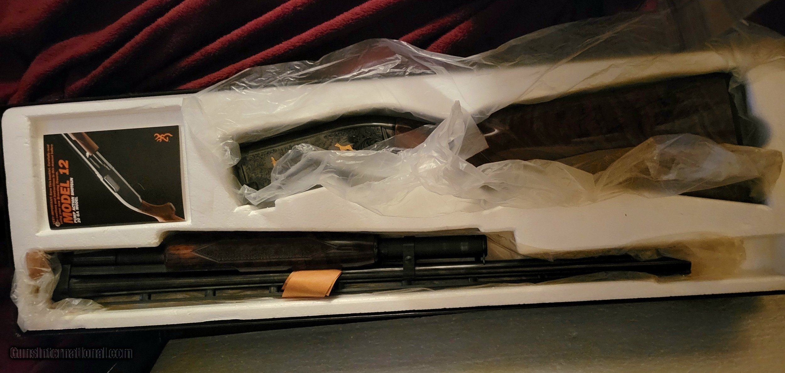 Description: +++SOLD TO RICK IN TN+++ This is an as new in factory box Browning Model 12, 20ga, Grade V, Gold Inlays with 26in barrel. Beautiful wood as shown in pictures attached. These guns are getting harder to find in ANIB. NOTE: We also have a Browning Model 42, .410ga. Checkout our other listings. We are listing the above and a Browning Model 12, 20ga.Grade V, ANIB. See our additional adds under BrokenClay on GI. SOLD Manufacturer: Browning Model: 12 Bore: Full Chambers: 2 3/4 inch Ejectors: Pump Condition: Excellent + Metal Condition: As New Wood Condition: Minty Bore Condition: Minty and bright Barrels: 26in Action: Pump Triggers: Single Stock: Feather Crocheted Wood Butt Pad: Factory Chokes: Full Engraving: Grade 5 factory w/ gold inlays. |
