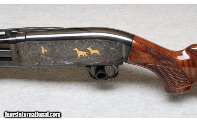 Description: Excellent condition, light wear and handling marks. Classic Browning pump action shotgun, 26" barrel choked MOD with raised target rib. Blued finish, smooth pump action and engraved receiver with gold inlays. Superbly figured gloss finish checkered wood with factory butt plate. 28 Gauge SOLD Chambers: Pump action Metal Condition: Excellent Wood Condition: Excellent Bore Condition: Bright Barrels: 26 Triggers: Factory Stock Dimensions: 14" LOP Fore End: Checkered Butt Pad: Factory butt plate Sights: Single silver bead Chokes: Mod Item Location: La Vista, NE |