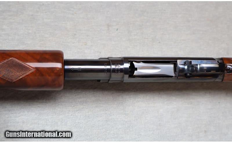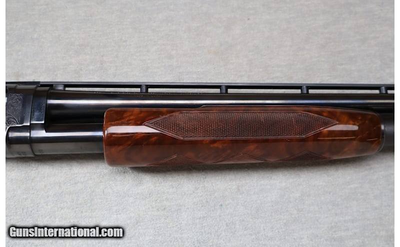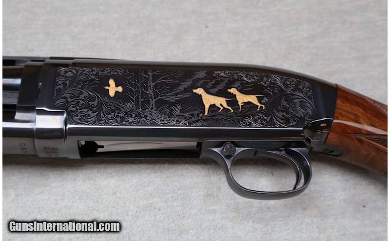 Description: Engraved and Gold Inlaid Browning Model 12 Grade 5 Slide Action 28 Gauge Shotgun with Box Manufactured 1990. With original factory box. 2 3/4" chamber, MOD choke. Collector serial numbered. We have six other Browning firearms from the same collector that have the same collector serial number. Buy one or buy them all and start your own collection. Condition - Excellent overall with original finish, casual handling wear. Mechanically excellent. Box is very good with signs of storage wear. 28 Gauge Chambers: 2 3/4 Metal Condition: very good Wood Condition: very good Bore Condition: bright Barrels: 26" ribbed barrel Stock Dimensions: 14.5" LOP Fore End: checkered wood Butt Pad: plastic Weight: 7 lb - 4 oz Sights: bead front sight Chokes: MOD Item Location: La Vista, NE Price: $2,499.99 Contact Seller |